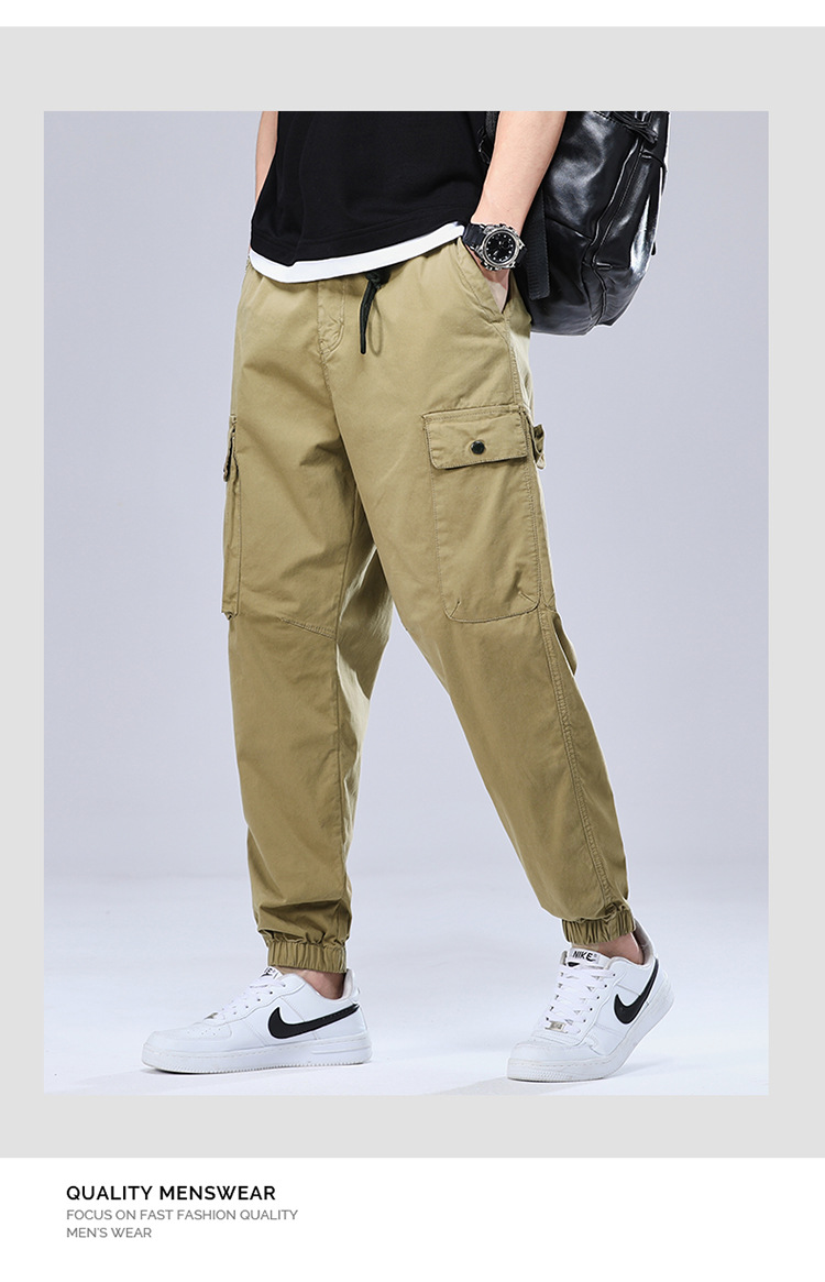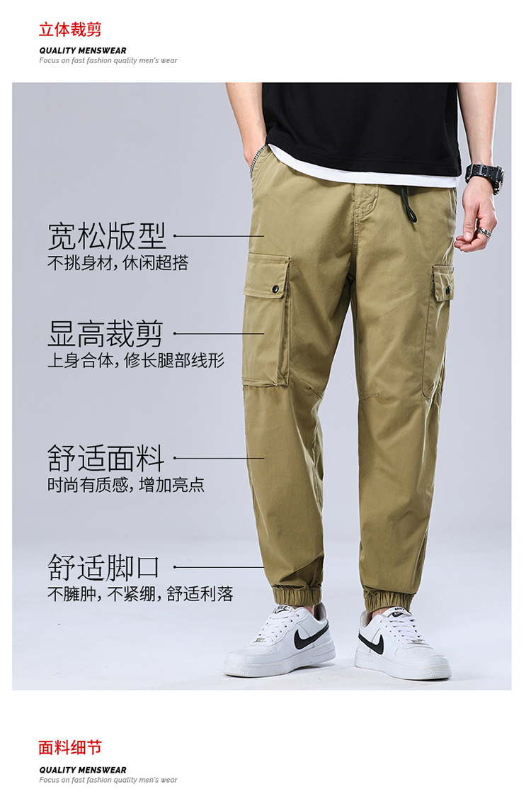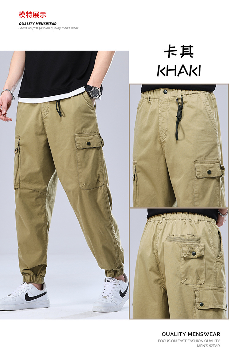 일본식 멀티 포켓 크라우드 워크 바지 남성용 봄 느슨한 니킹 다리 캐주얼 바지 빈티지 모든 매치 트렌디 다리 바지 남성용스토어 가기
