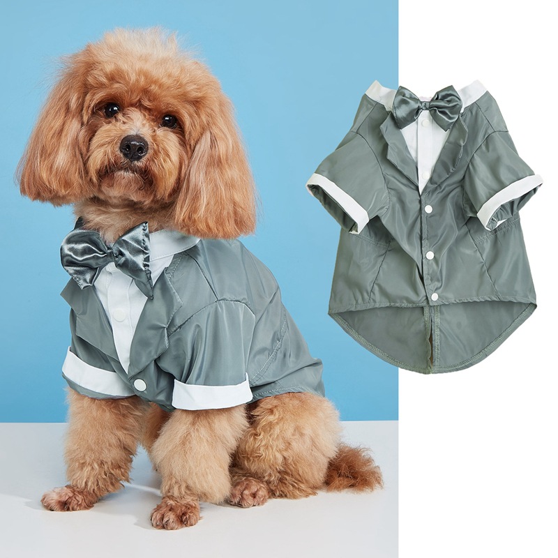 产品名称:宠物新品服饰喜气廓形燕尾礼服气质两脚泰迪贵宾衬衫西装假两件套