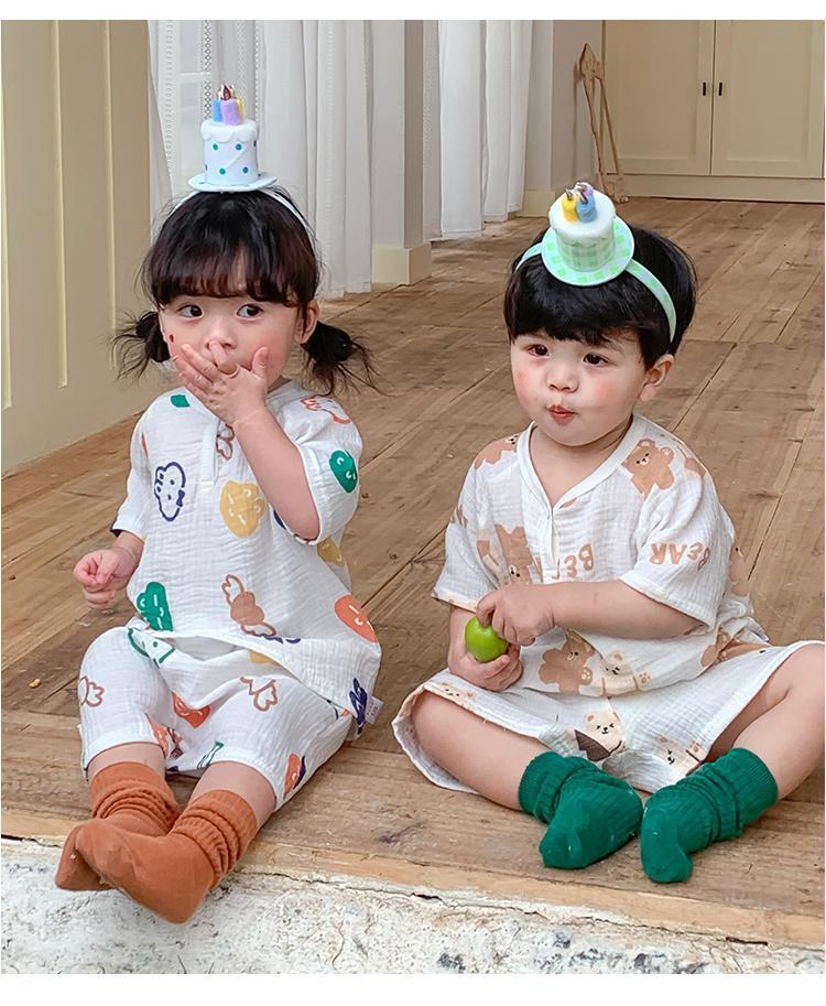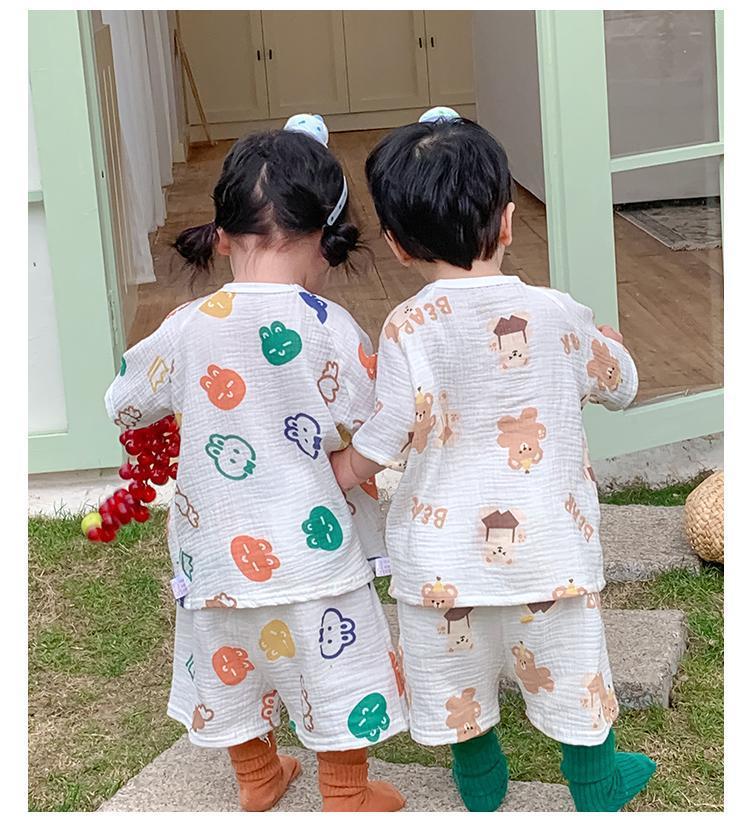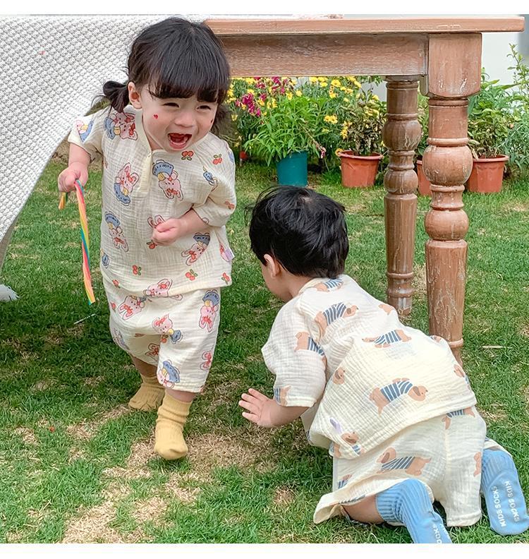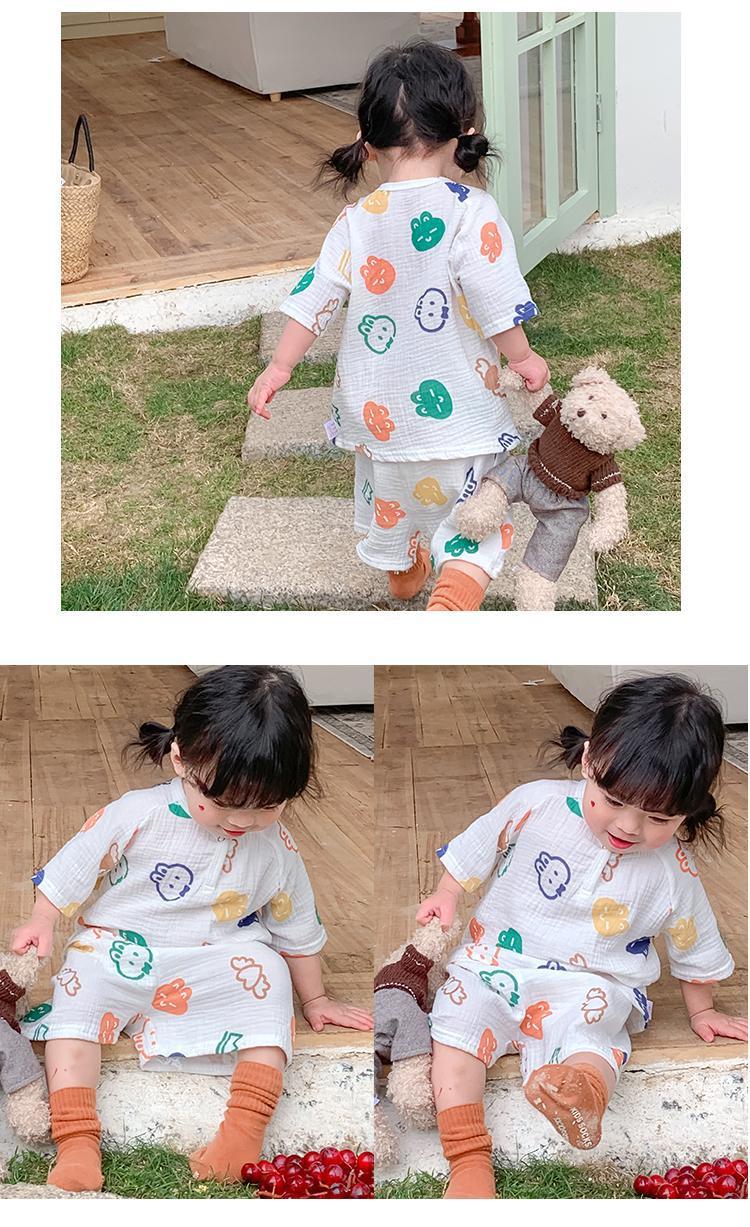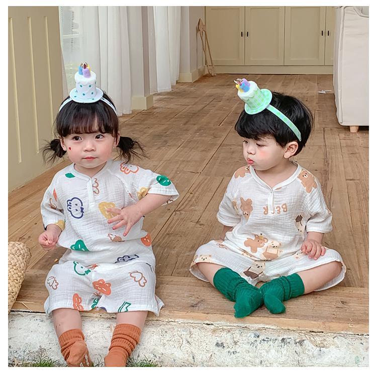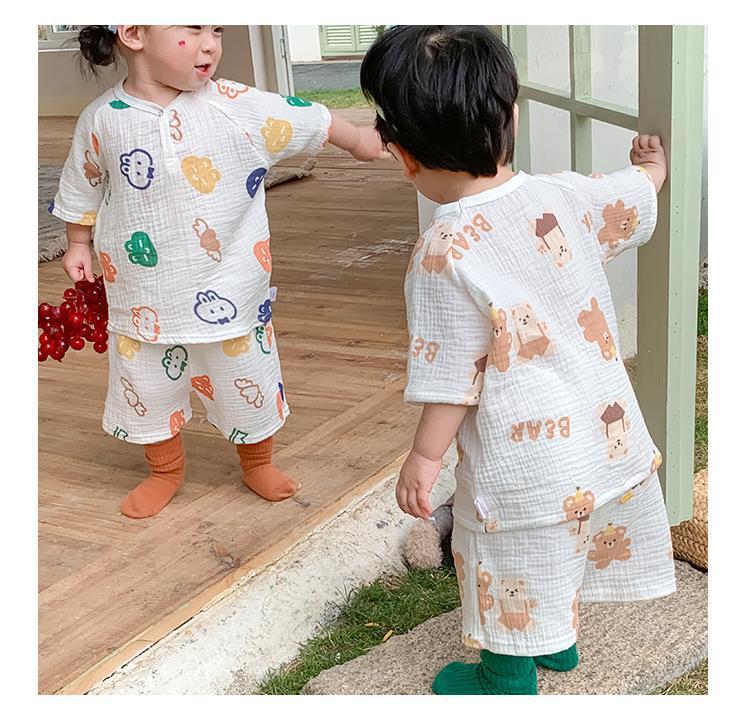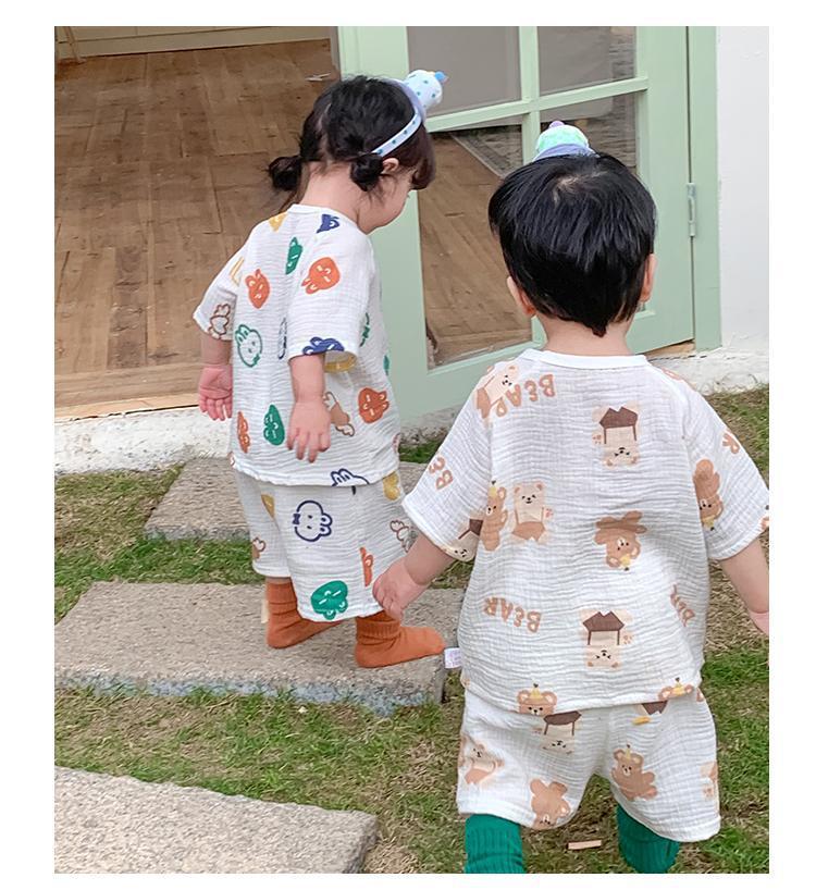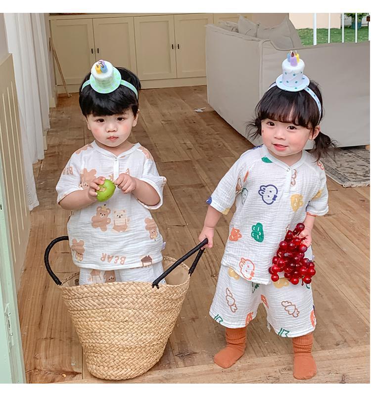 어린이 잠옷 소년의 면 거즈 여름 얇은 아기의 가정복 세트 반팔 여아 에어컨 옷스토어 가기