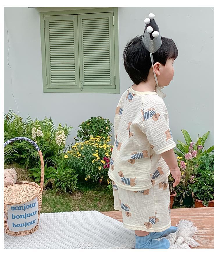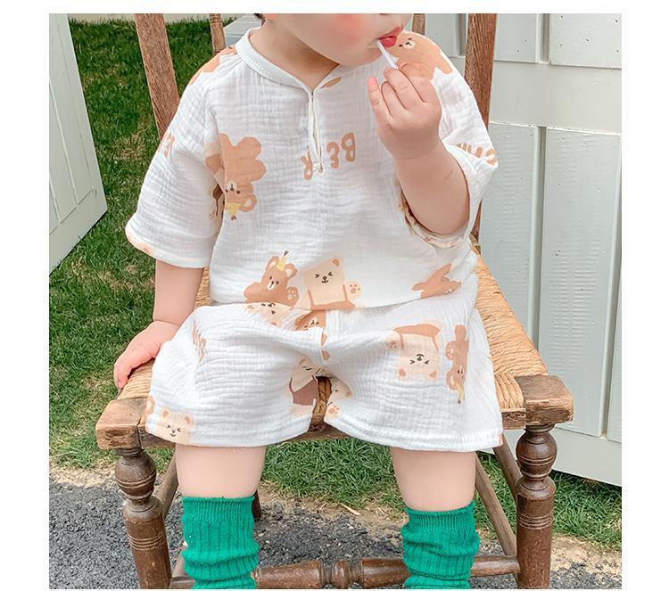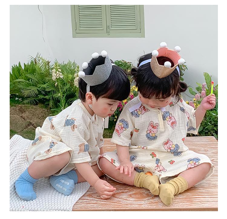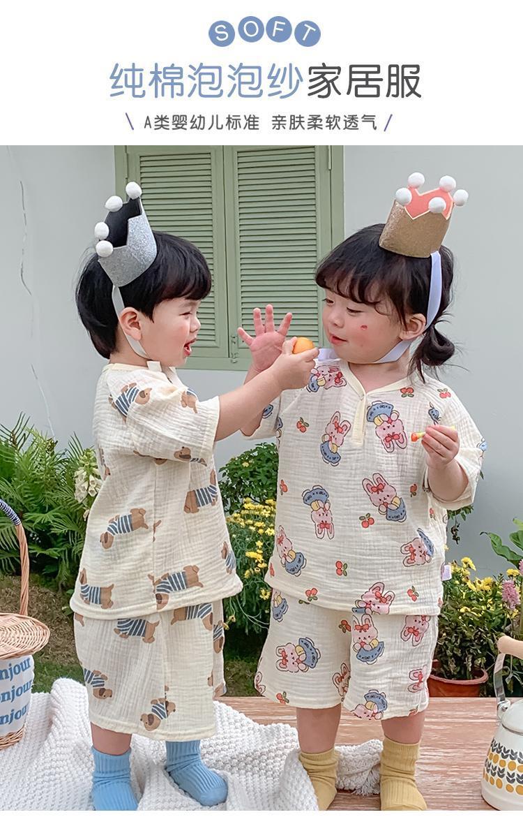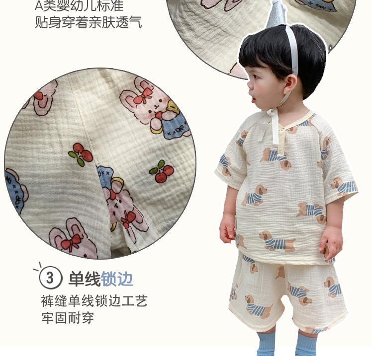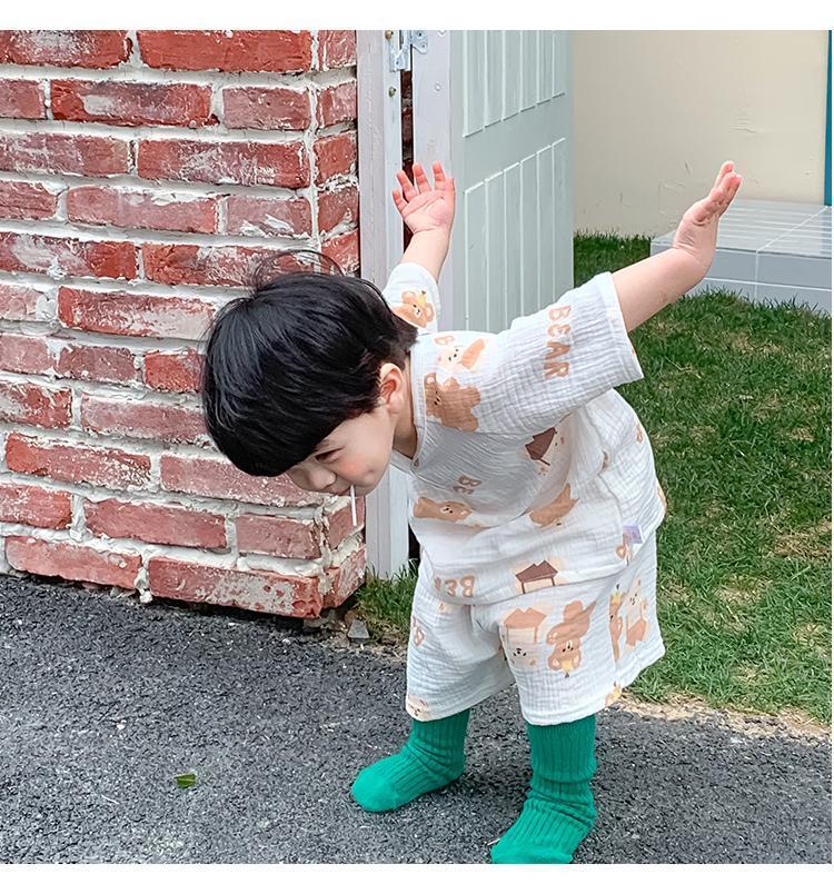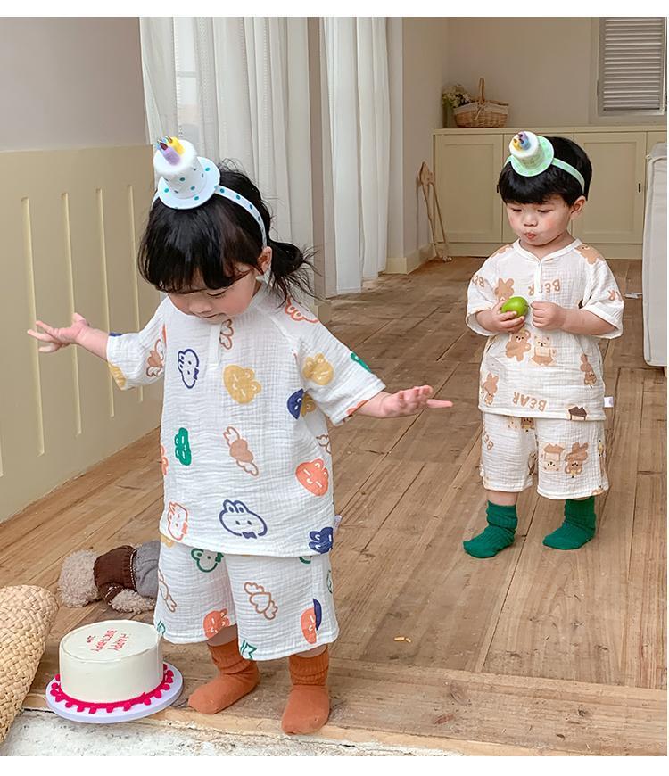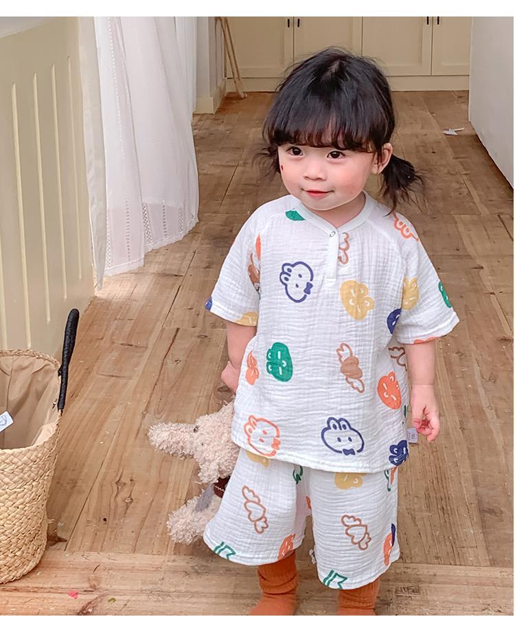 어린이 잠옷 소년의 면 거즈 여름 얇은 아기의 가정복 세트 반팔 여아 에어컨 옷스토어 가기