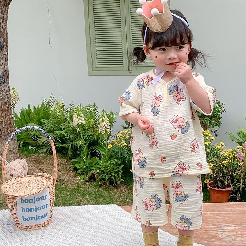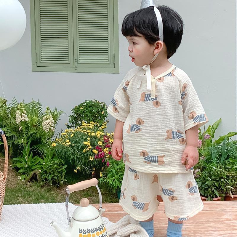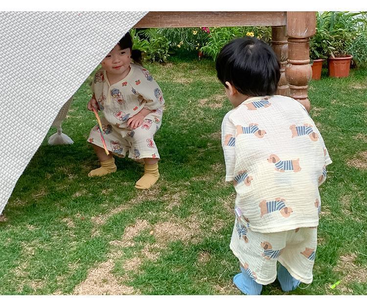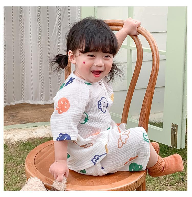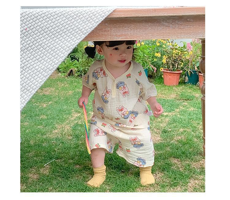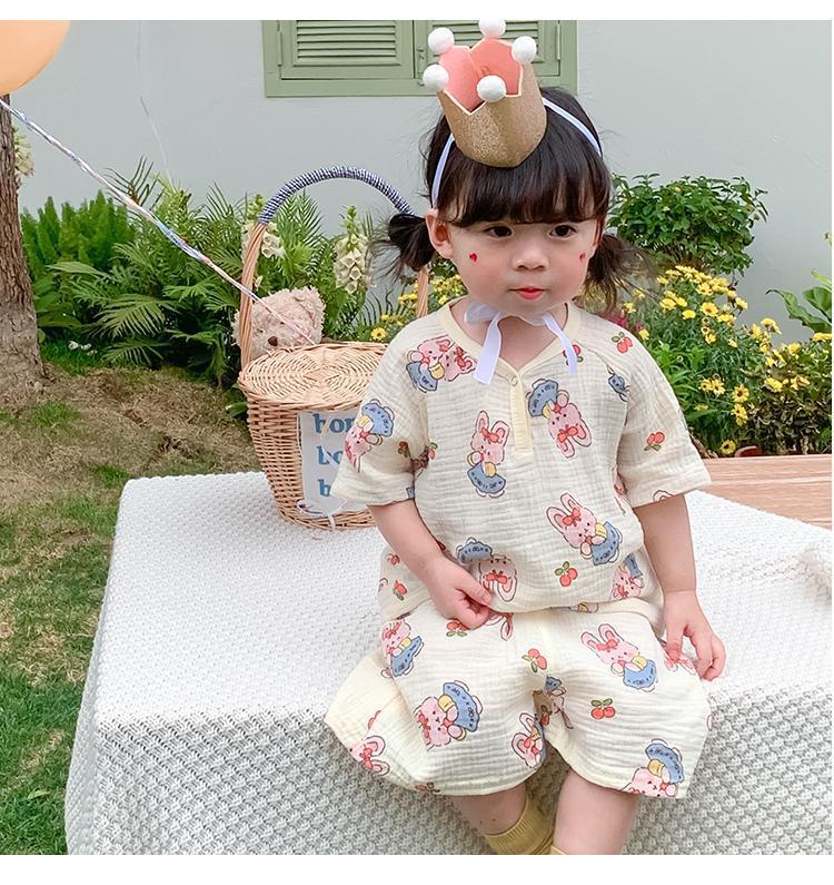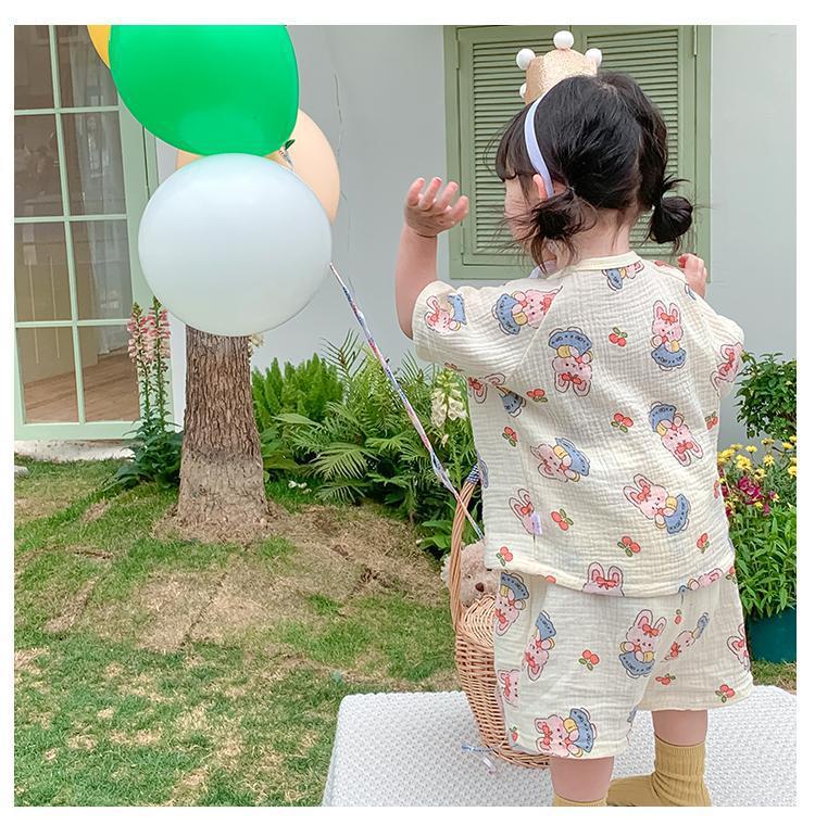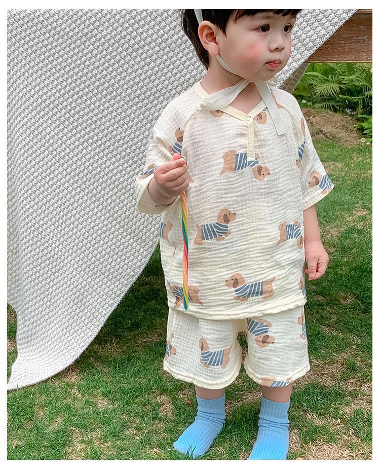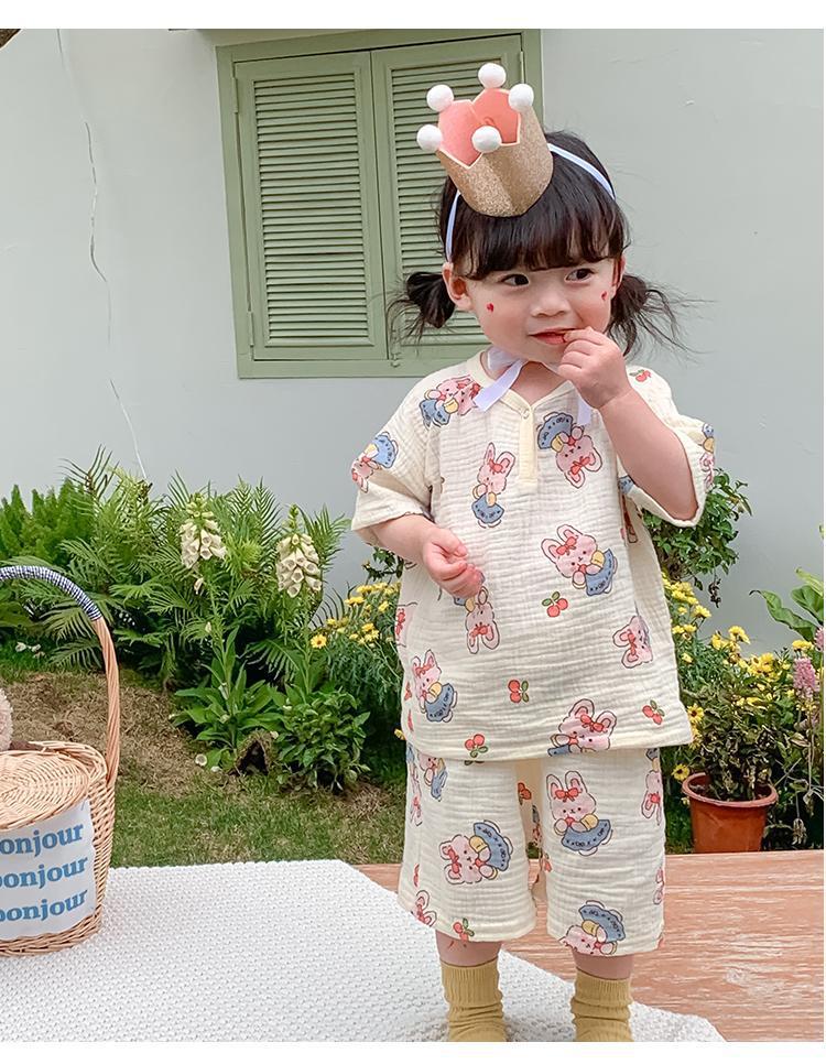 어린이 잠옷 소년의 면 거즈 여름 얇은 아기의 가정복 세트 반팔 여아 에어컨 옷스토어 가기
