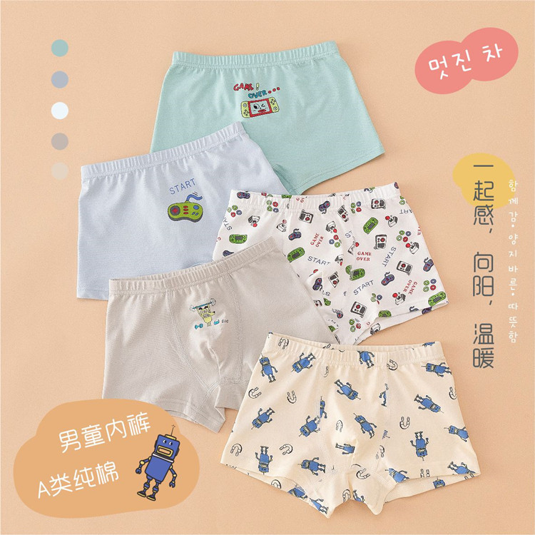 어린이 속옷 면 만화 통기성 인쇄 복서 반바지 어린 소년 학생 반바지 재고 제조 업체 도매스토어 가기