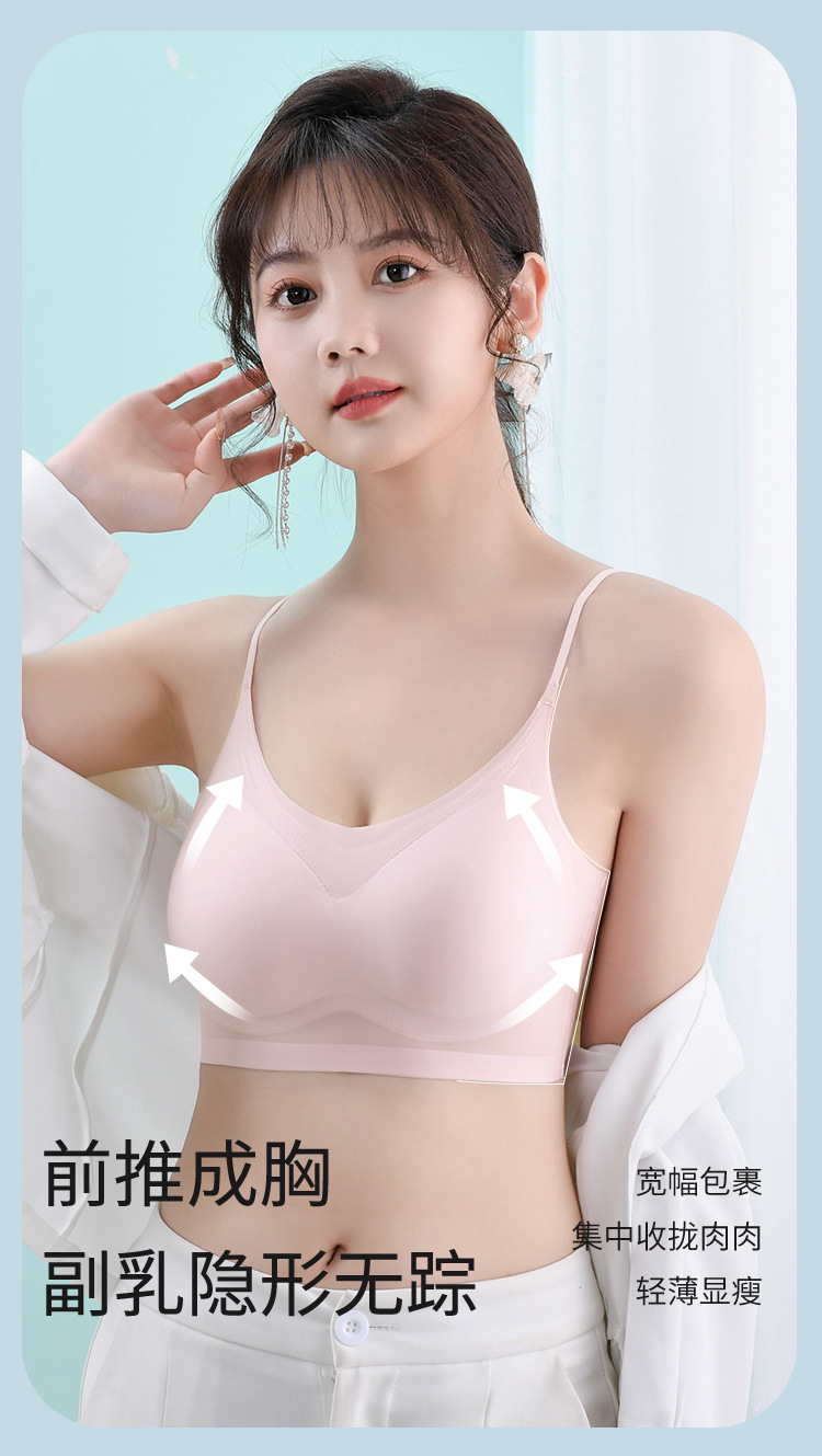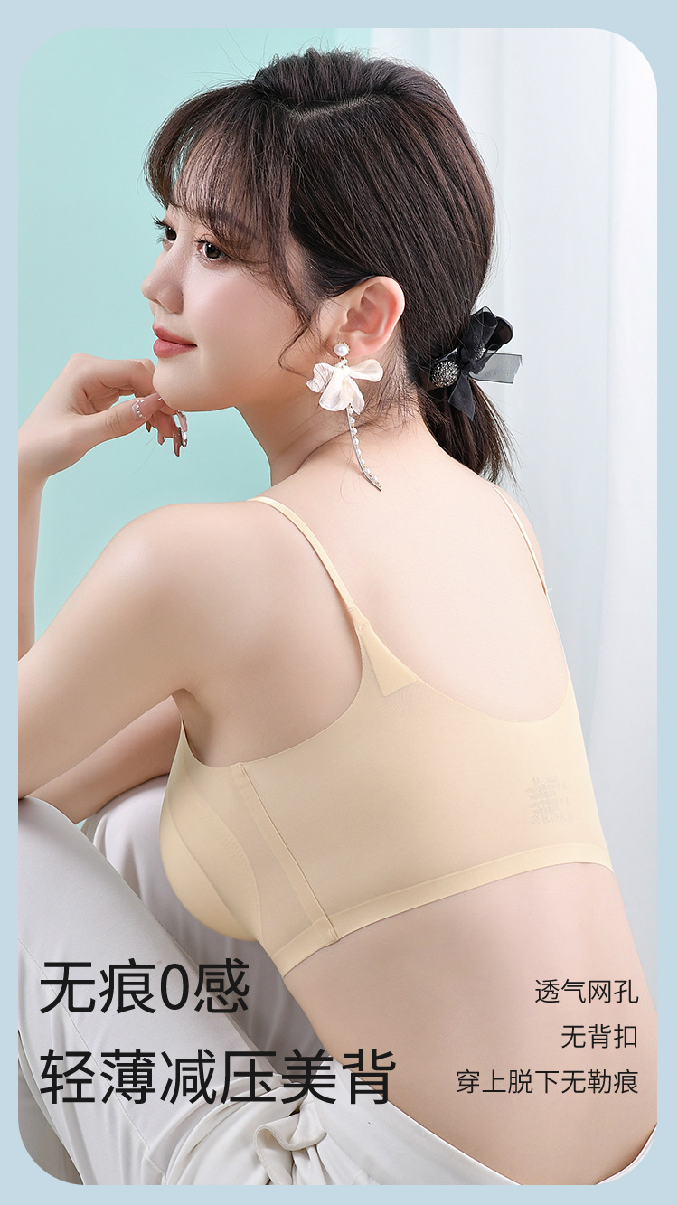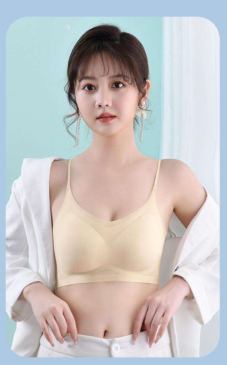 추적없는 초박형 여성 속옷 아름다운 등 작은 가슴 푸시 업 무테 원피스 통기성 아이스 실크 플러스 사이즈 브래지어 여성용스토어 가기