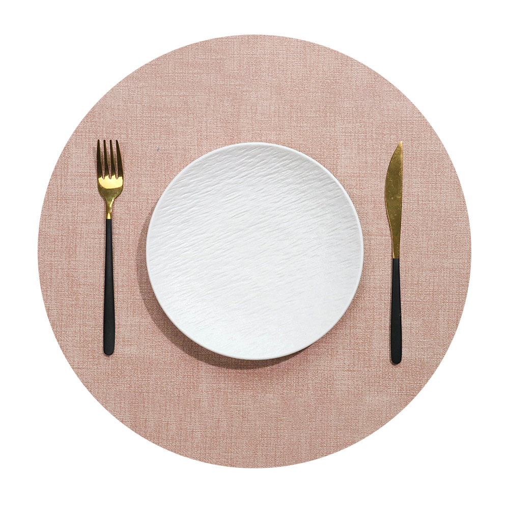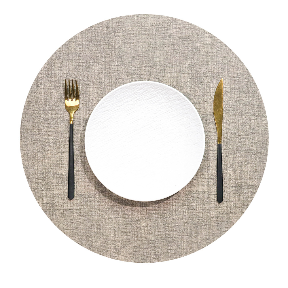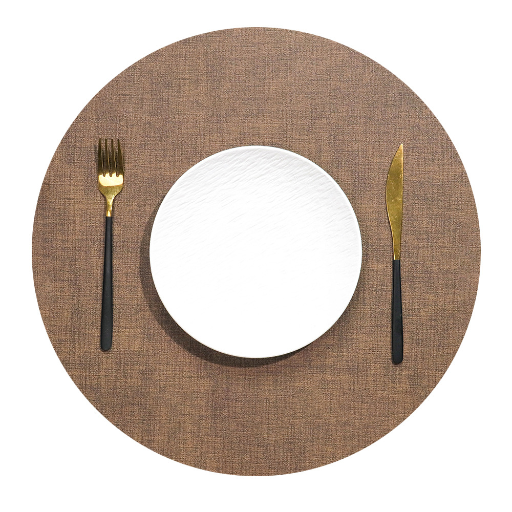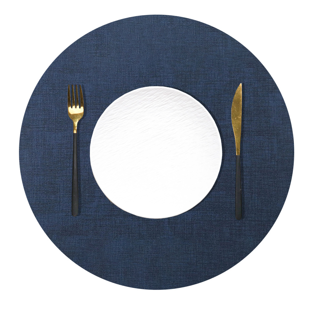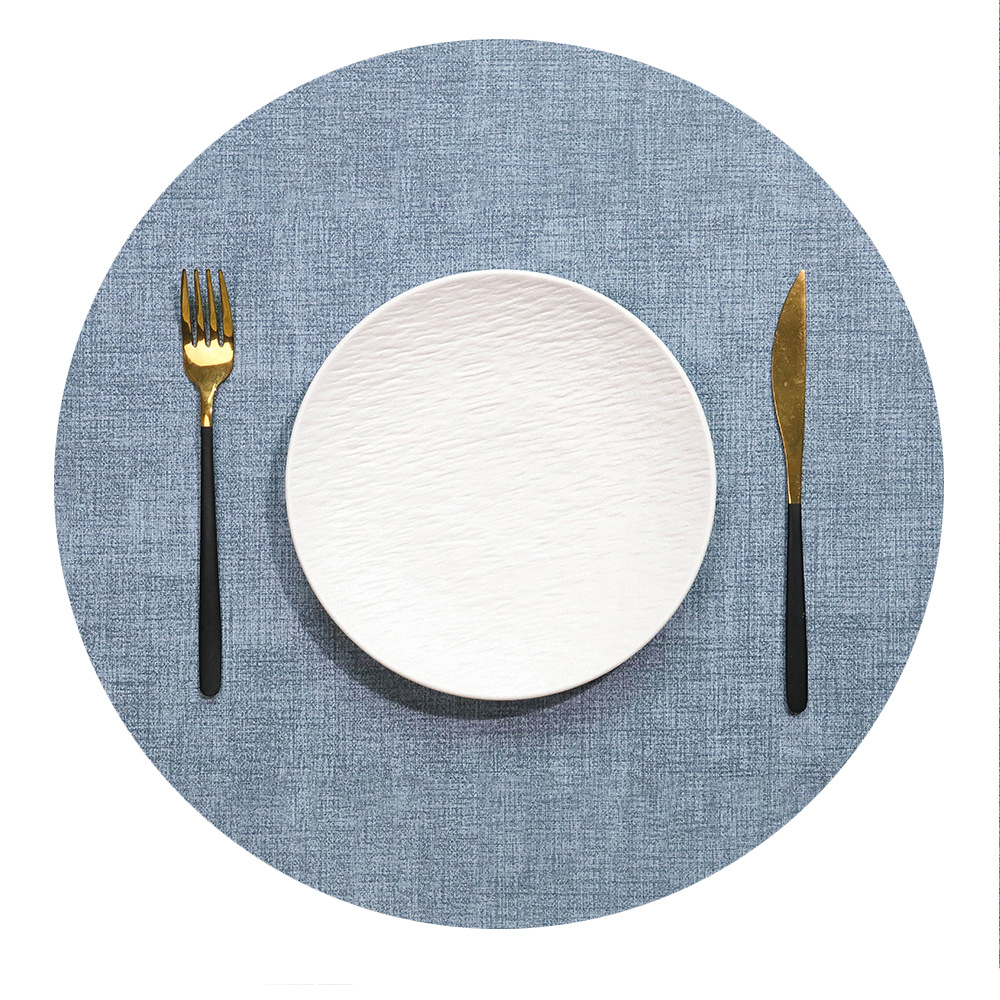 크로스 보더 라운드 pvc 가죽 플레이스매트 천 패턴 북유럽 스타일 서양 플레이스매트 호텔 테이블 매트 방수 오일 방지 단열 매트