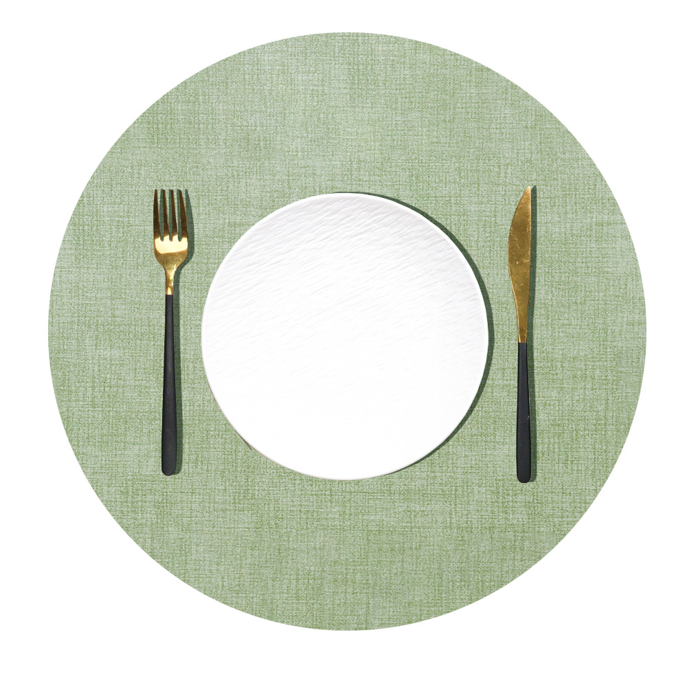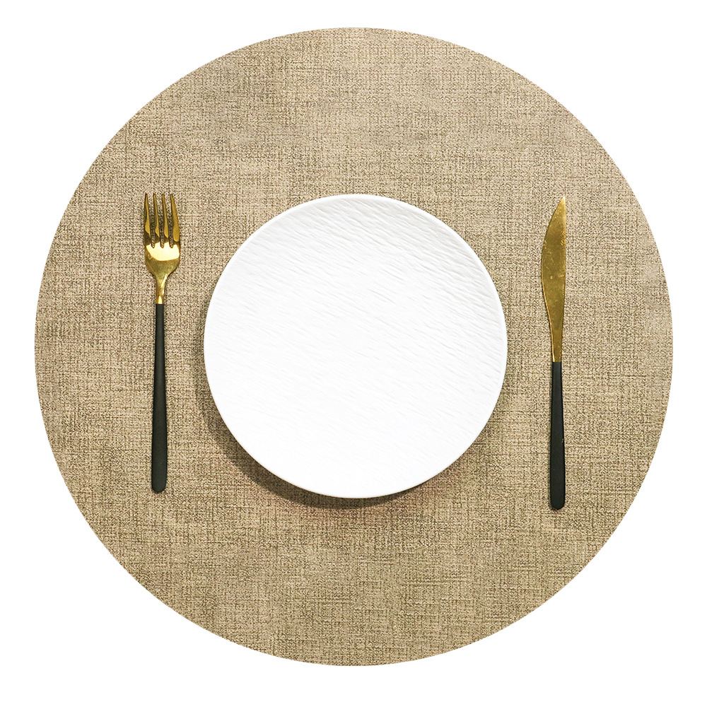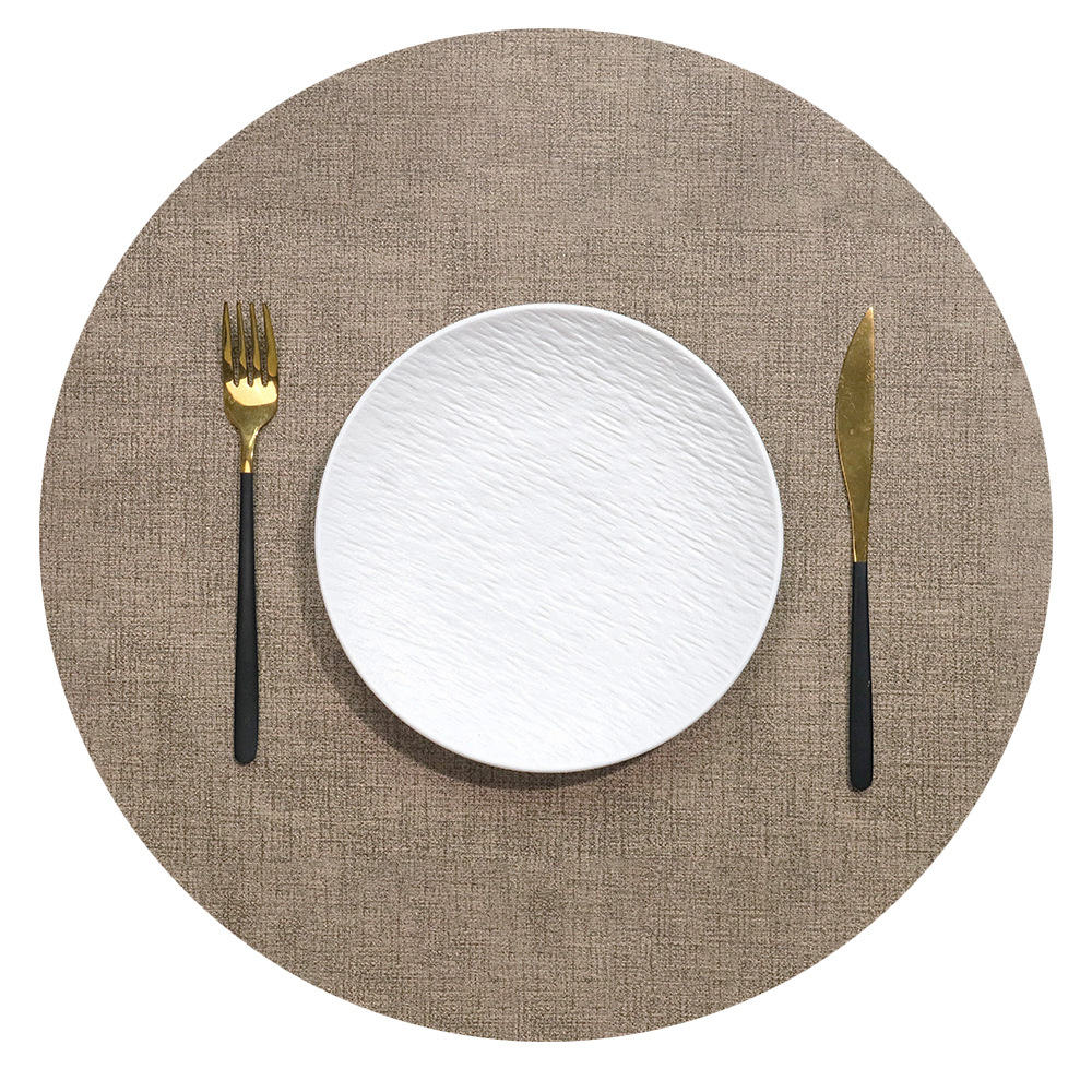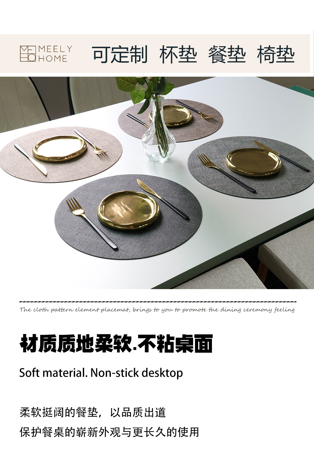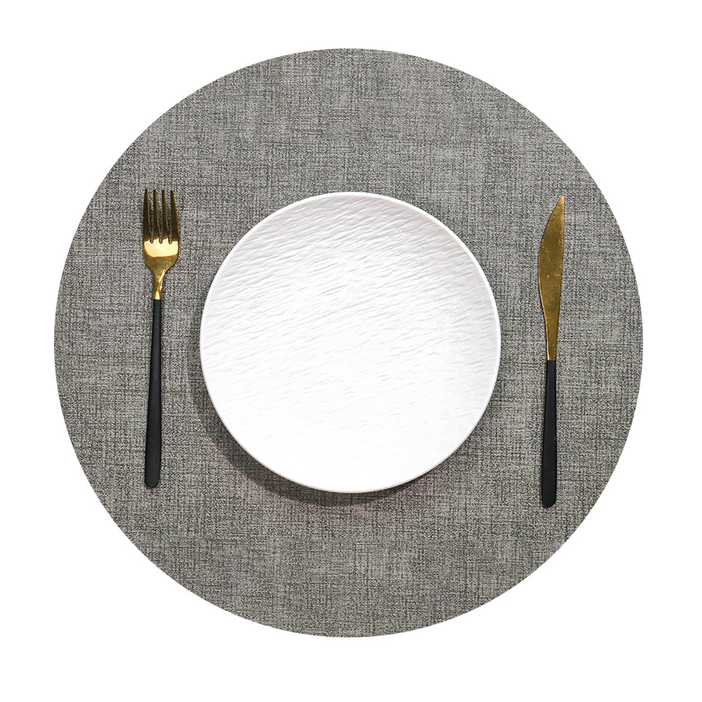 크로스 보더 라운드 pvc 가죽 플레이스매트 천 패턴 북유럽 스타일 서양 플레이스매트 호텔 테이블 매트 방수 오일 방지 단열 매트