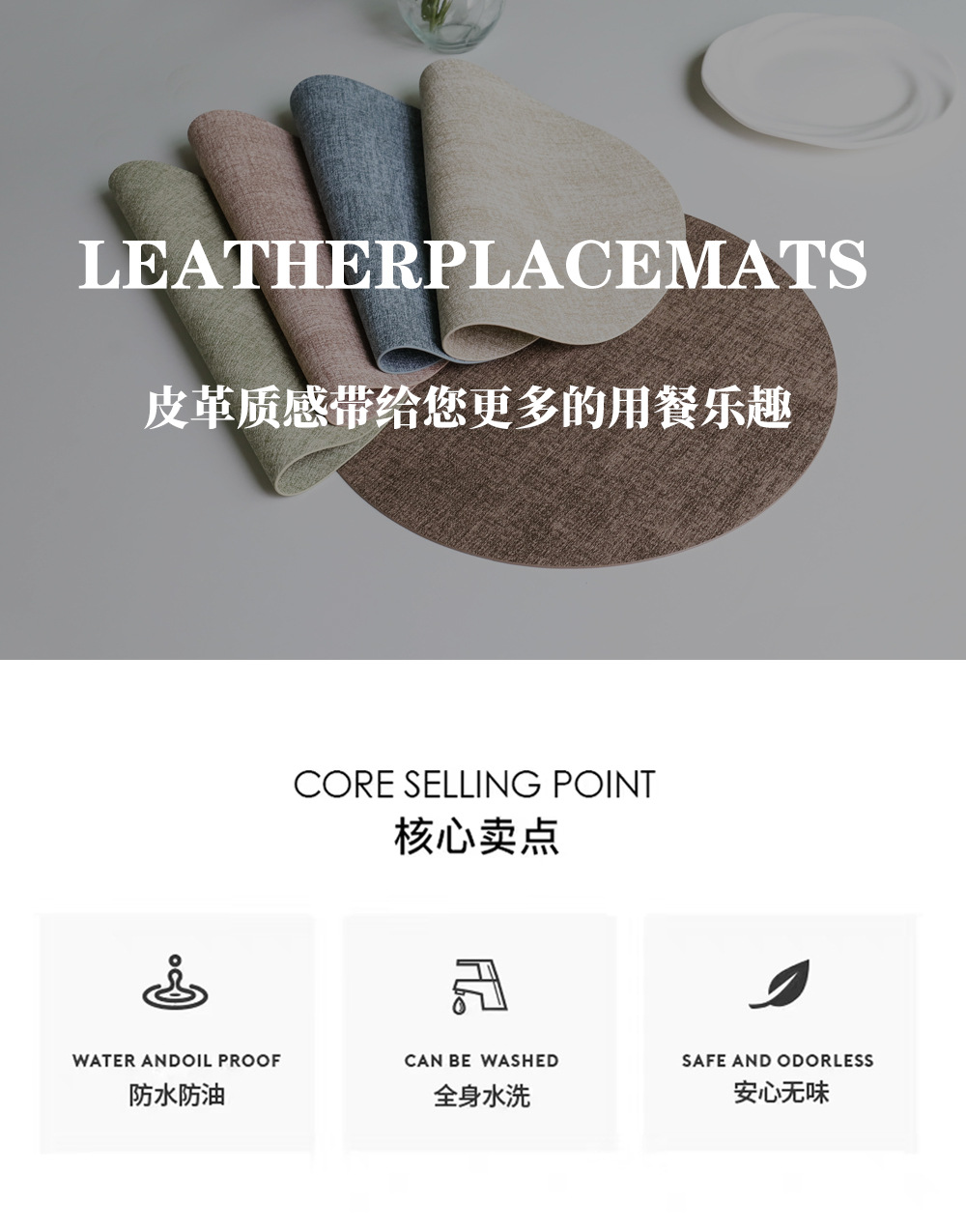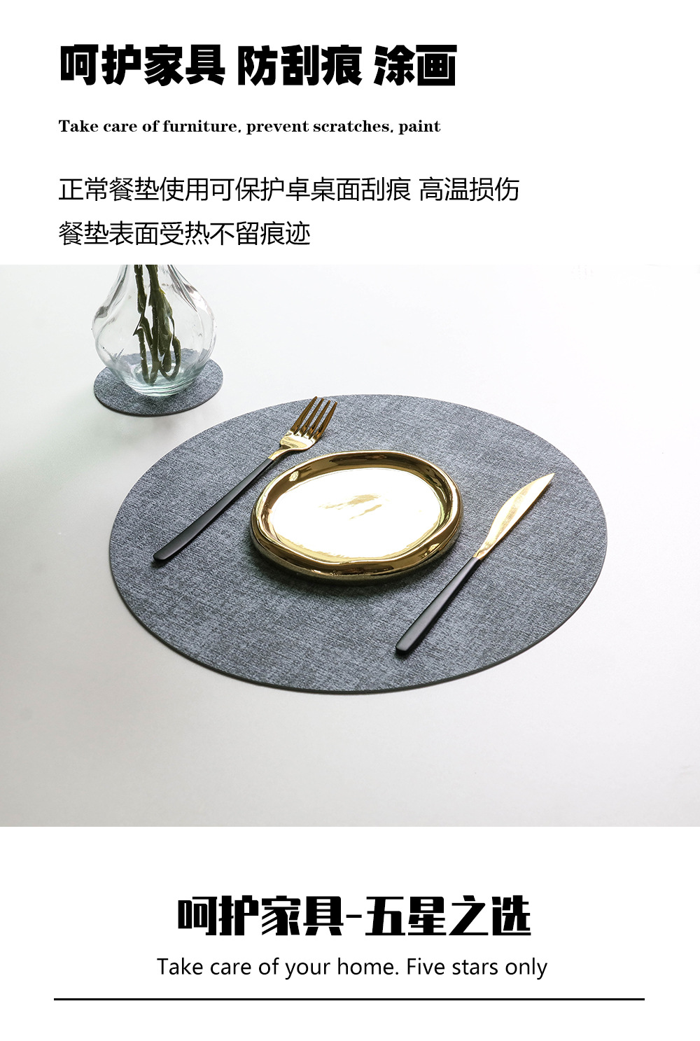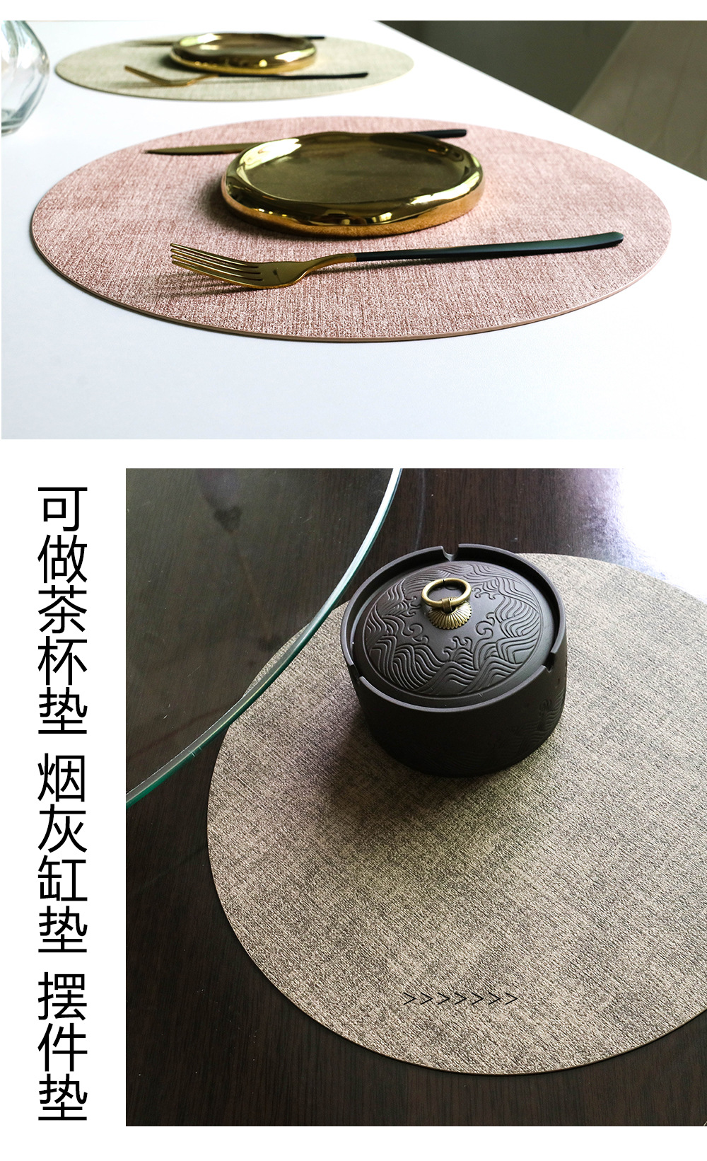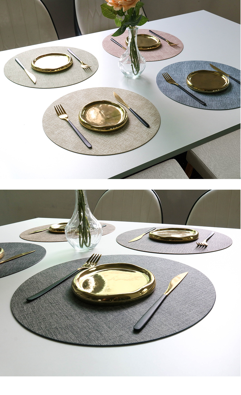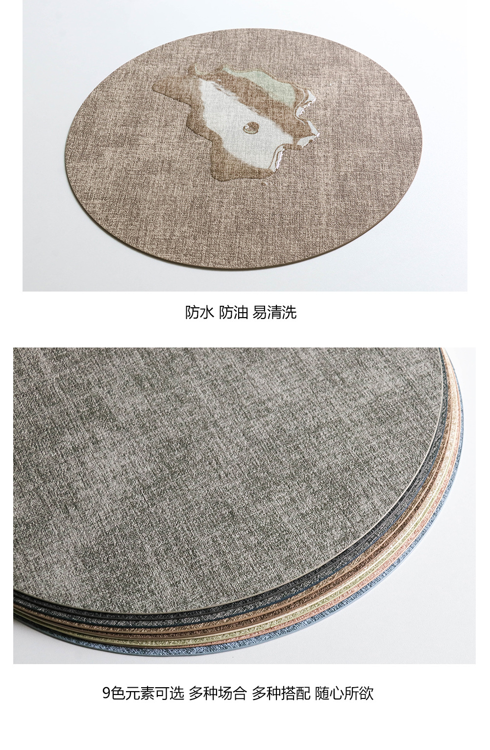 크로스 보더 라운드 pvc 가죽 플레이스매트 천 패턴 북유럽 스타일 서양 플레이스매트 호텔 테이블 매트 방수 오일 방지 단열 매트스토어 가기