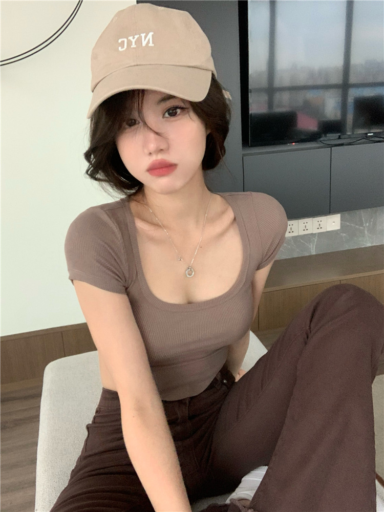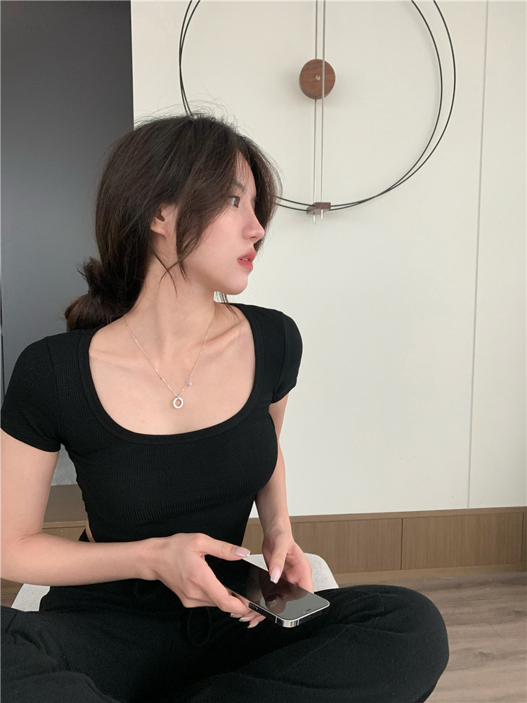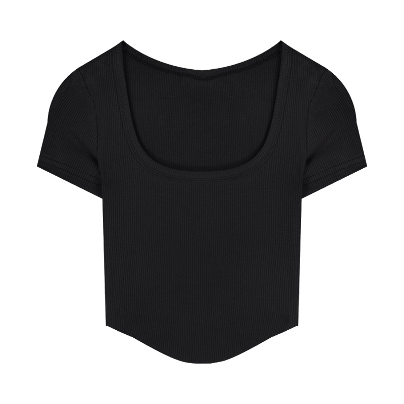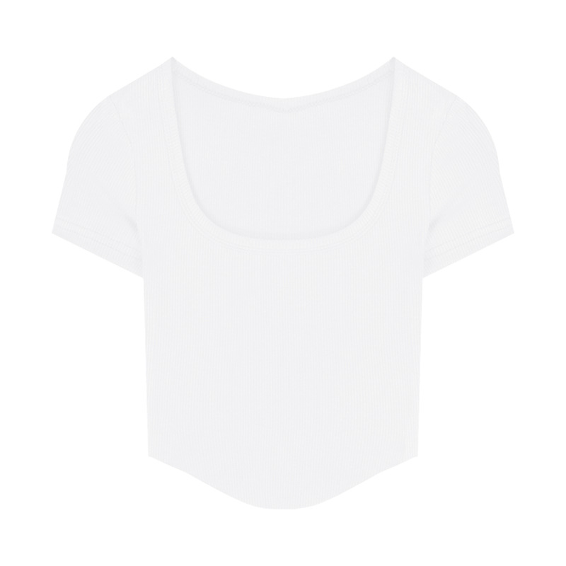 2025년 여름 신상 불규칙 하이웨이스트 숏 슬림핏 반팔 상의 골지 티셔츠 여성 슬림핏스토어 가기