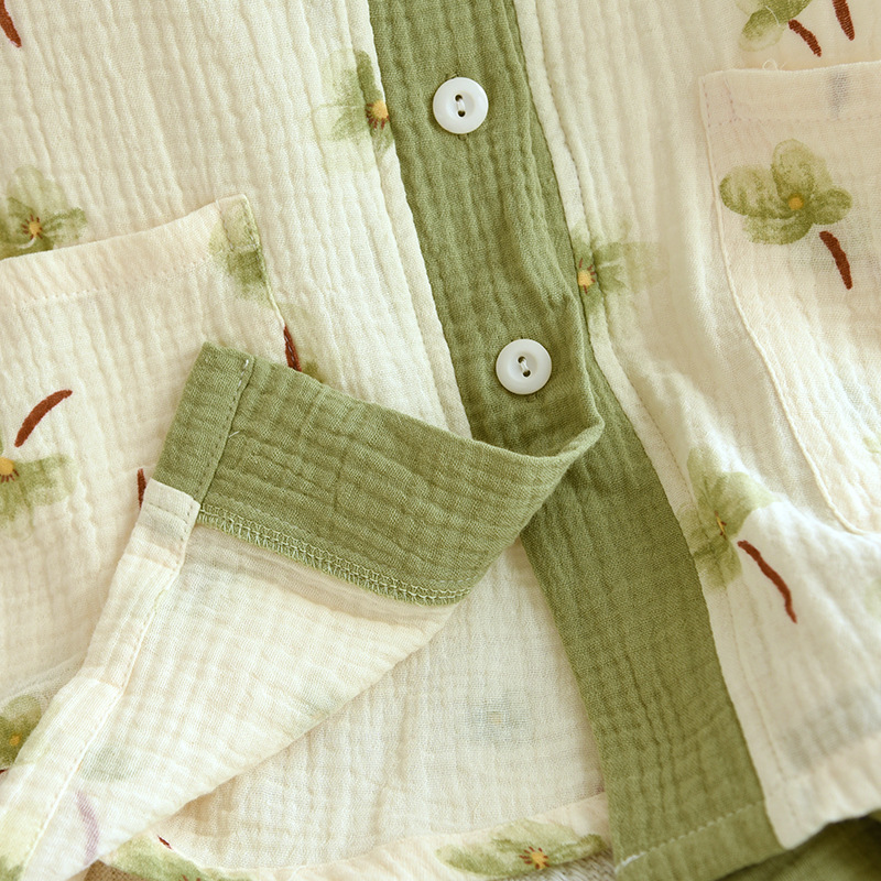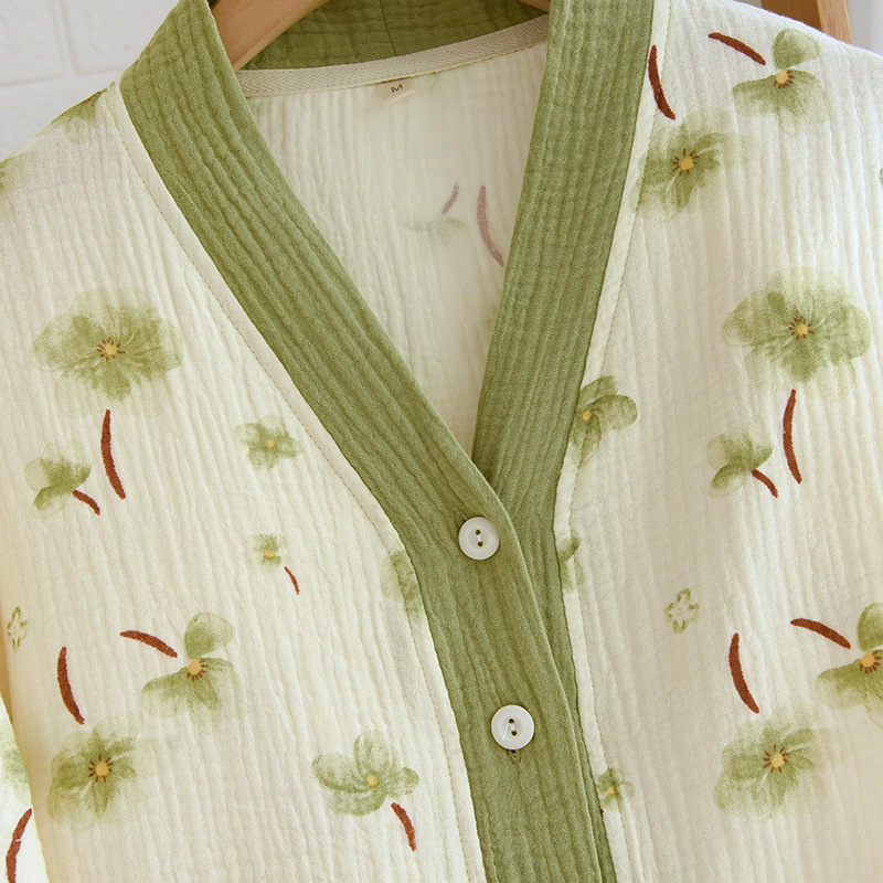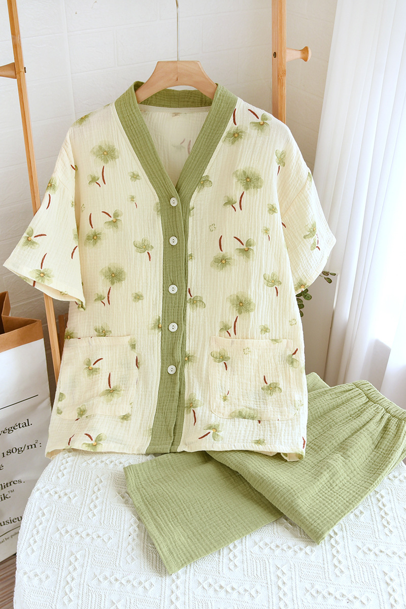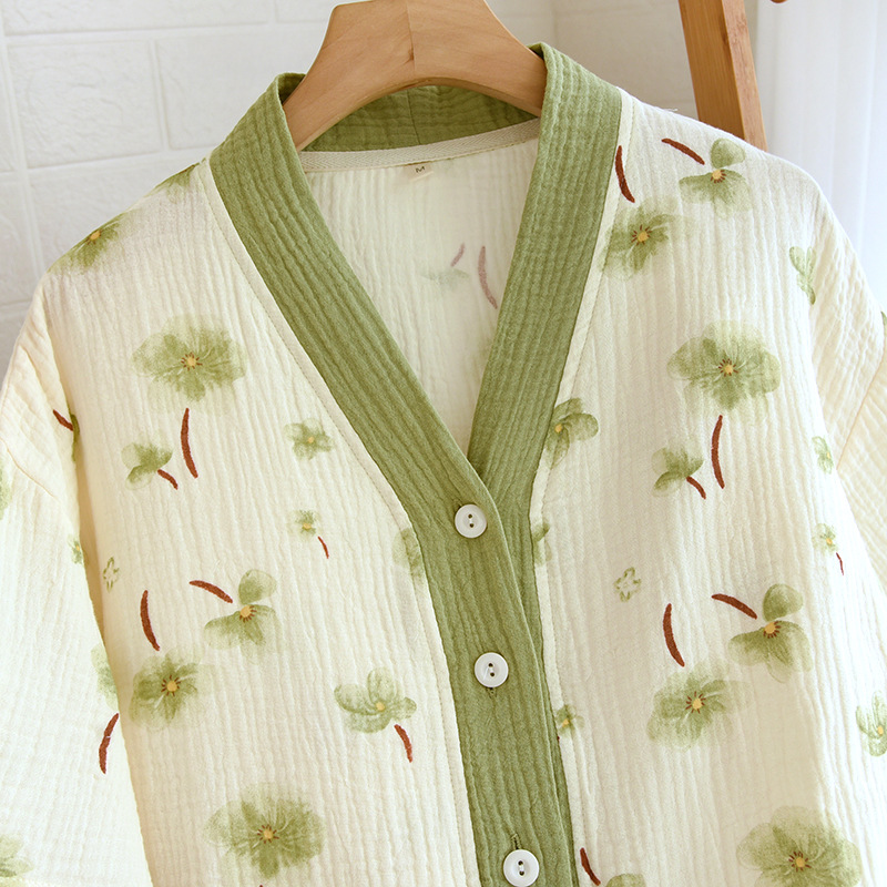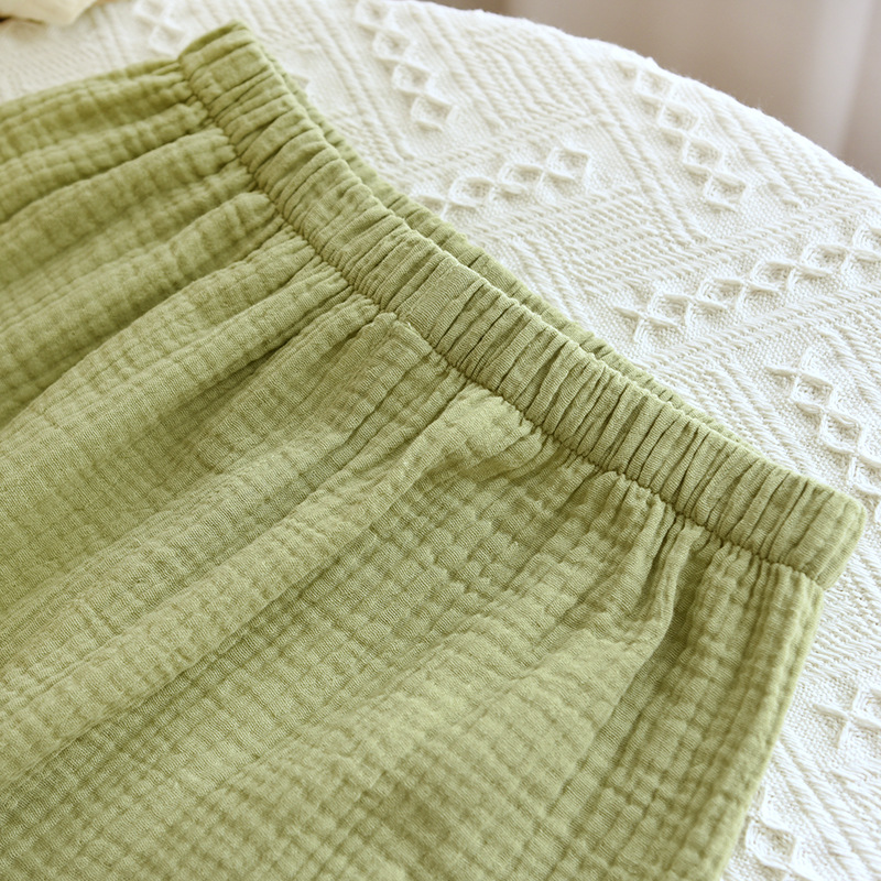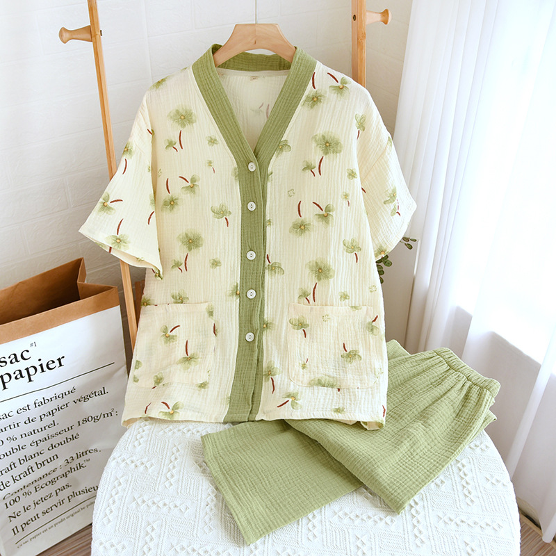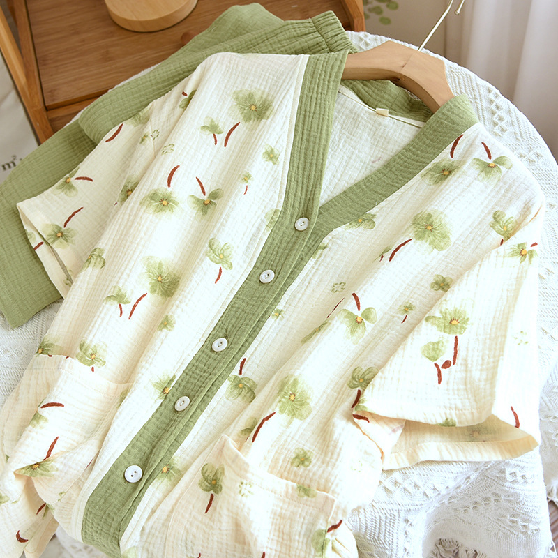 잠옷 여자의 여름 면 크레이프 반팔 바지 세트 여자의 귀여운 달콤한 생활 옷 새로운 도매 머리스토어 가기