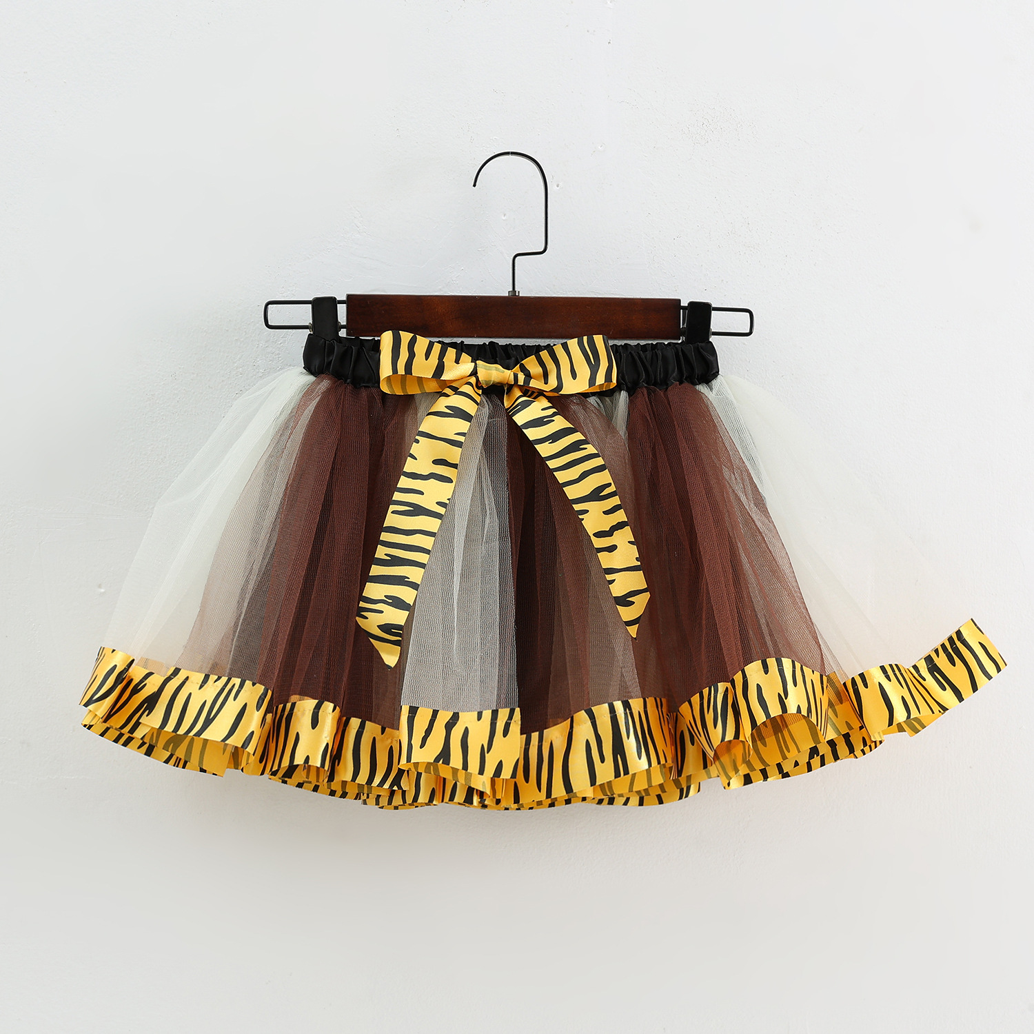 새로운 소녀의 스트라이프 프린트 동물 스타일 메쉬 스커트 어린이 삐죽 삐죽 한 치마 줄 퍼포먼스 스커트