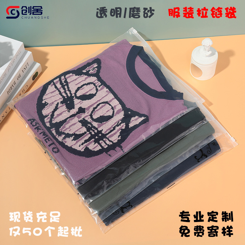 투명 젖빛 지퍼 가방 재고 pe 자체 밀봉 가방 의류 보관 가방 클립 체인 밀봉 가방 플라스틱 의류 포장 가방