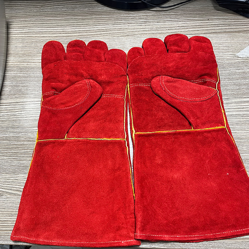 용접 장갑 보호 노동 보호 용접기 장갑 안감이있는 긴 두꺼운 미끄럼 방지 소가죽 단열 용접 장갑