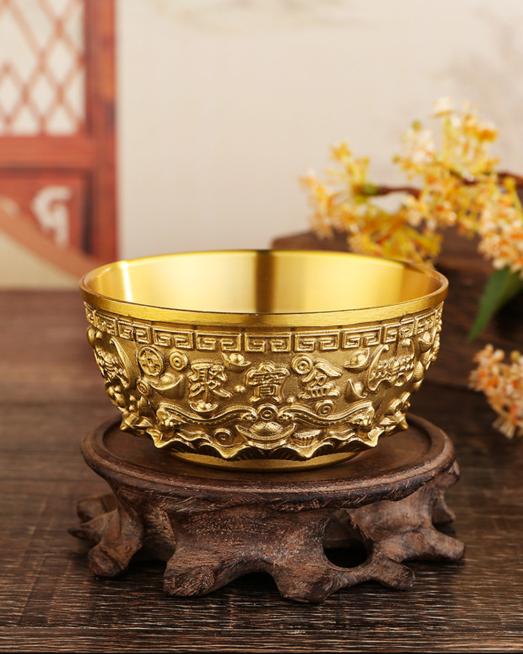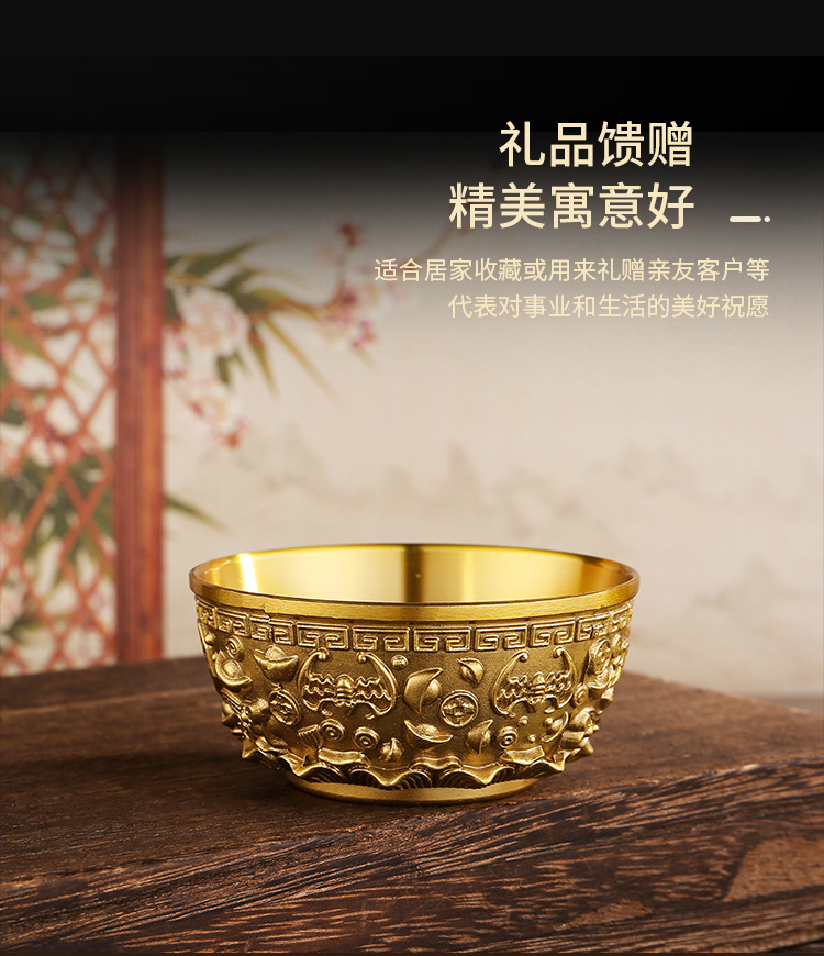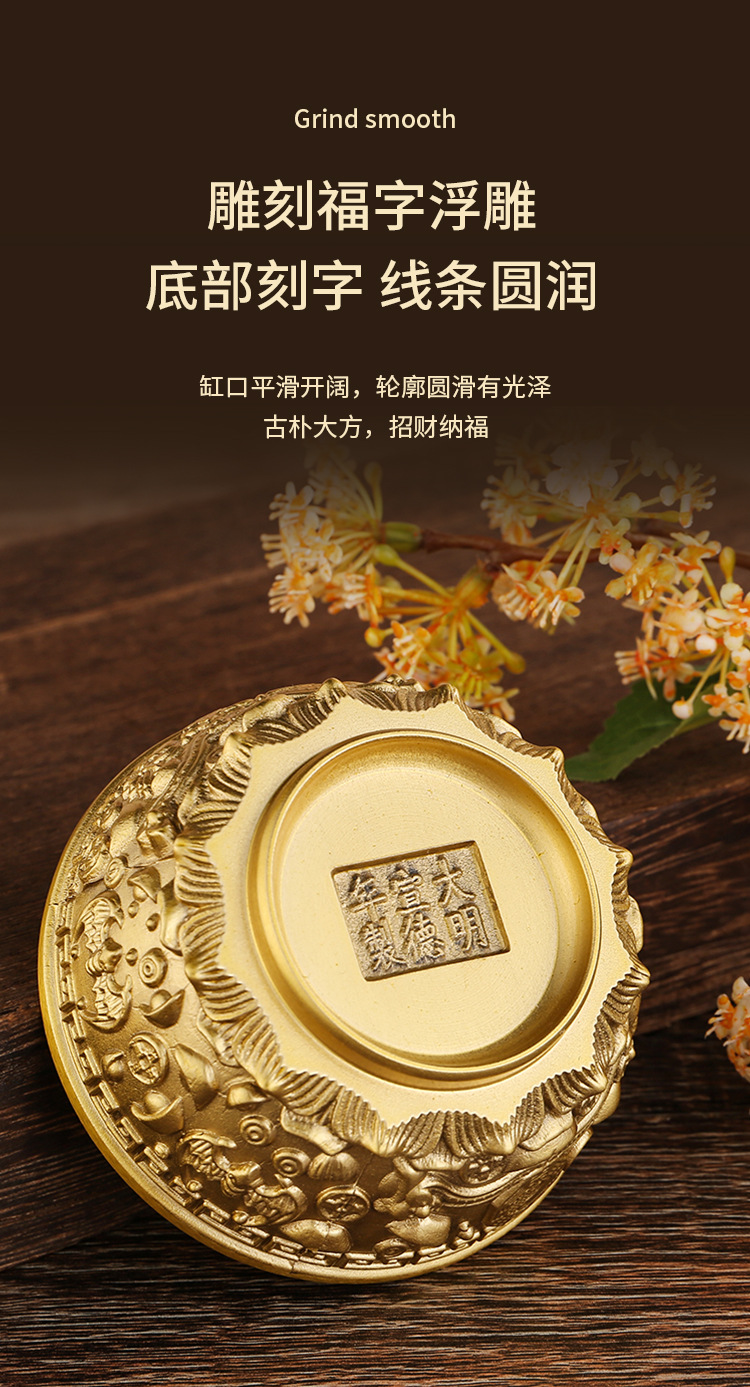 빈티지 8cm Yuanbao Cornucopia 두꺼운 구리 실린더 장식품 거실 입구 장식 상점 열기 집들이 선물