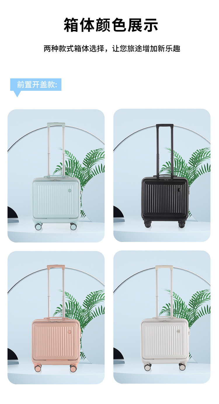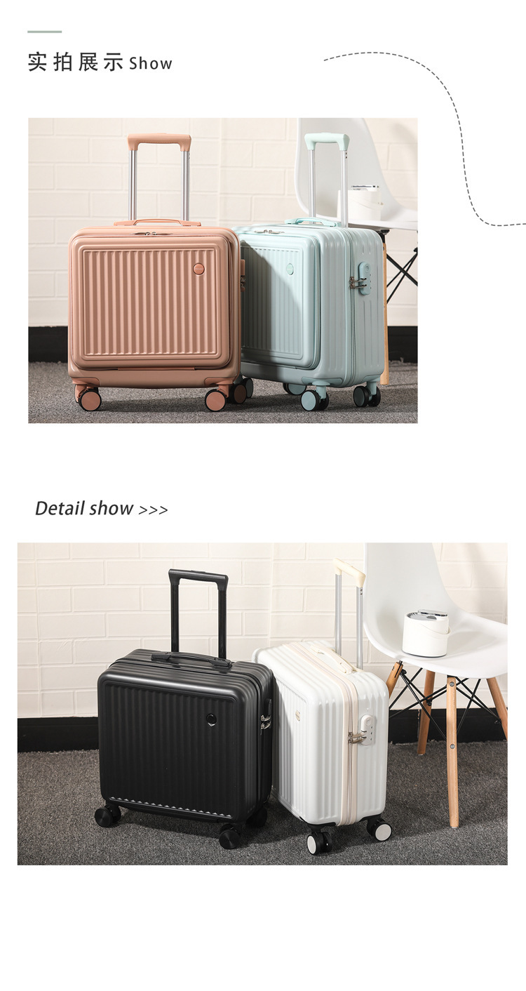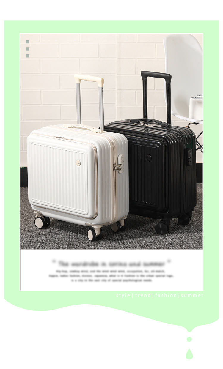 크리 에이 티브 프론트 오픈 뚜껑 수하물 케이스 여성 저장 유물 18 인치 비즈니스 휴대용 비밀번호 탑승 케이스 소형 수하물 케이스 20스토어 가기