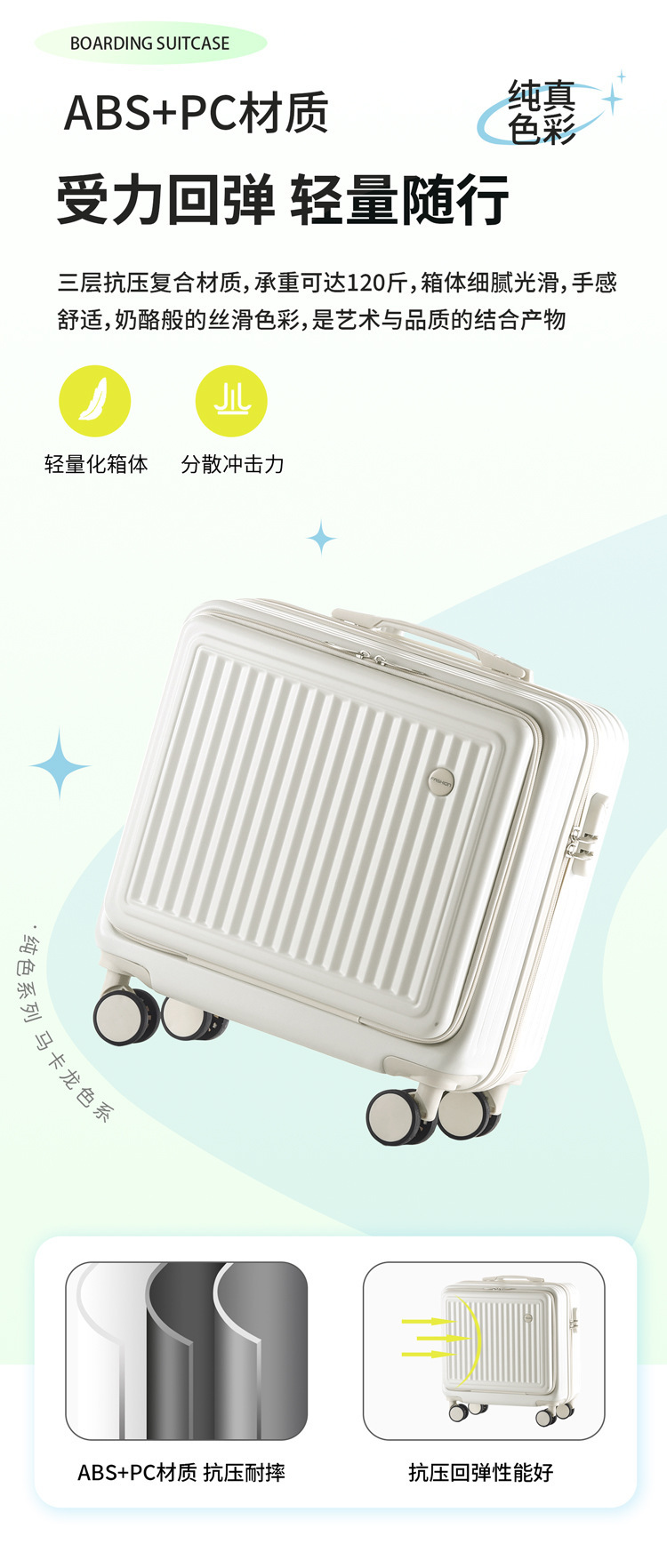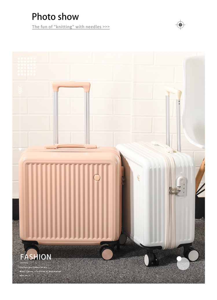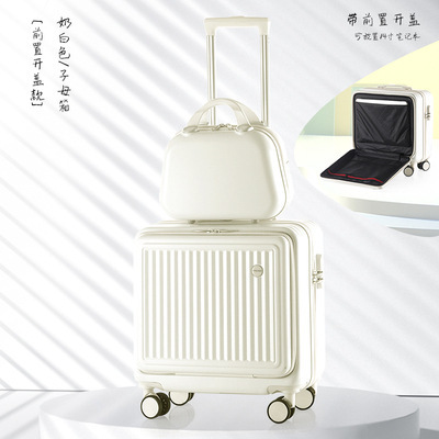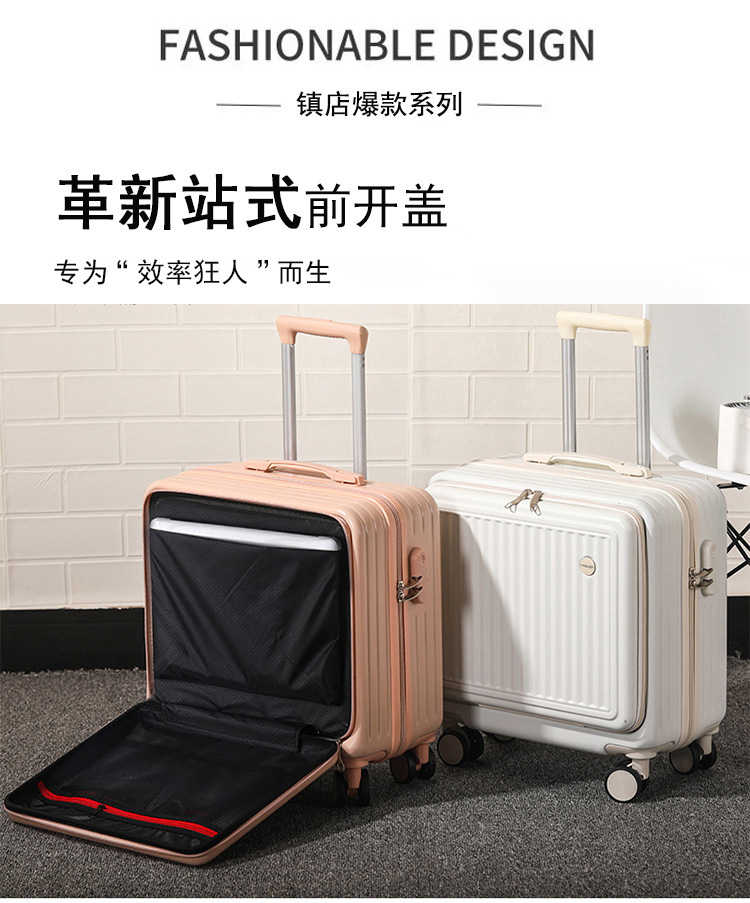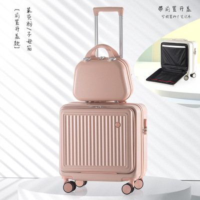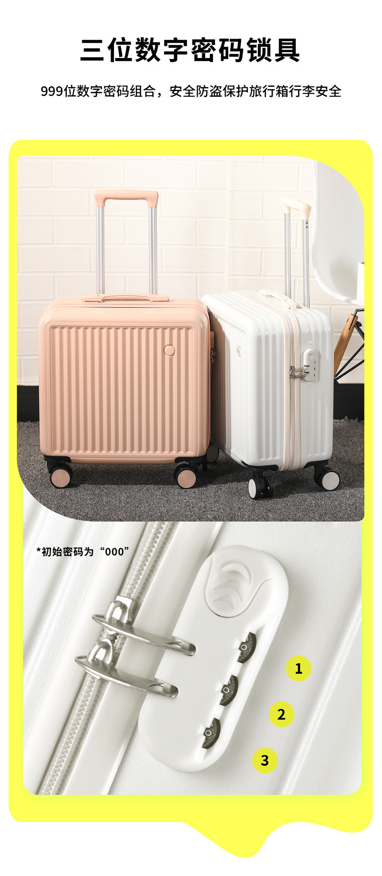 크리 에이 티브 프론트 오픈 뚜껑 수하물 케이스 여성 저장 유물 18 인치 비즈니스 휴대용 비밀번호 탑승 케이스 소형 수하물 케이스 20스토어 가기