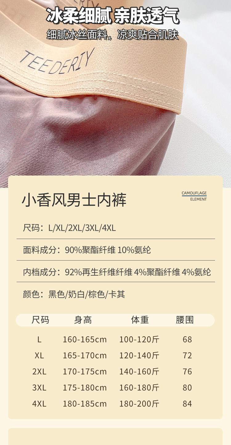 아이스 실크 남자의 원활한 속옷 여름 얇은 소년 '느슨한 플러스 사이즈 4 코너 통기성 시원한 느낌 복서 반바지
