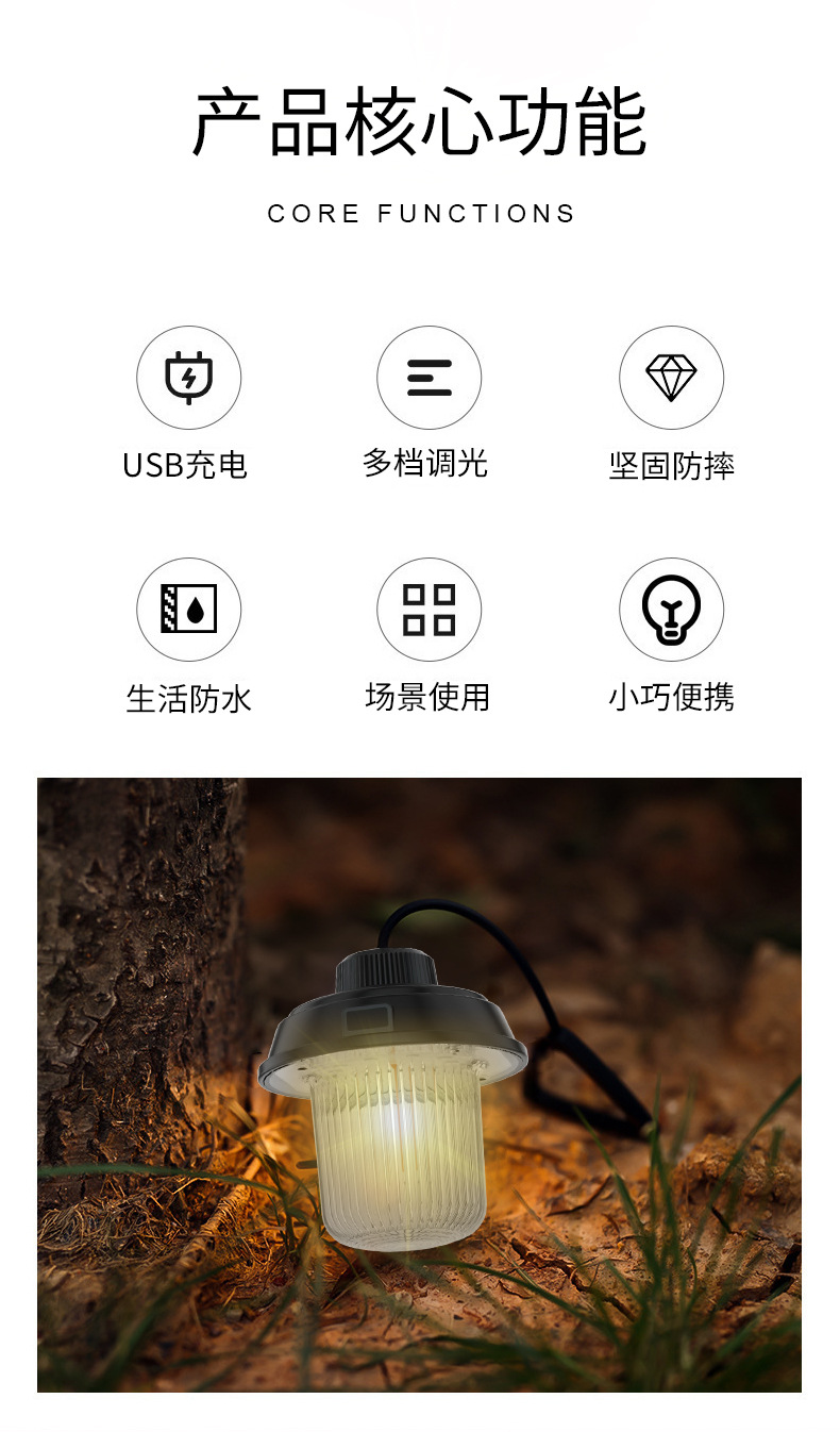 크로스 보더 새로운 야외 Type-c 충전 캠프 샹들리에 캠핑 램프 캐노피 교수형 램프 휴대용 캠핑 텐트 램프스토어 가기