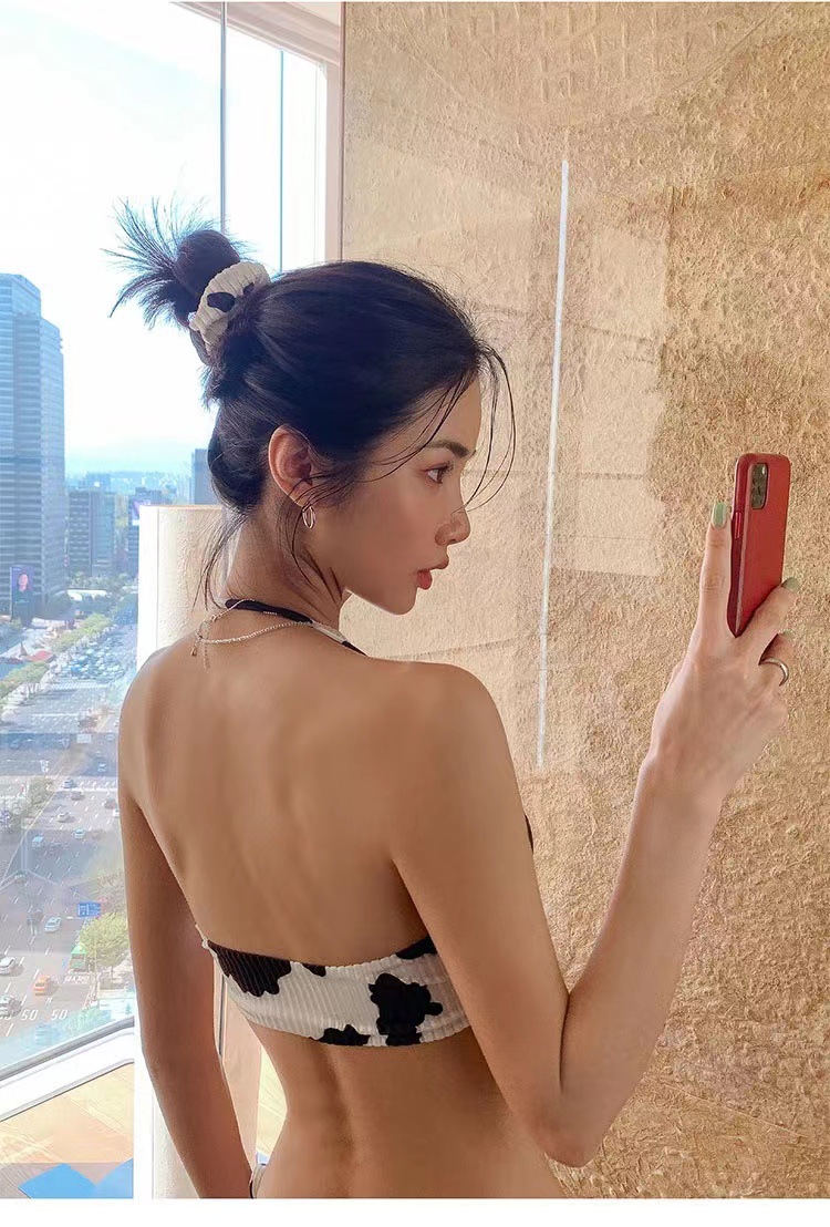 2020 유럽과 미국 비키니 소 인쇄 목 레이스 업 스플릿 수영복 섹시한 등이없는 비키니 재고 도매