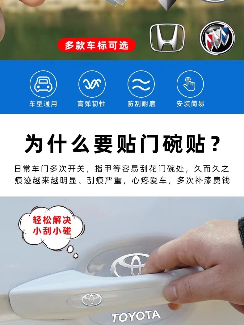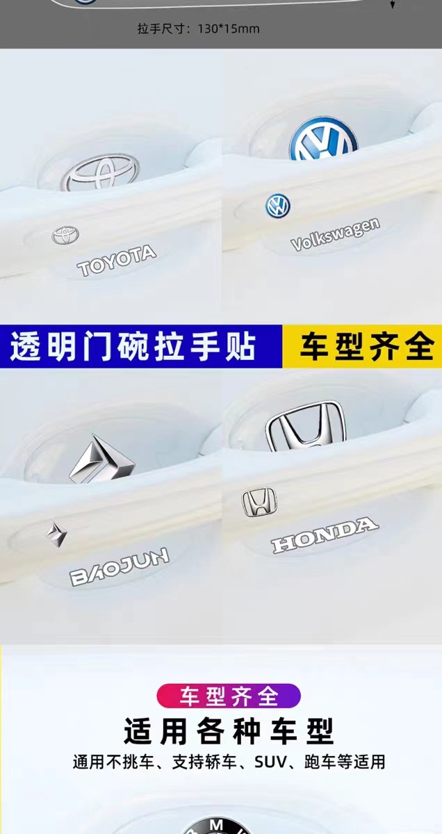 자동차 투명 보이지 않는 도어 볼 핸들 보호 필름 도어 볼 핸들 스티커 안티 스크래치 범용 페인트 투명 스티커스토어 가기