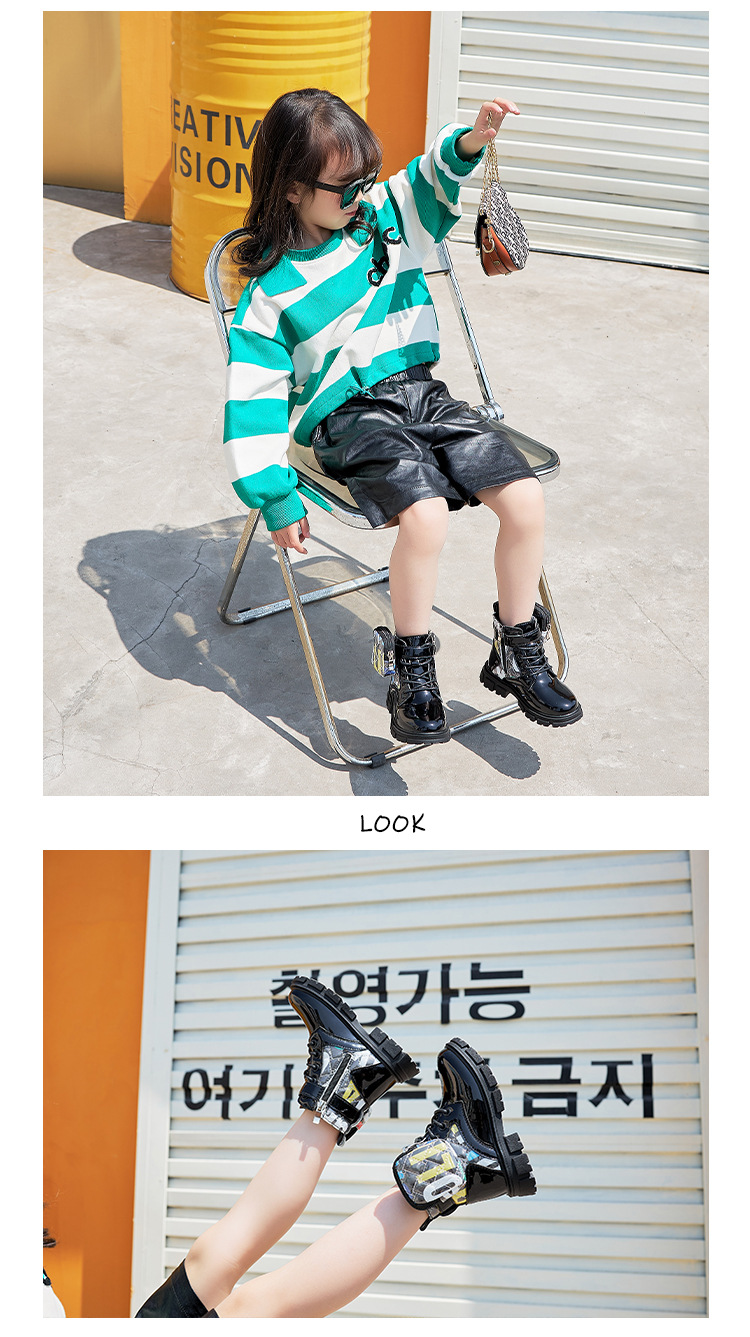마틴 부츠 2023 봄과 가을 어린이 가죽 신발 소년 발목 부츠 패션 부츠 소녀스토어 가기