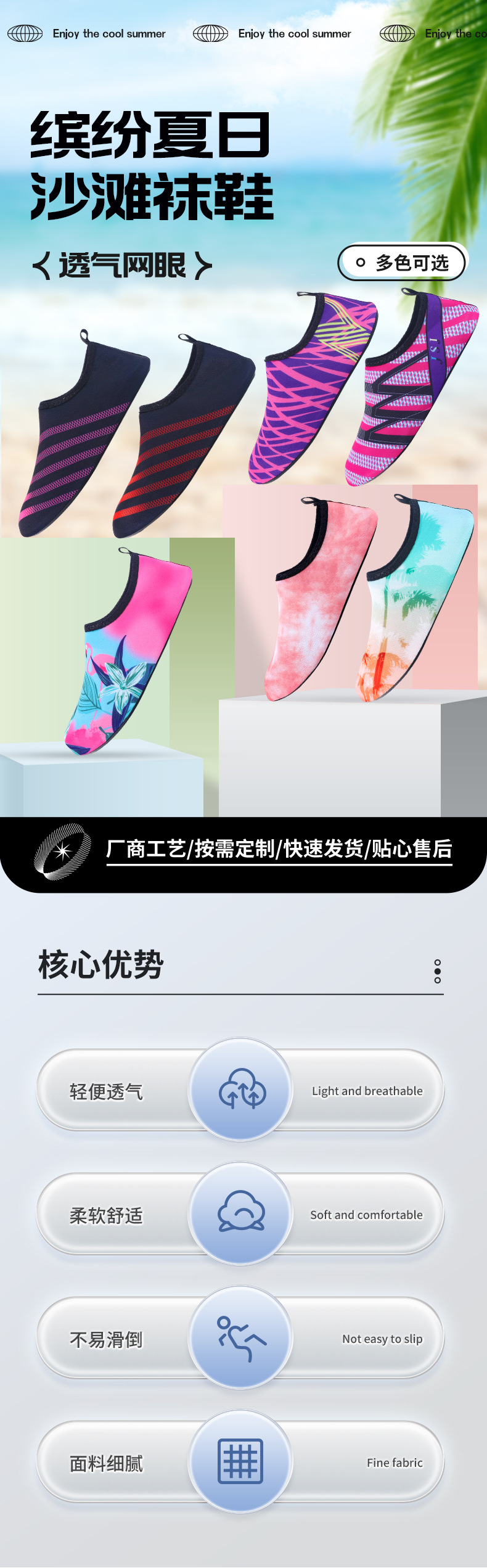 여름 얇은 추적 신발 남성과 여성 부모-자녀 커플 스노클링 해변 신발 및 양말 맨발의 부드러운 바닥 실내 신발 도매