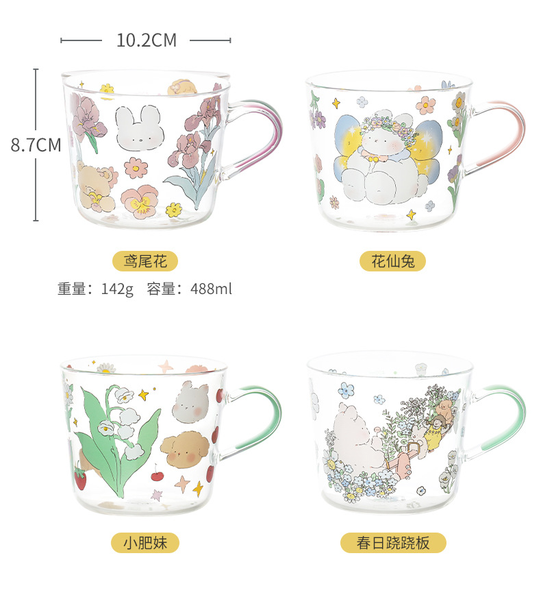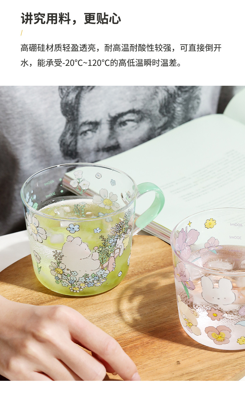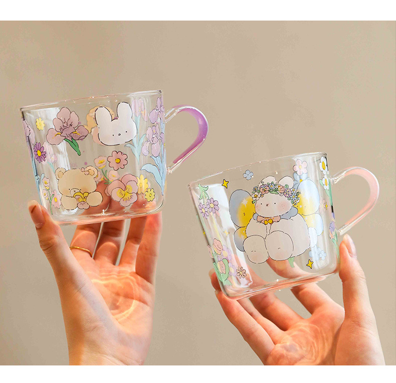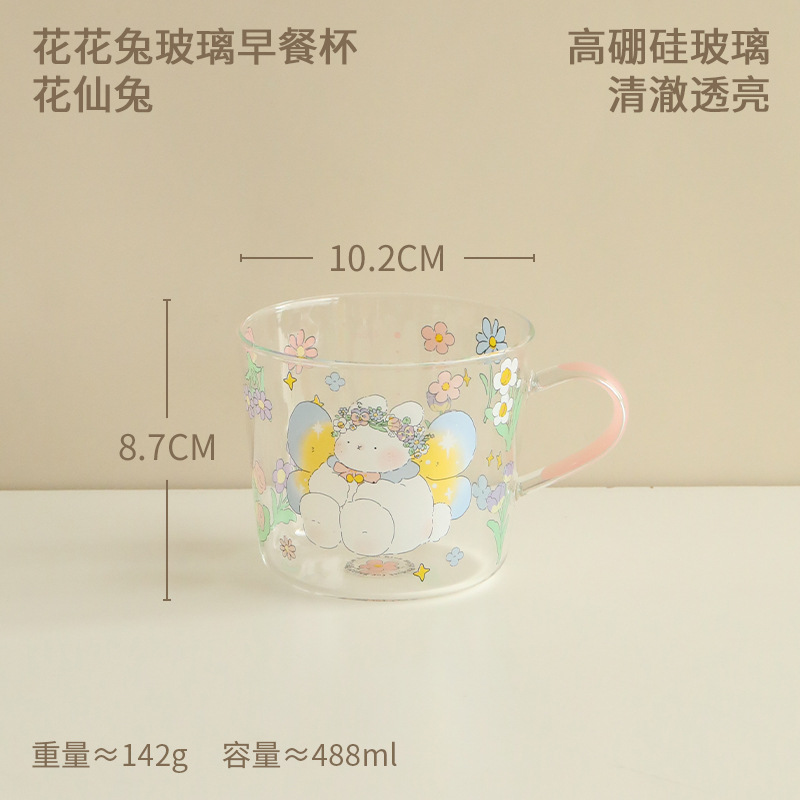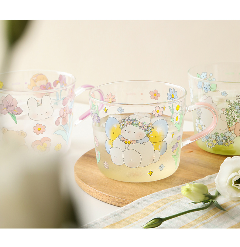 • [플라워 페어리 래빗] 유리 아침 식사 컵