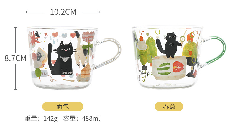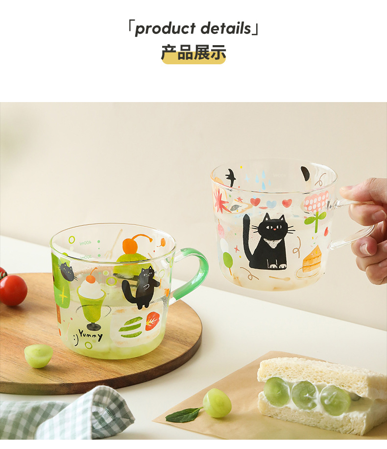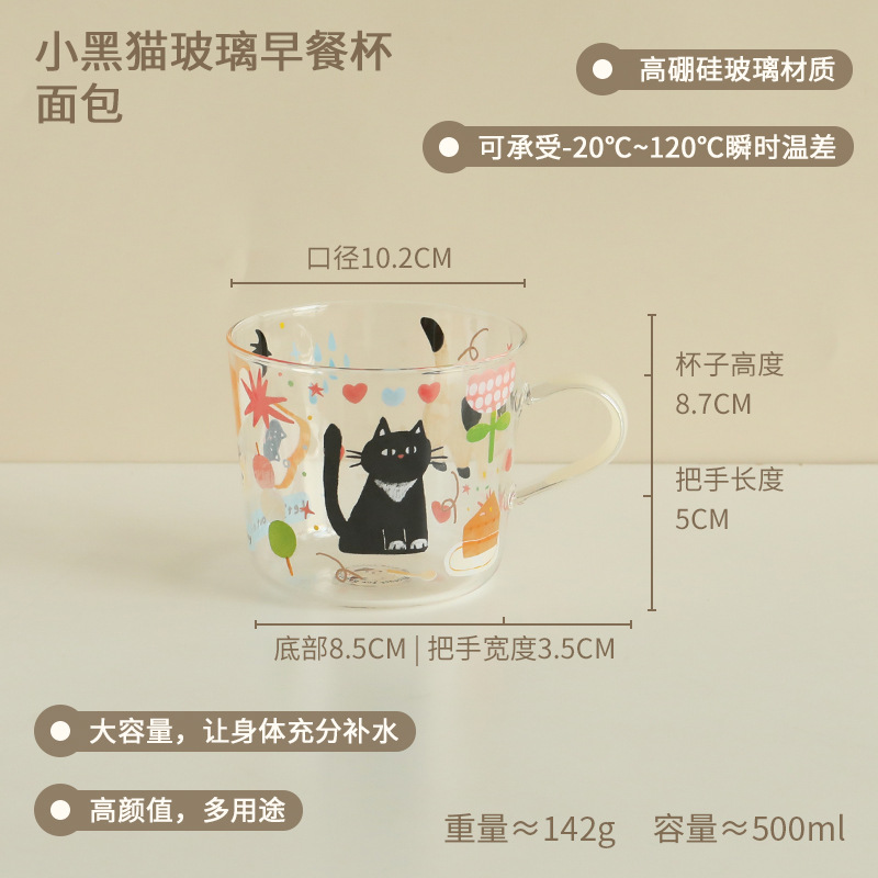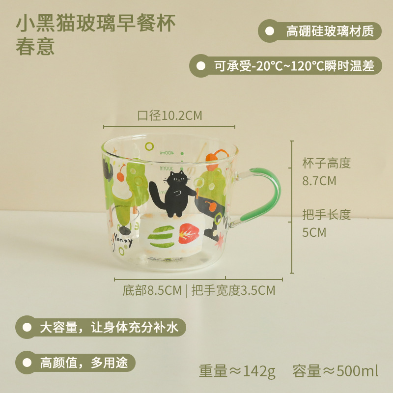 • 리틀 블랙 캣 (봄) 유리 아침 식사 컵