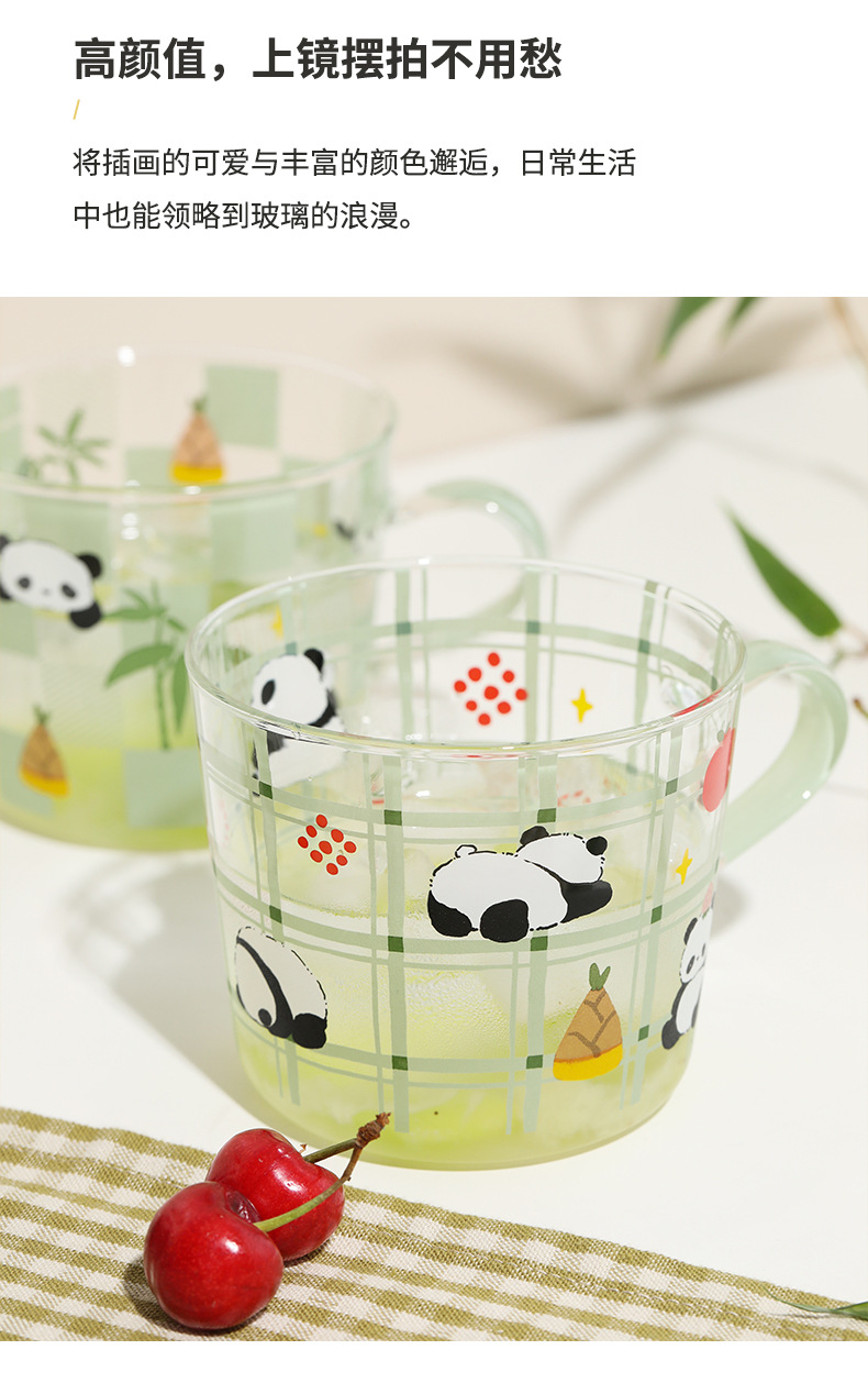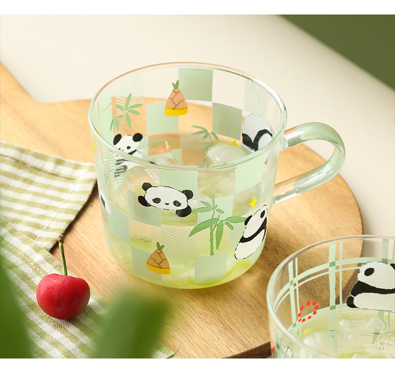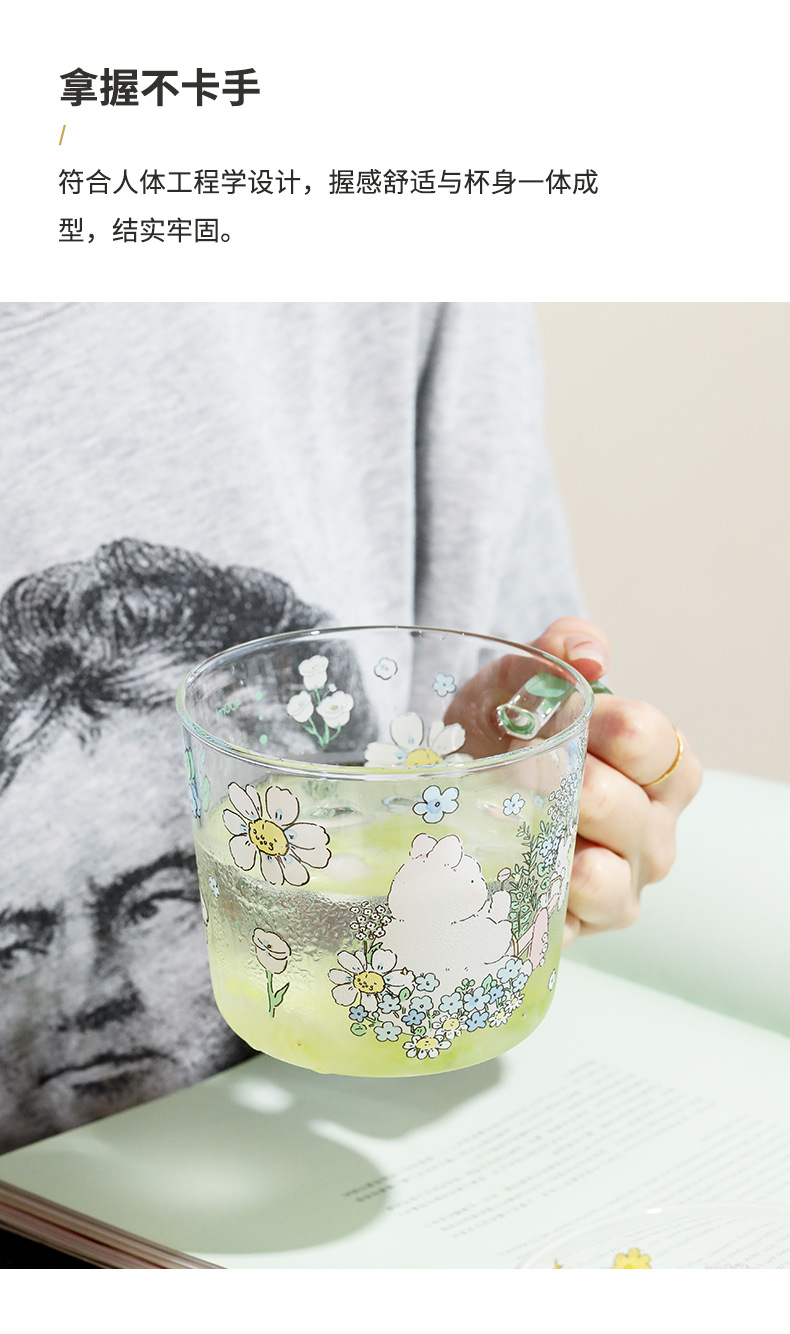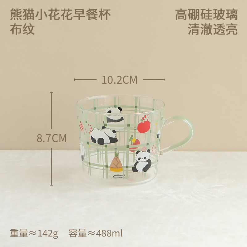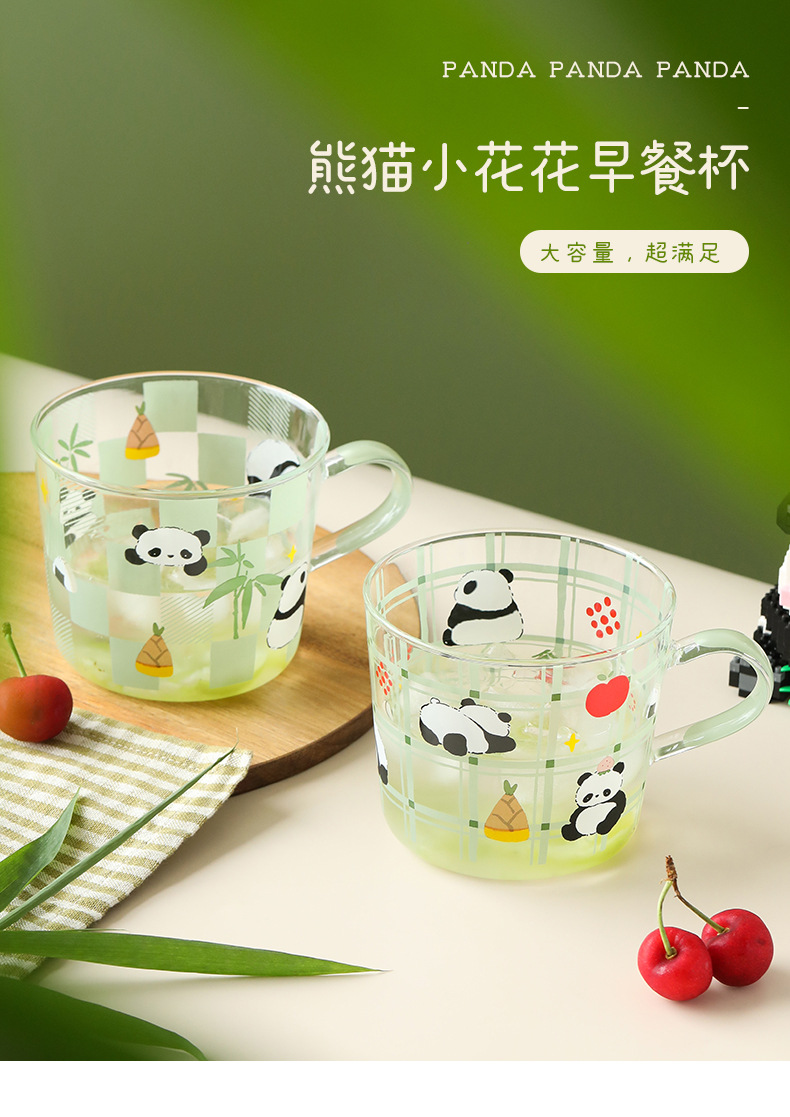 Huahua 토끼 어린이 물 컵 가정용 귀여운 고온 저항 아침 식사 컵 팬더 밀크 컵 손잡이 붕규산
