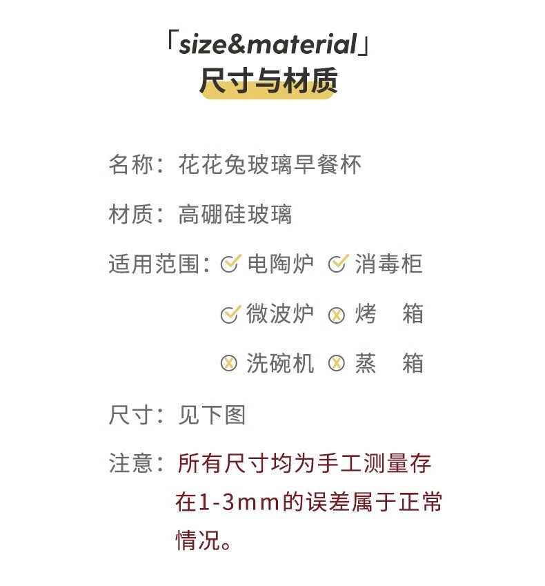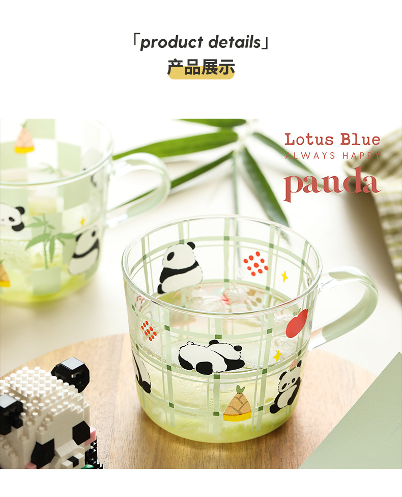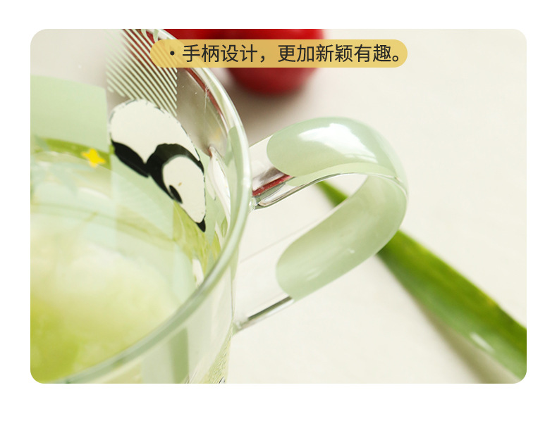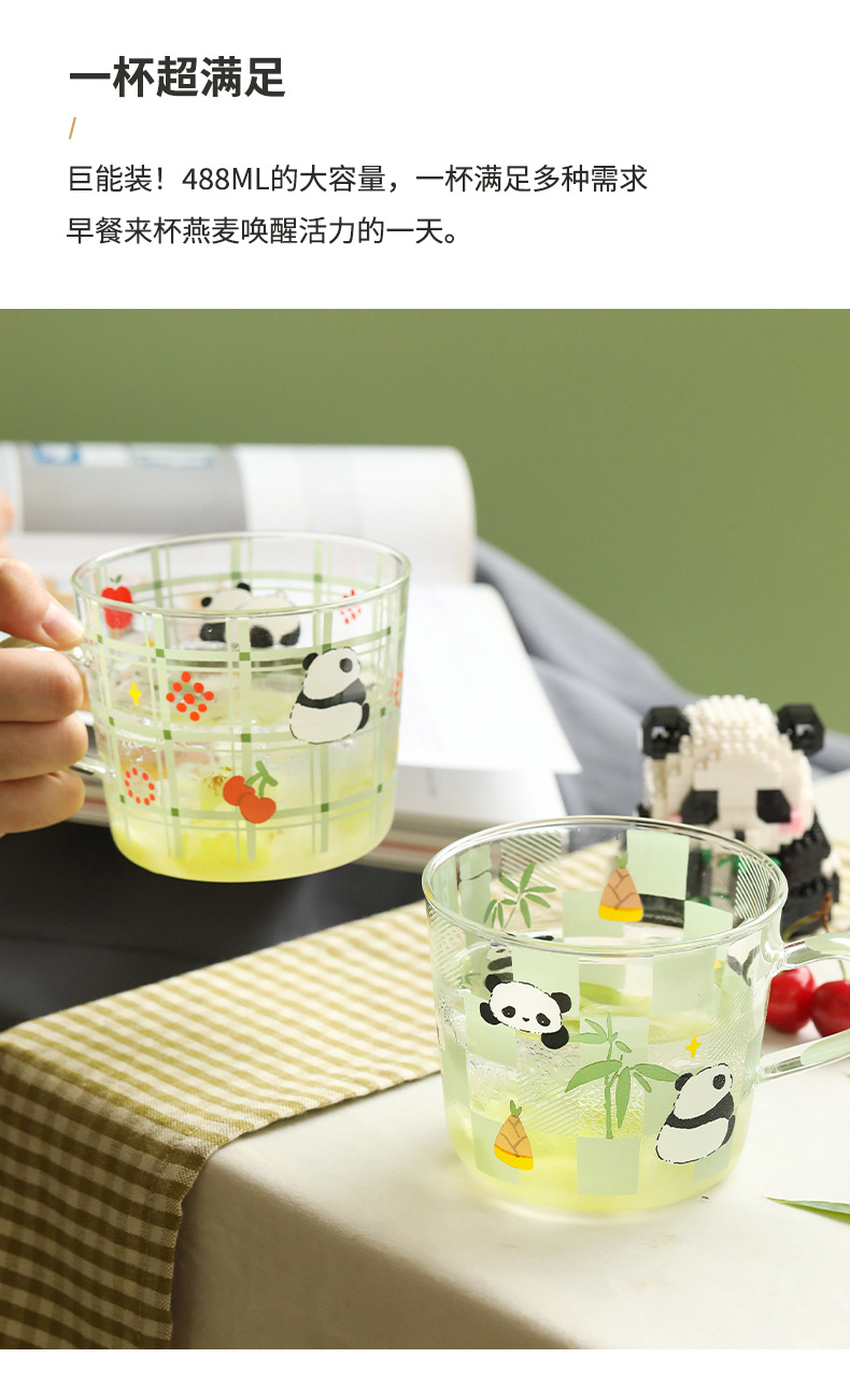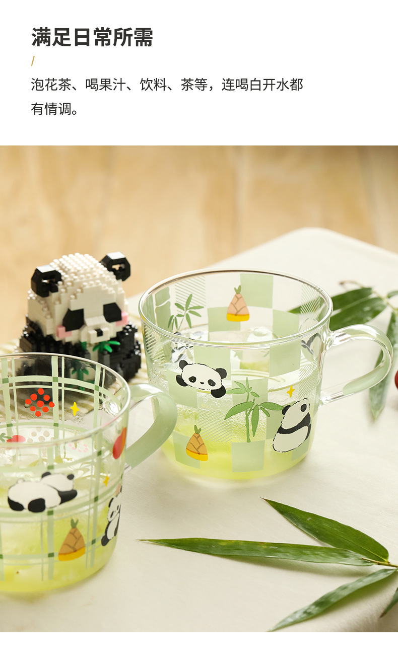 Huahua 토끼 어린이 물 컵 가정용 귀여운 고온 저항 아침 식사 컵 팬더 밀크 컵 손잡이 붕규산