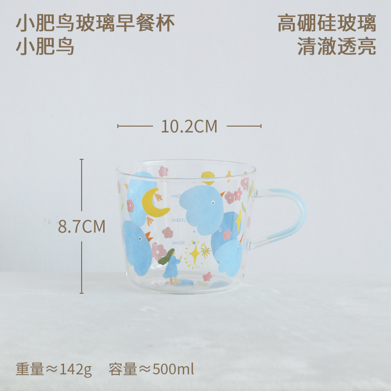 • [작은 뚱뚱한 새] 유리 아침 식사 컵