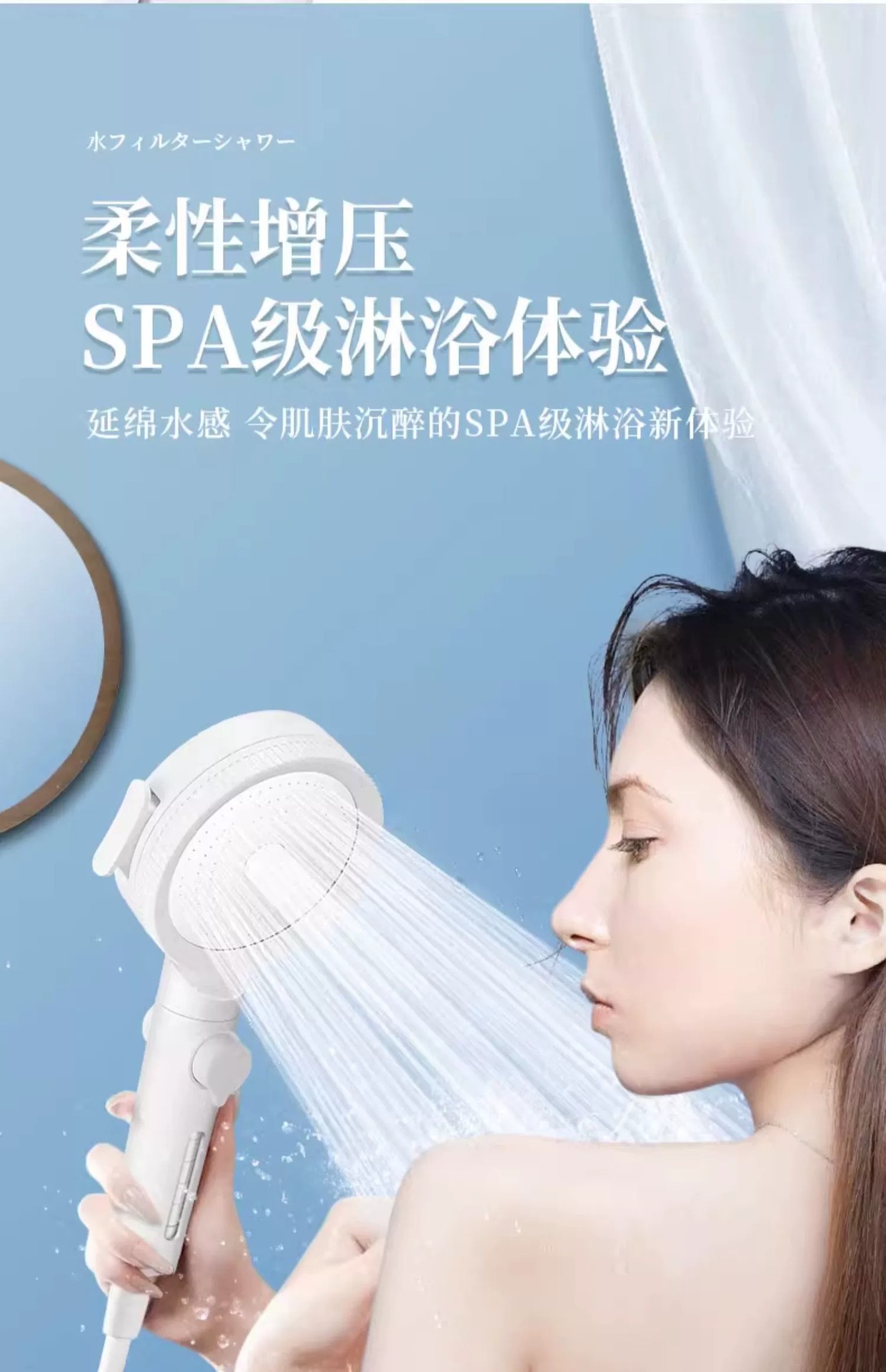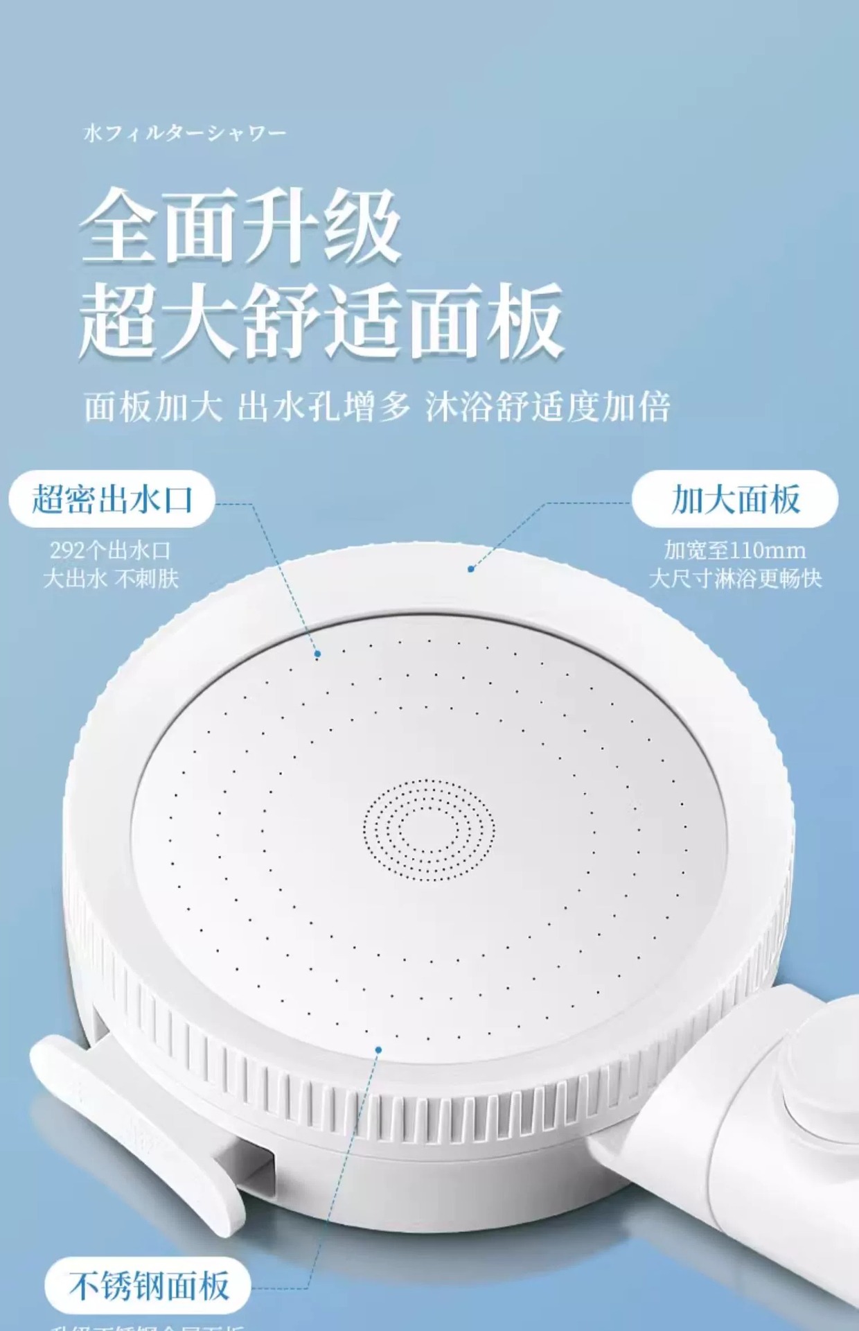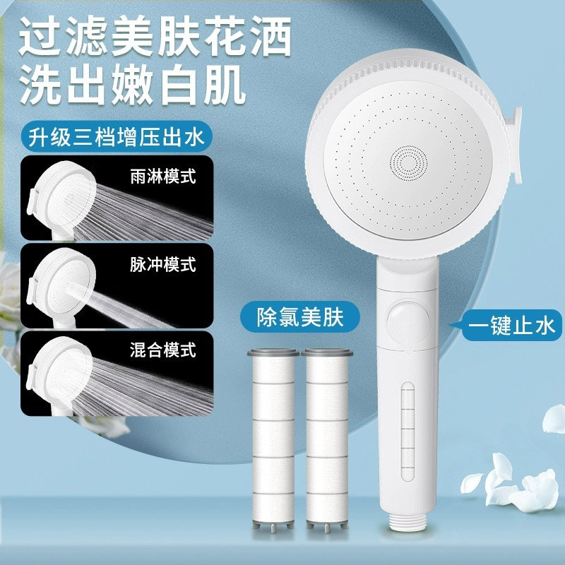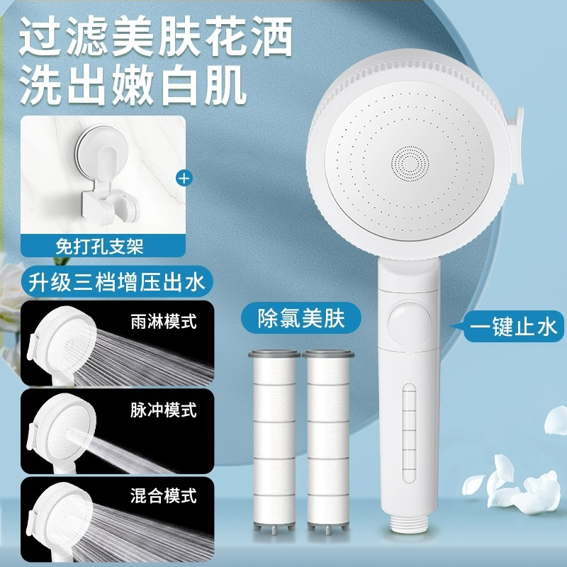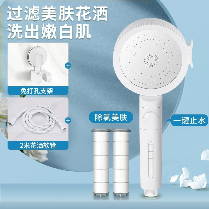흰색 휴대용 가압 정수 필터 샤워 대형 옥 플레이트 노즐 필터 비 가압 샤워 원 버튼 워터 스톱스토어 가기