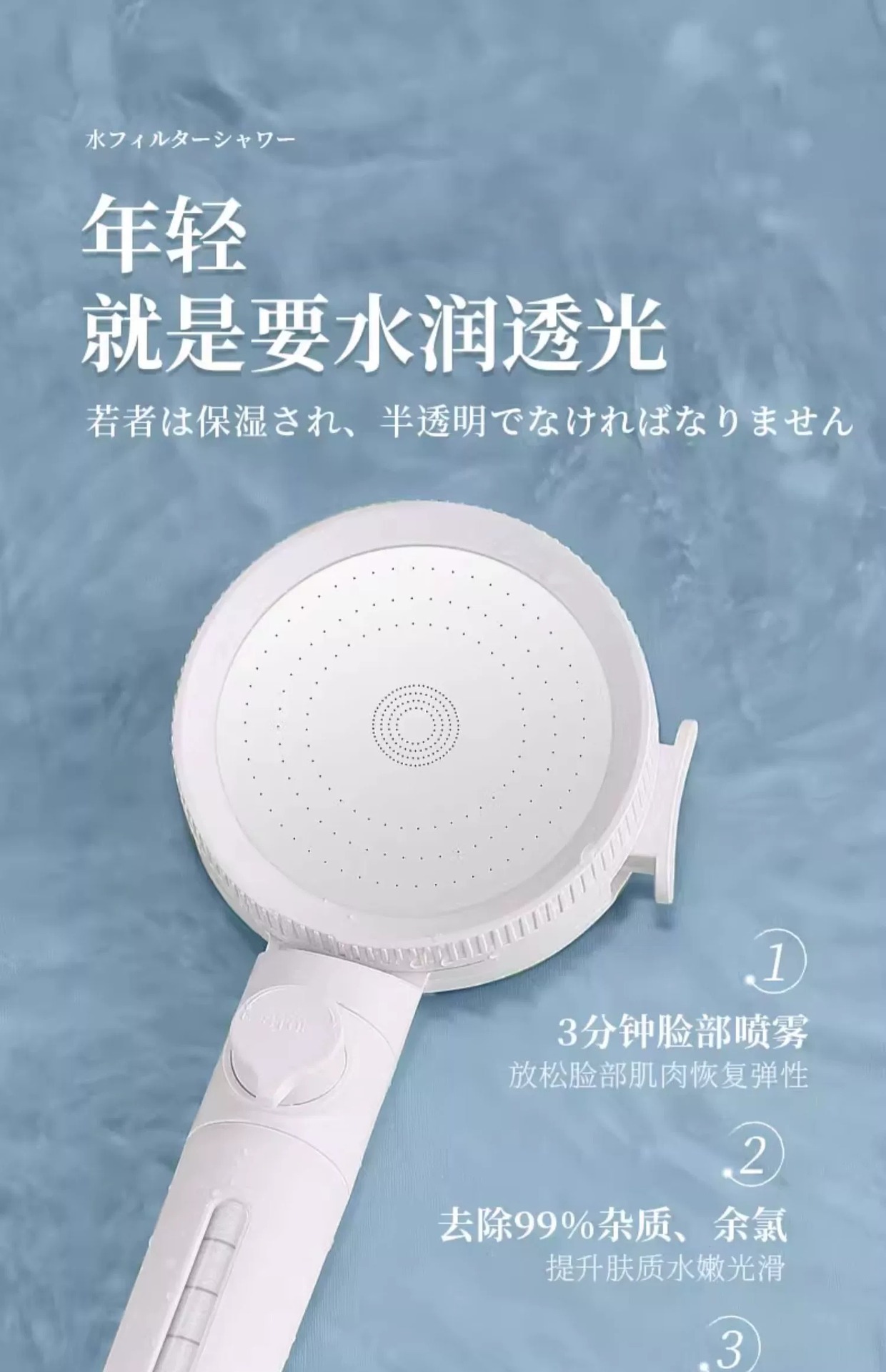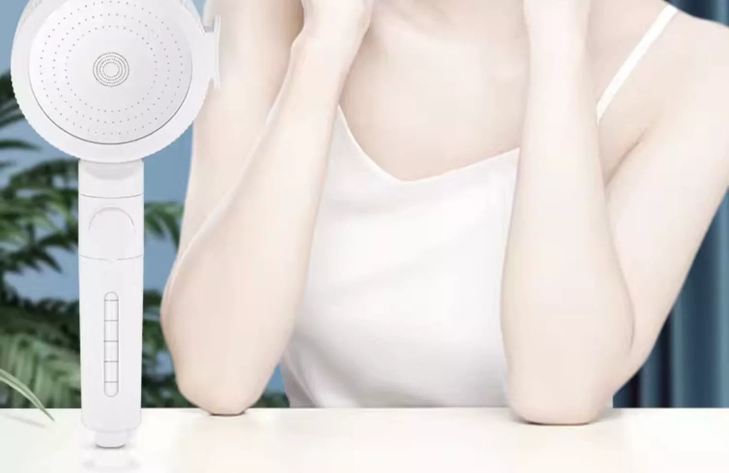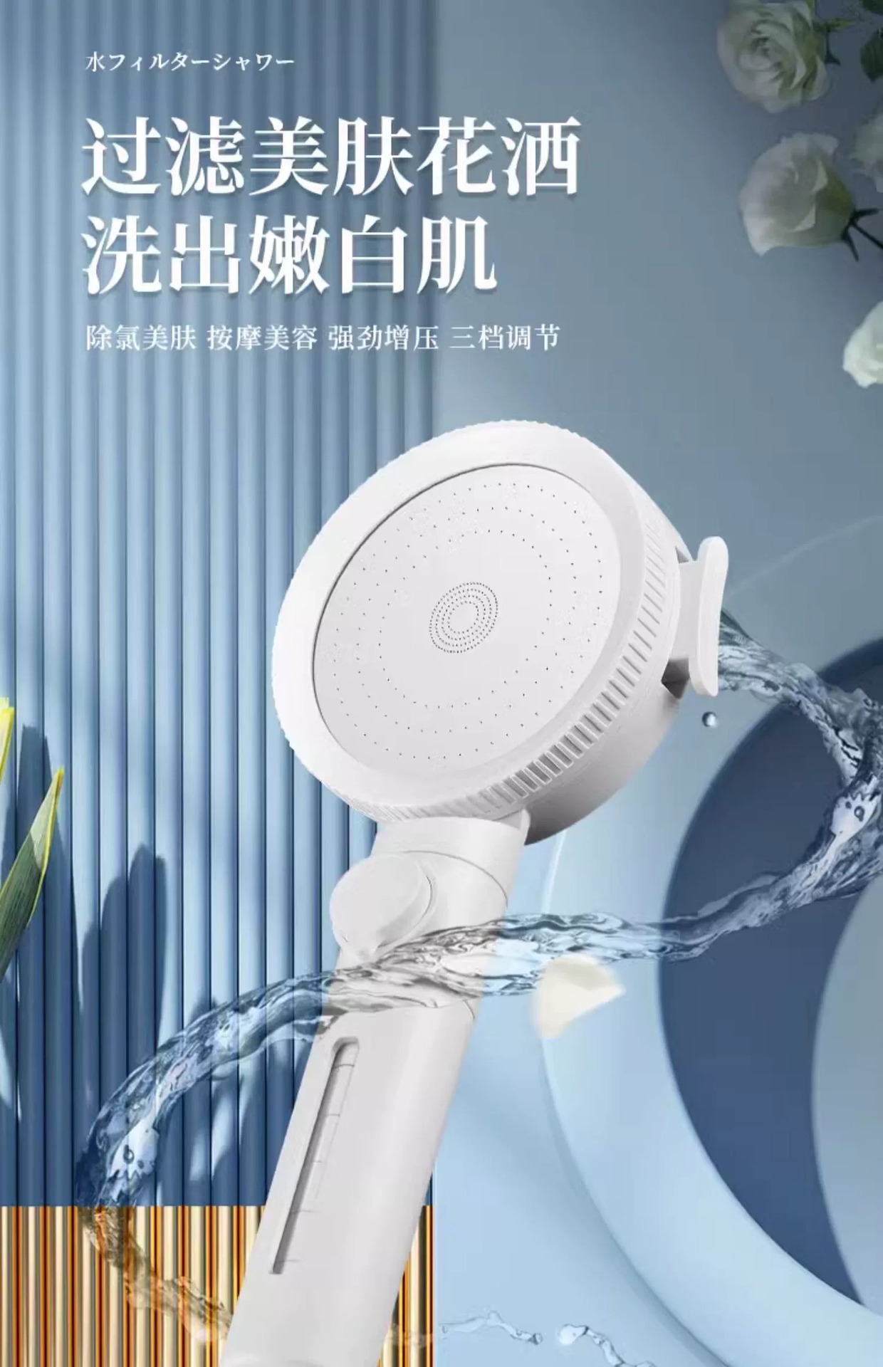 흰색 휴대용 가압 정수 필터 샤워 대형 옥 플레이트 노즐 필터 비 가압 샤워 원 버튼 워터 스톱스토어 가기