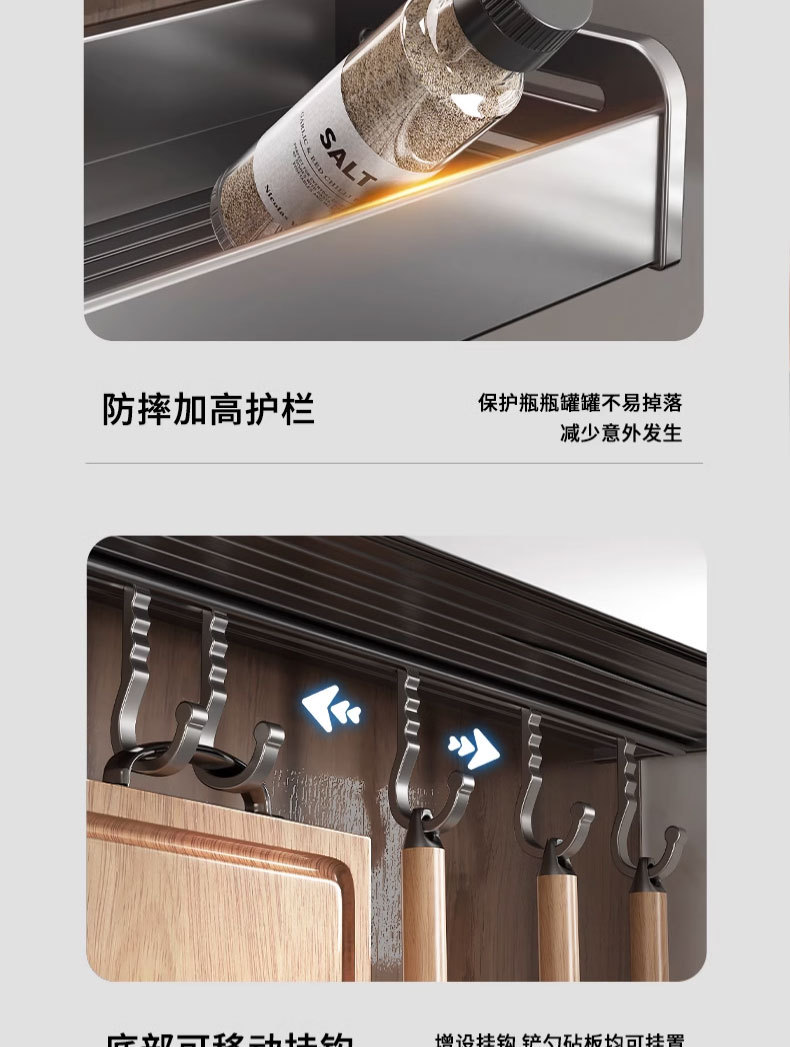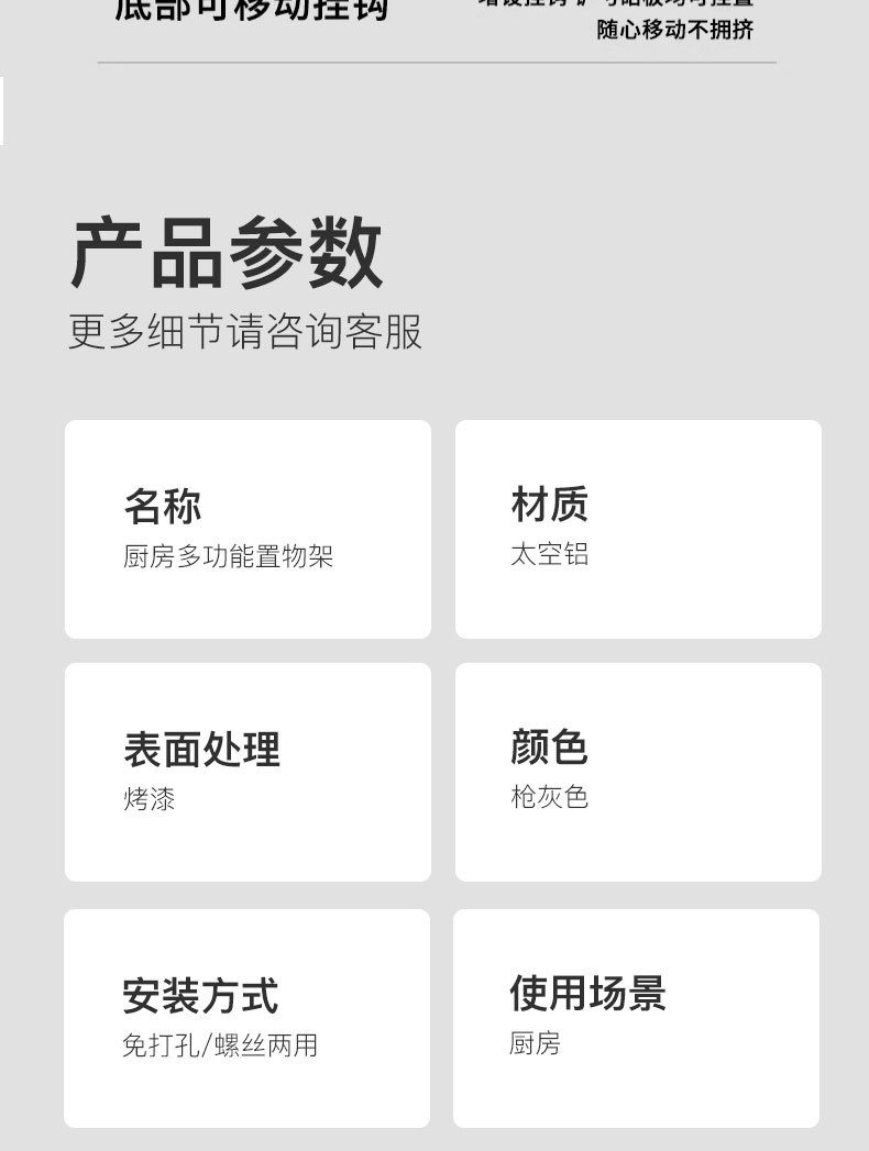 • 더블 레이어 주방 수납 랙 ☆ 건 그레이 ☆ 60cm5 후크