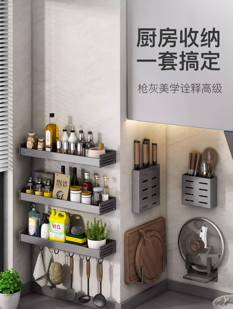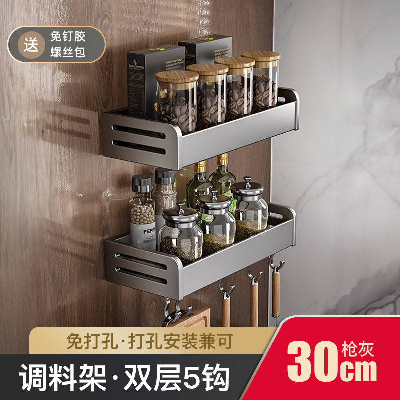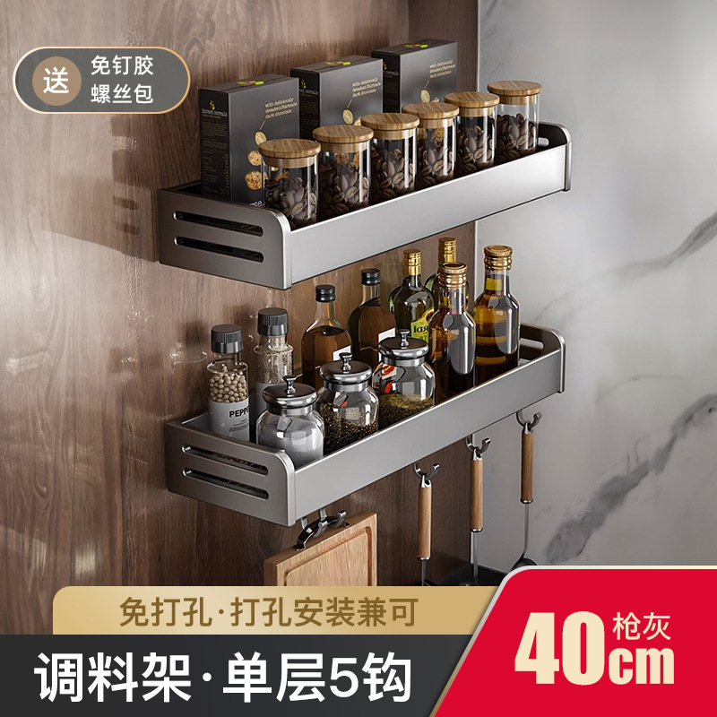 건 애쉬 주방 스토리지 랙 펀치 프리 조미료 랙 벽걸이 형 나이프 랙 가정 용품 Daquan 다기능 스토리지 랙