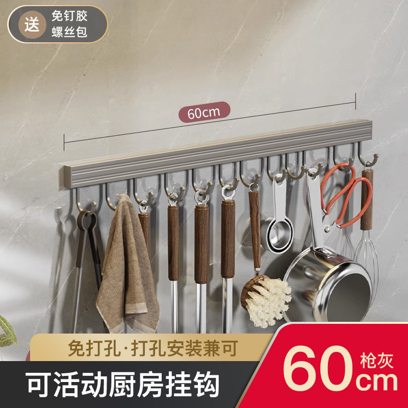 • 단층 주방 수납 랙 ☆ 건 그레이 ☆ 60cm5 후크