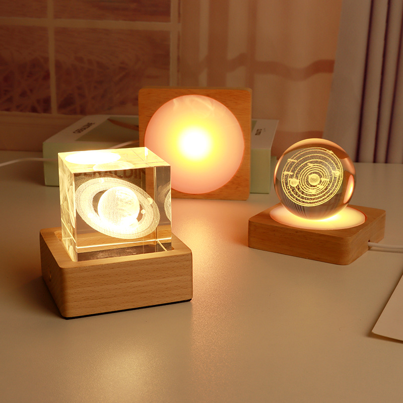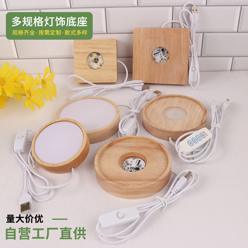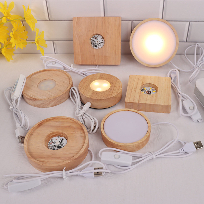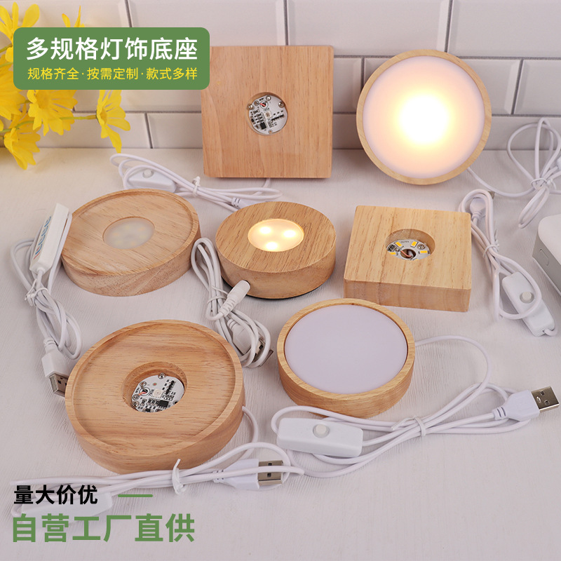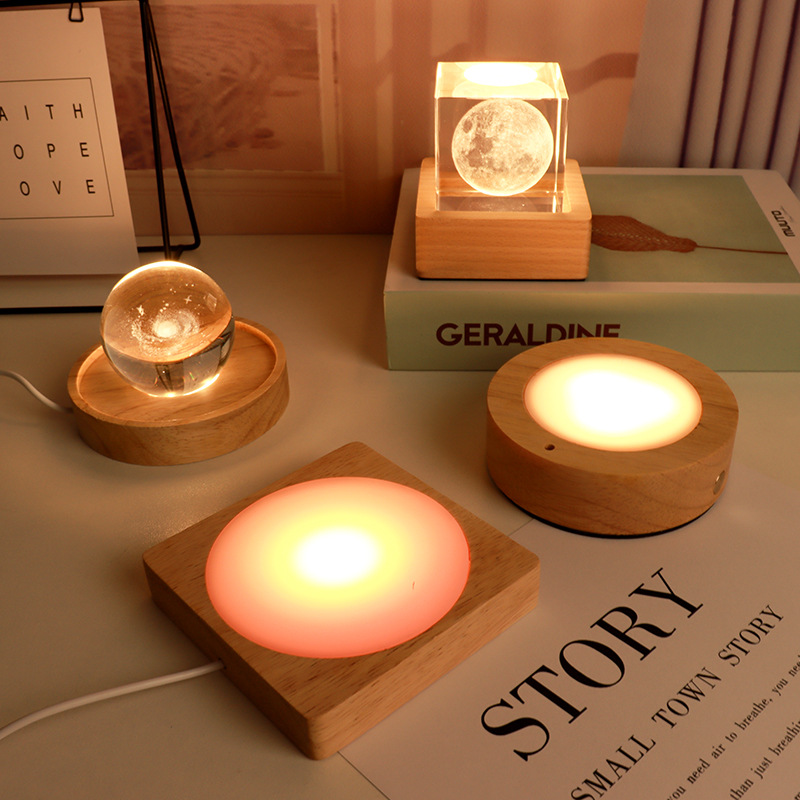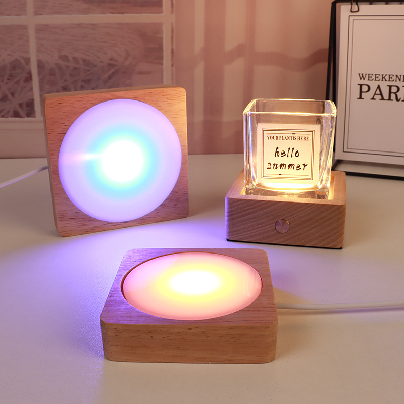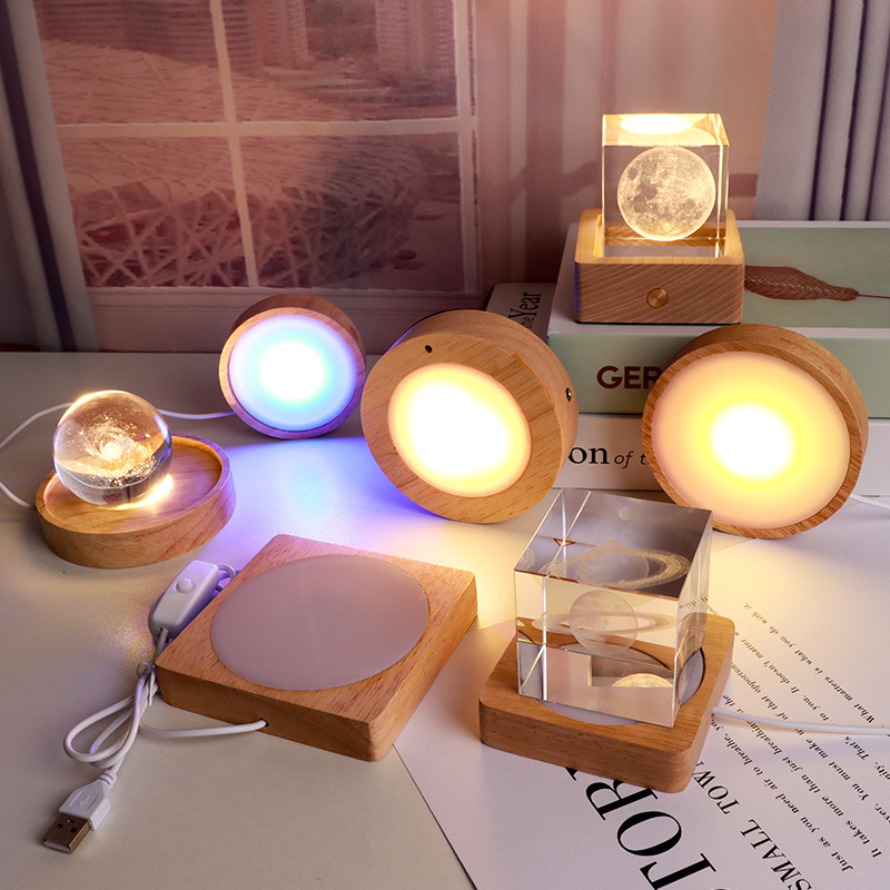 라운드 크리스탈 볼 디퓨저 야간 조명베이스 솔리드 우드 스퀘어 Led 라이트베이스 아로마 테라피 루미너스베이스
