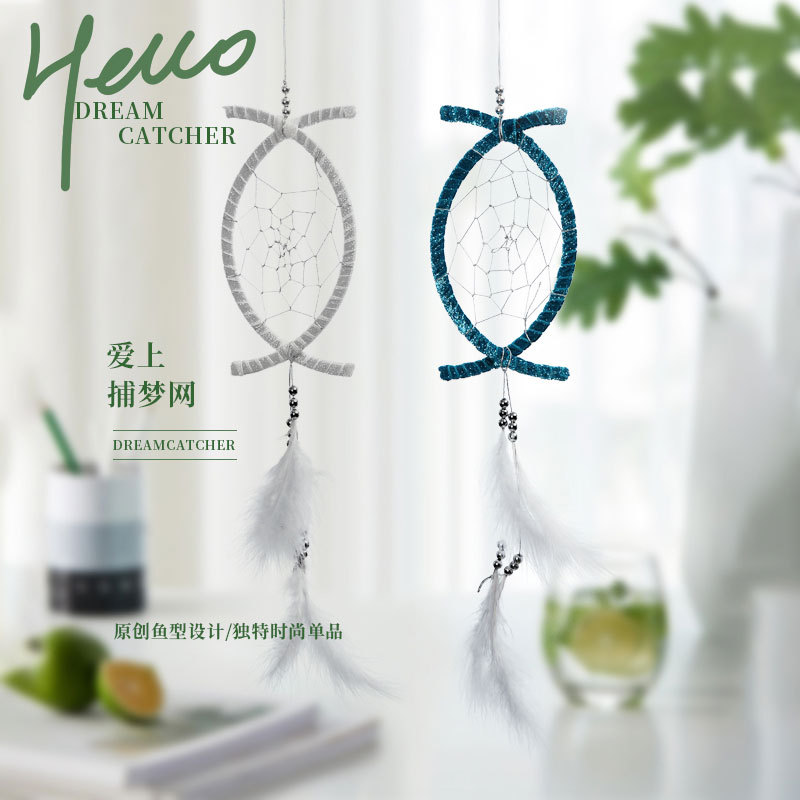 원래 새로운 물고기 모양의 꿈 포수 깃털 홈 벽 장식 창조적 인 생일 크로스 보더 세대의 머리카락스토어 가기