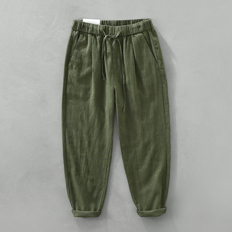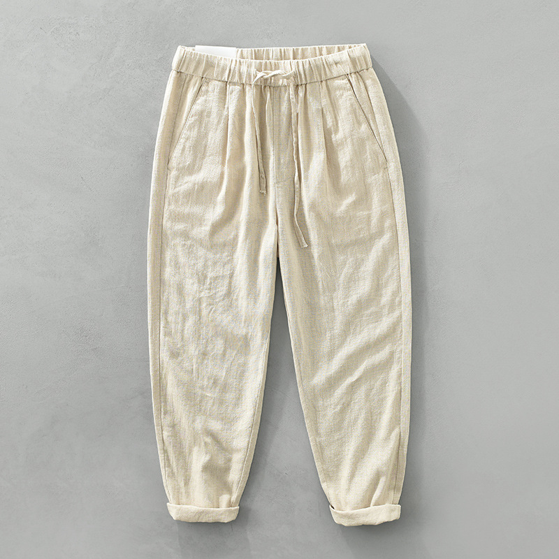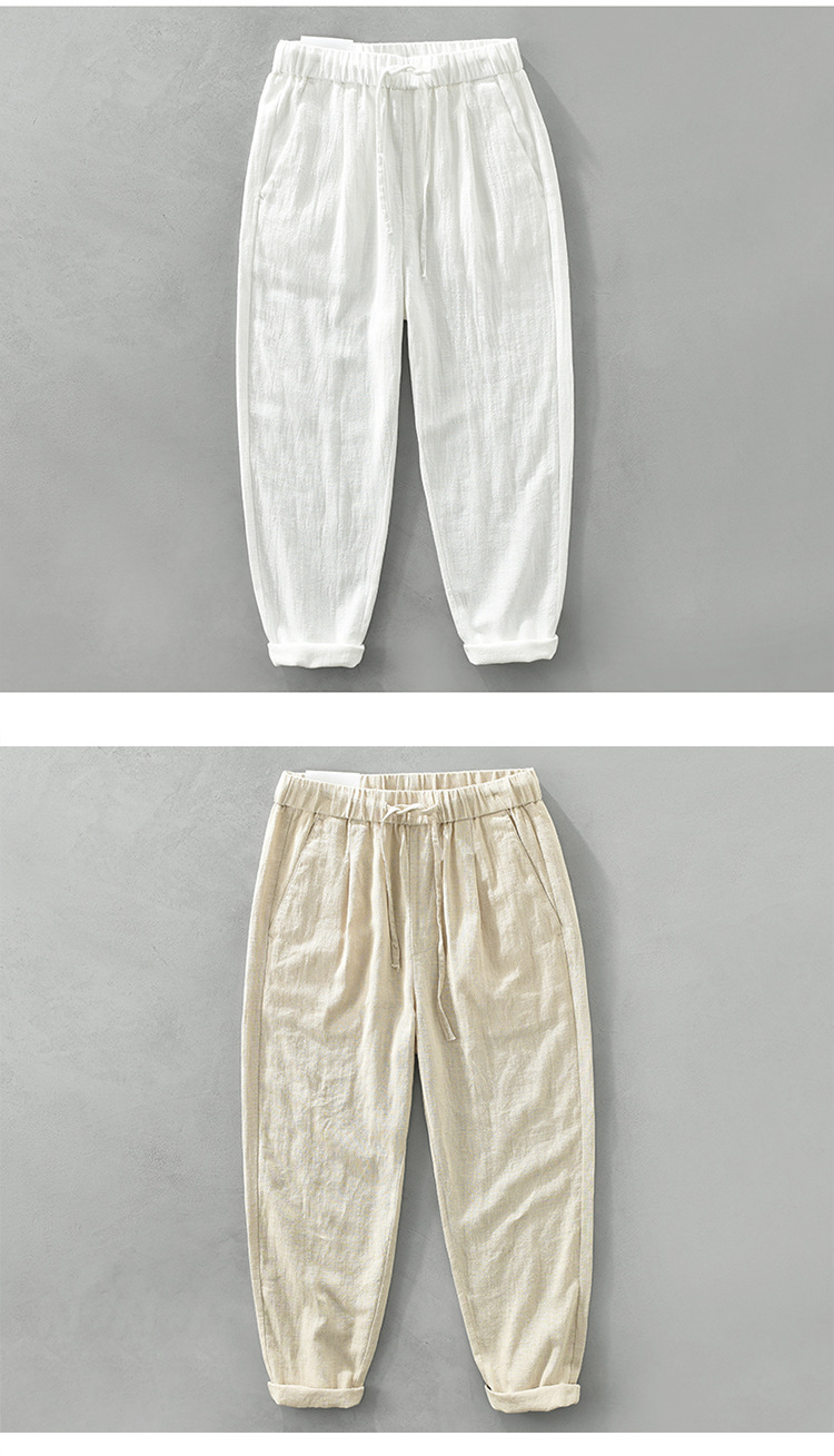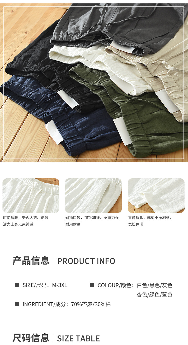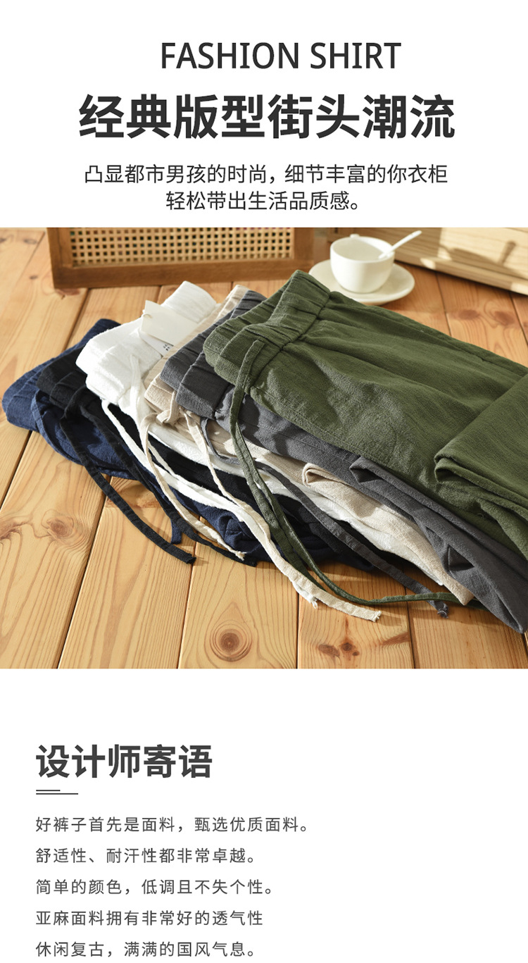 여름 새로운 라미 바지 남성 캐주얼 느슨한 복고풍 스트레이트 바지 트렌드 남성 린넨 바지 머리카락 세대스토어 가기