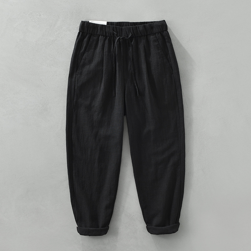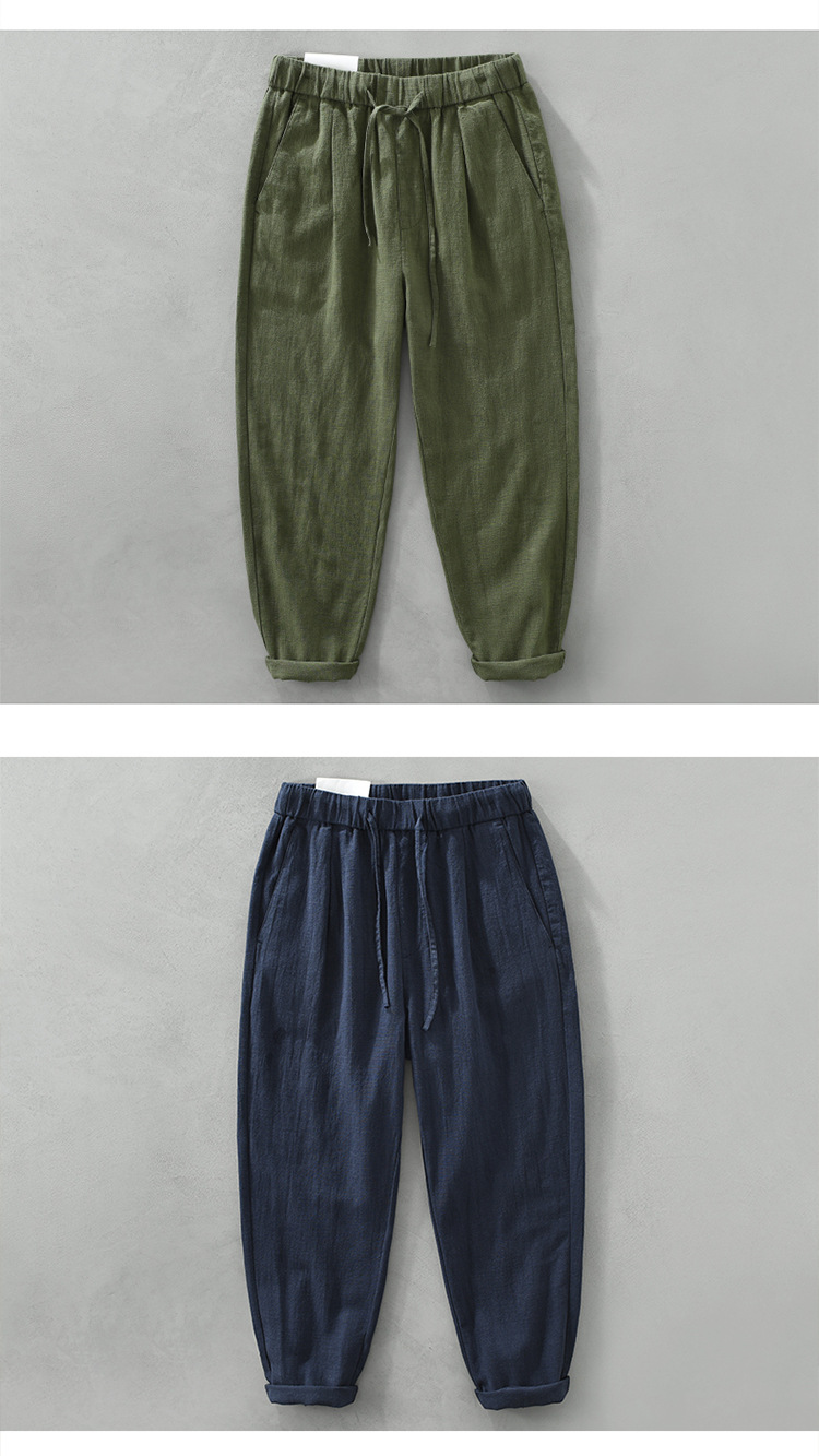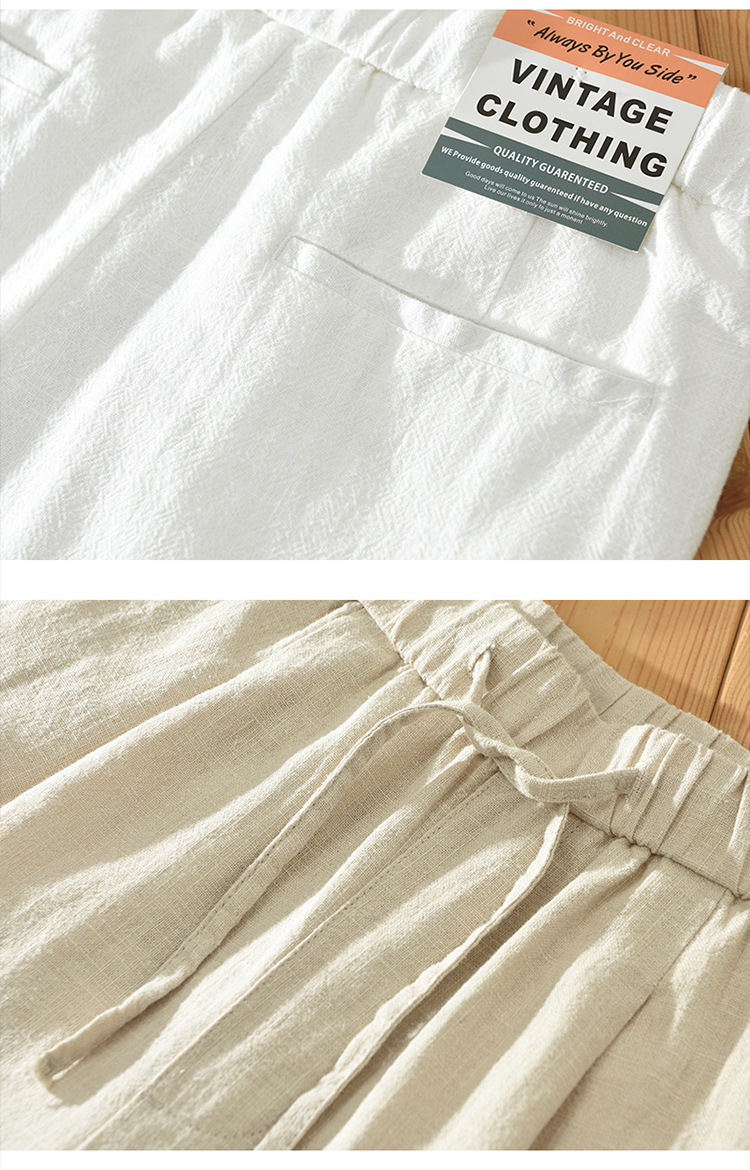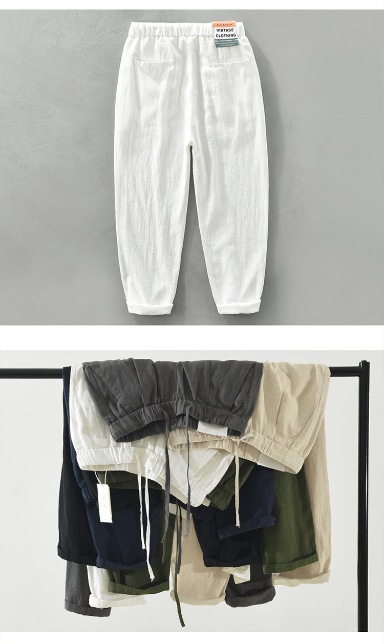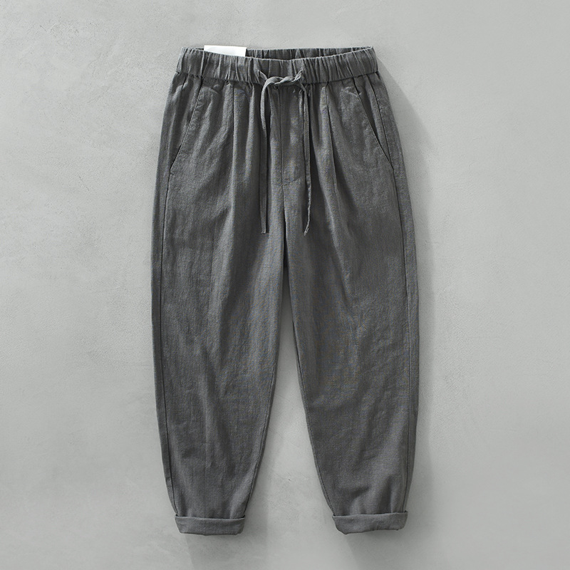 여름 새로운 라미 바지 남성 캐주얼 느슨한 복고풍 스트레이트 바지 트렌드 남성 린넨 바지 머리카락 세대스토어 가기
