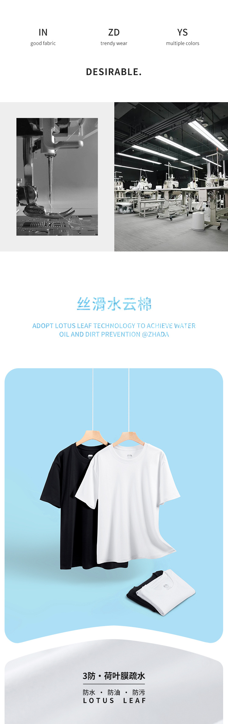 Shuiyun 면 세 가지 방지 반팔 티셔츠 남자의 여름 얇은 반 소매 물 튀김 방지 얼룩 흰색 작은 티셔츠 ZH-3FT001