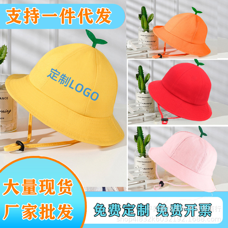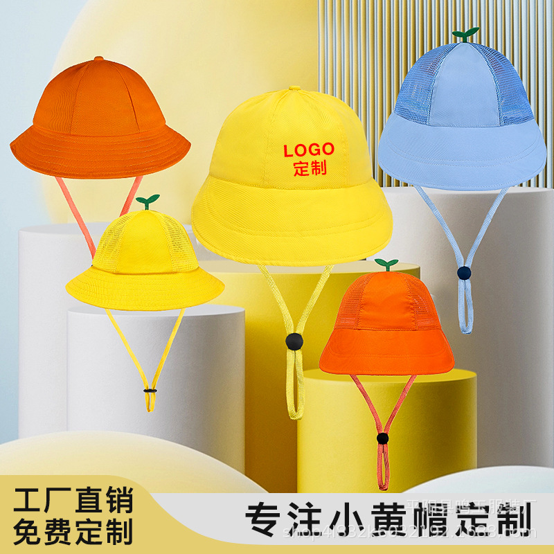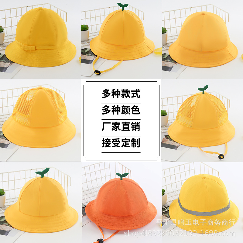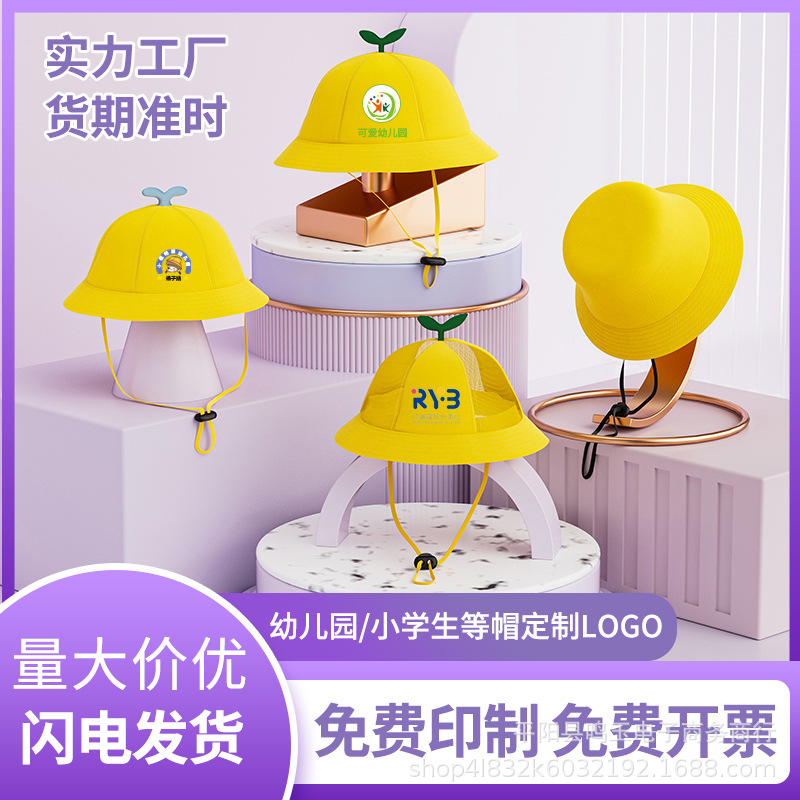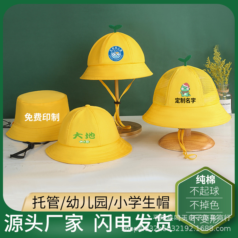 유치원 소 노란 모자 도매 인쇄 로고 면 초등학교 아동 어부 모자 인쇄 귀여운 양산 썬 스크린 모자스토어 가기