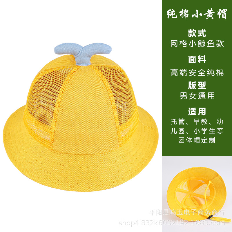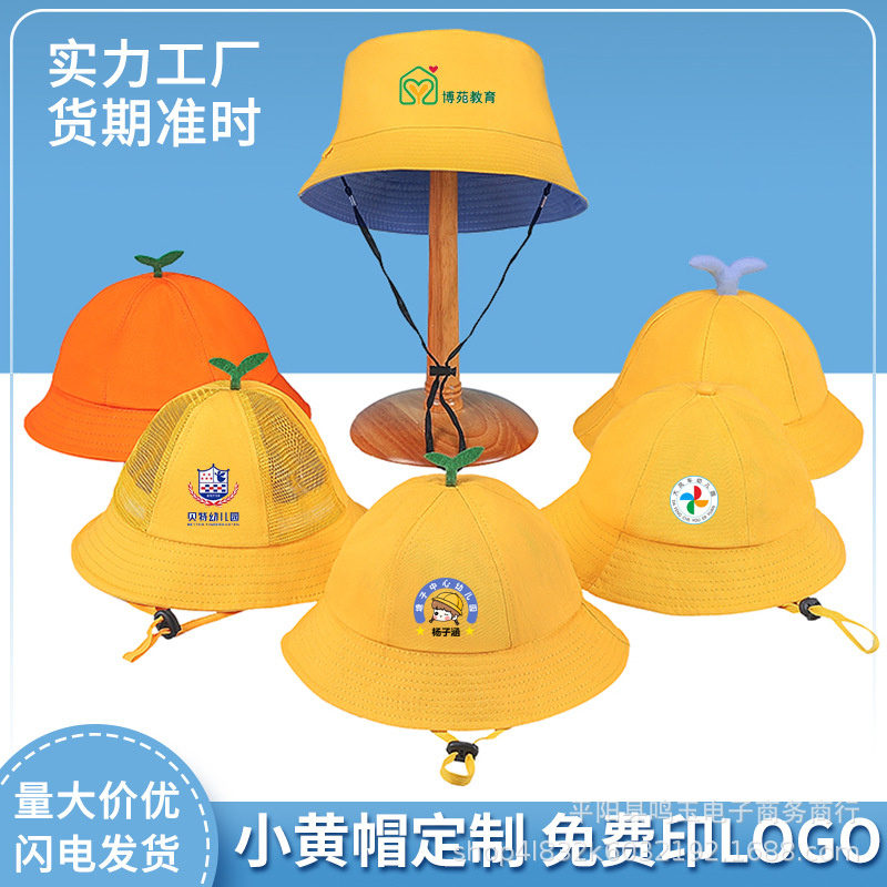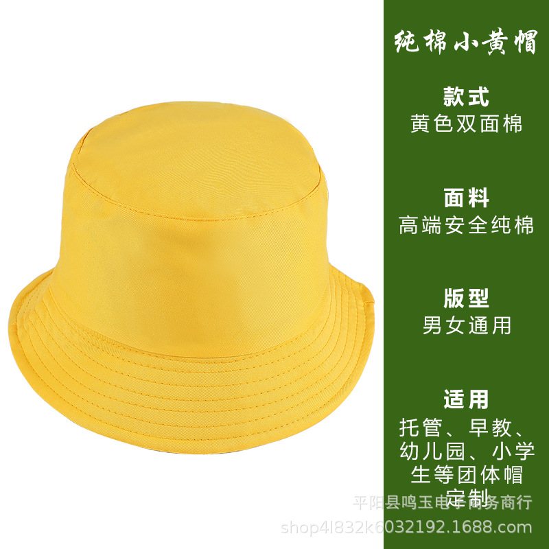유치원 소 노란 모자 도매 인쇄 로고 면 초등학교 아동 어부 모자 인쇄 귀여운 양산 썬 스크린 모자