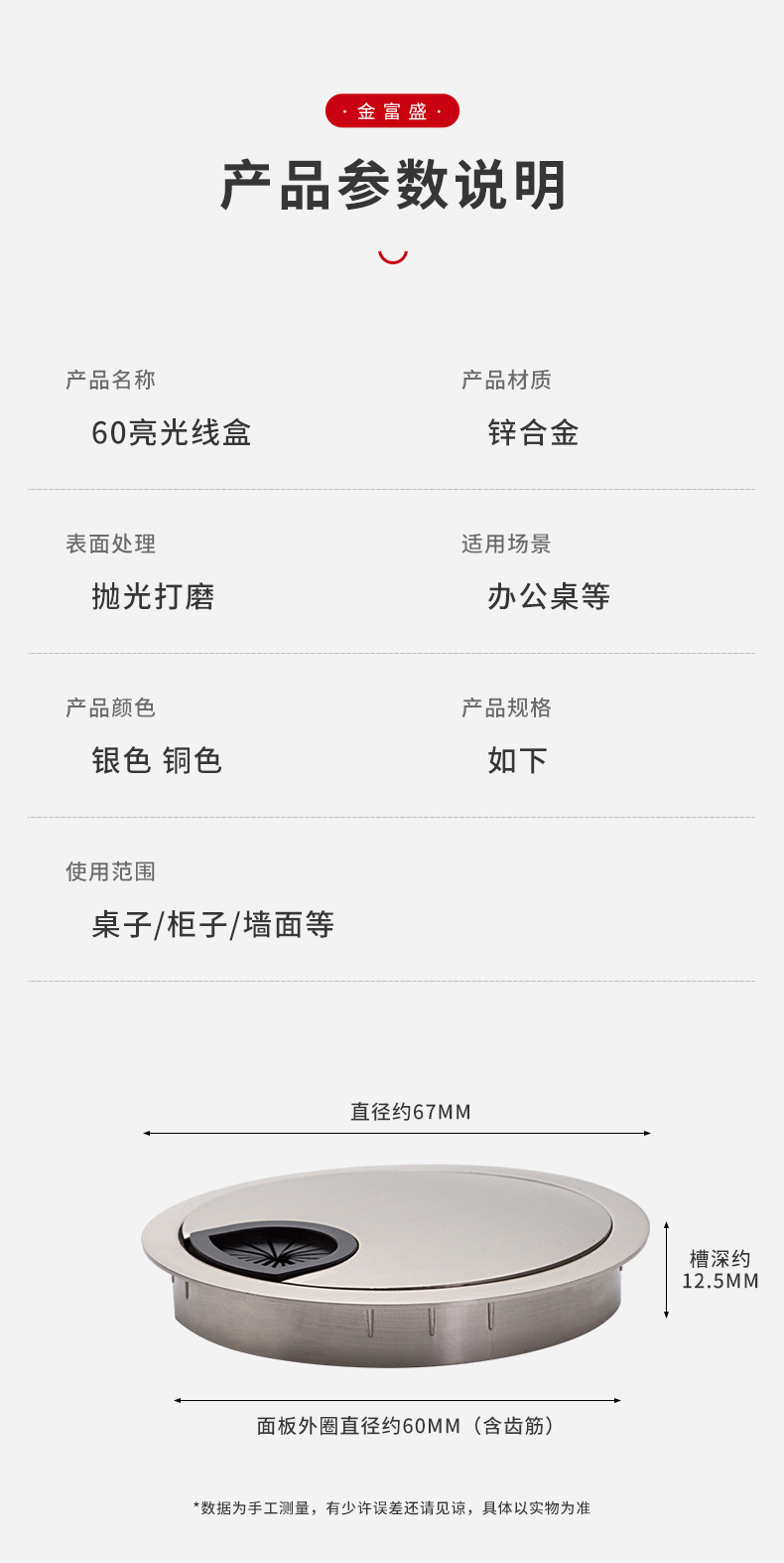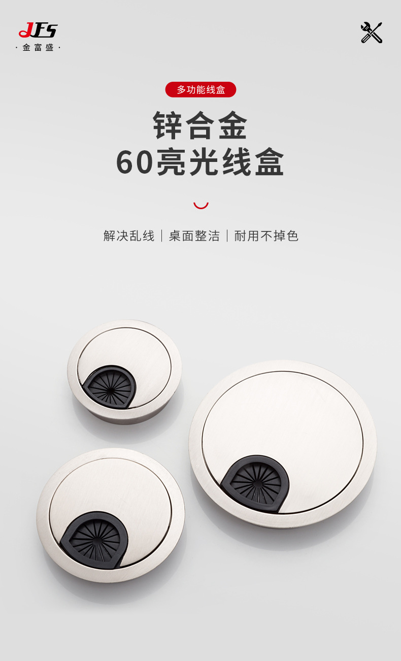 60 아연 합금 원형 배선 박스 사무실 책상 배선 박스 컴퓨터 책상 장식 커버 배선 박스 하드웨어 액세서리 가정용
