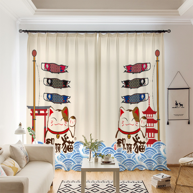 작은 동물 꽃 귀여운 만화 시리즈 고밀도 정전 커튼 국경 무역 디지털 인쇄 커튼스토어 가기