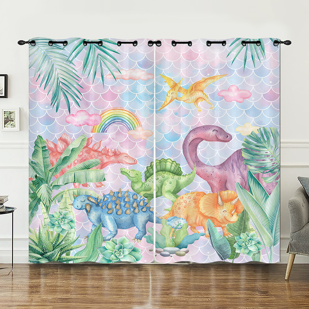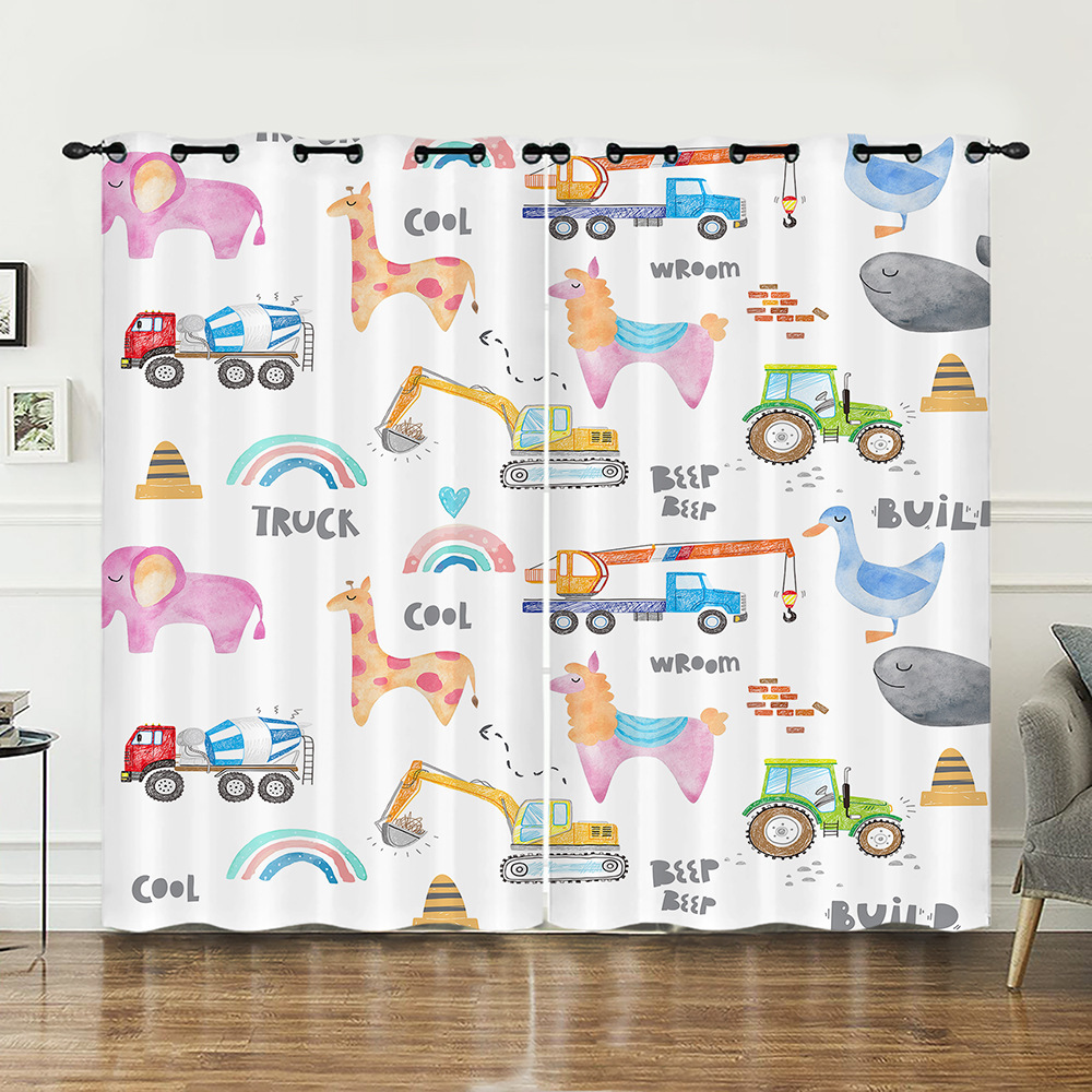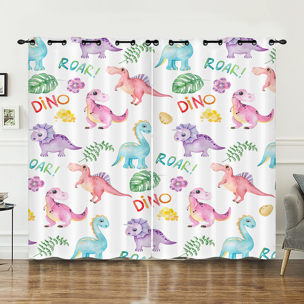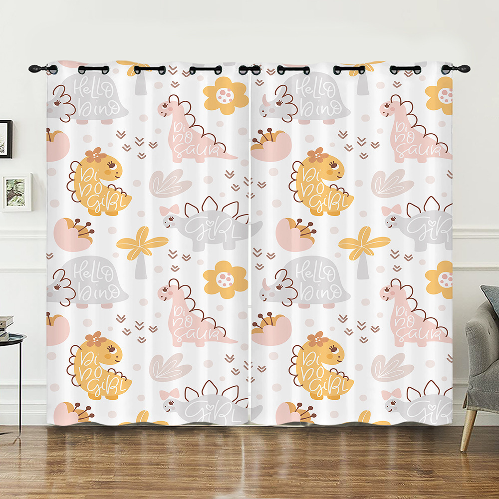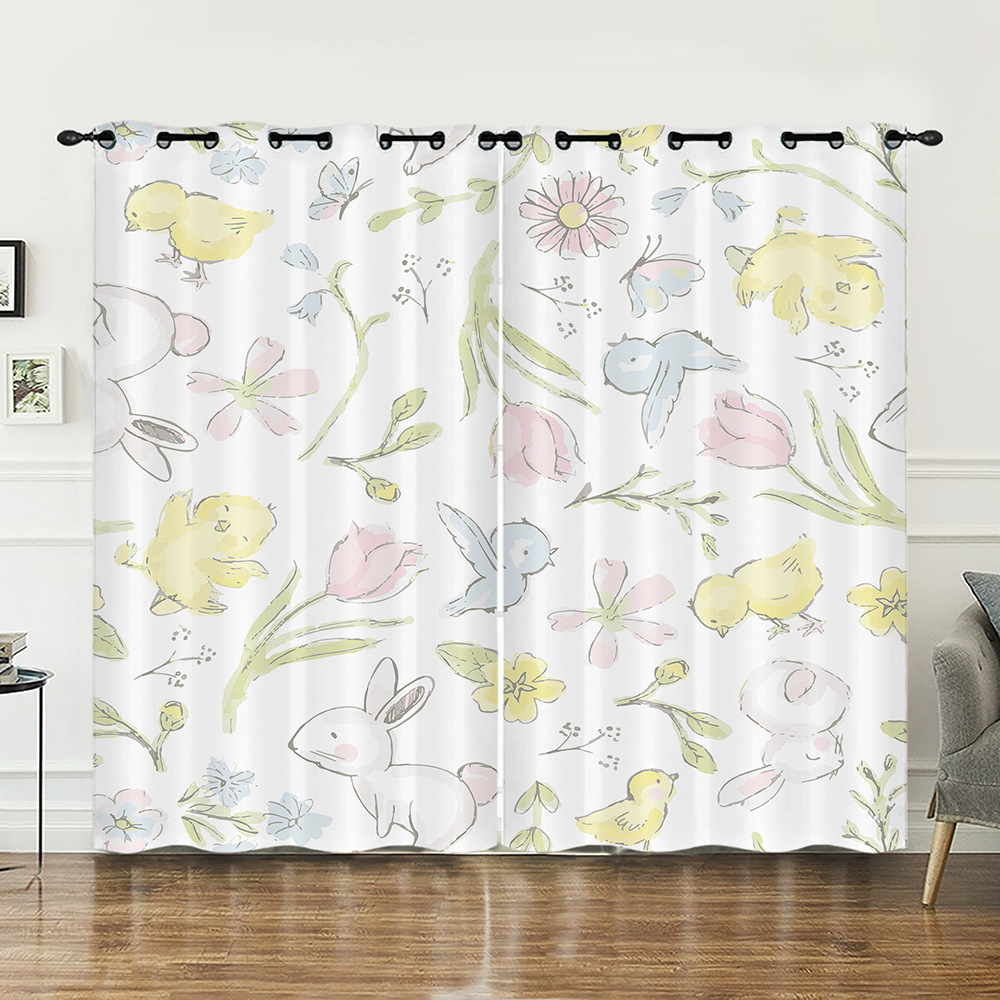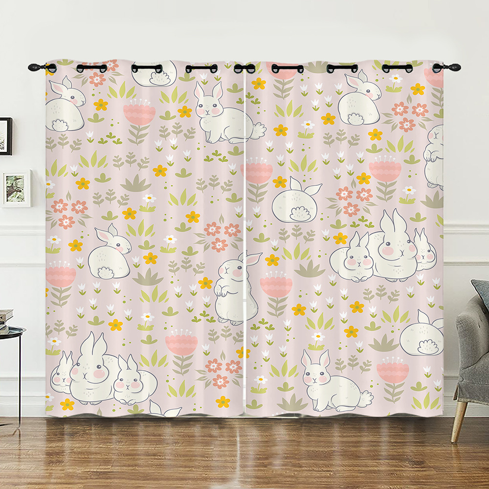 작은 동물 꽃 귀여운 만화 시리즈 고밀도 정전 커튼 국경 무역 디지털 인쇄 커튼