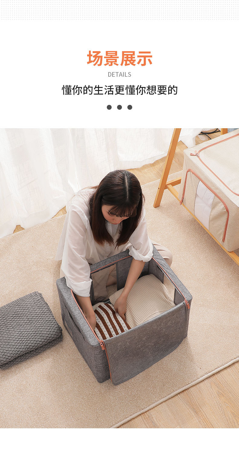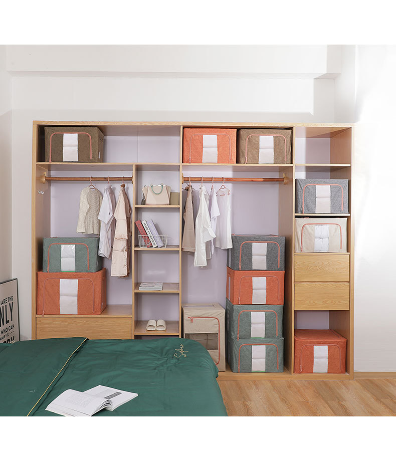 면과 린넨 소재의 두꺼운 뚜껑이 있는 대용량 수납함, 이불, 속옷, 옷장용, 접이식, 세탁 가능스토어 가기