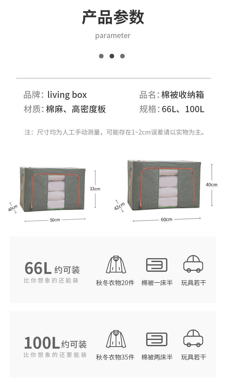 면과 린넨 소재의 두꺼운 뚜껑이 있는 대용량 수납함, 이불, 속옷, 옷장용, 접이식, 세탁 가능