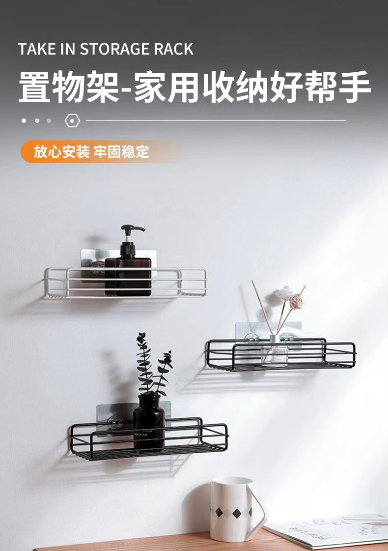 새로운 벽걸이형 수납 건조대, 무타공 일자형 수납 선반, 주방 및 욕실용 무자국 수납 선반