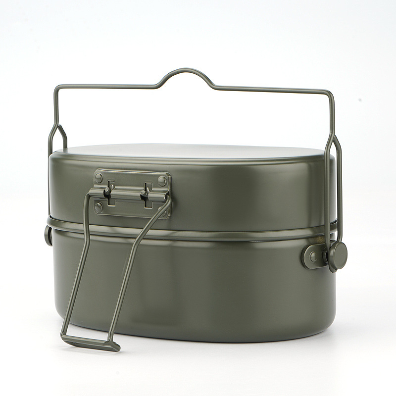 알루미늄 독일 개별 도시락 상자 마칭 도시락 상자 캠핑 도시락 더블 레이어 도시락 상자 핸들 캠핑 야외 조리기구