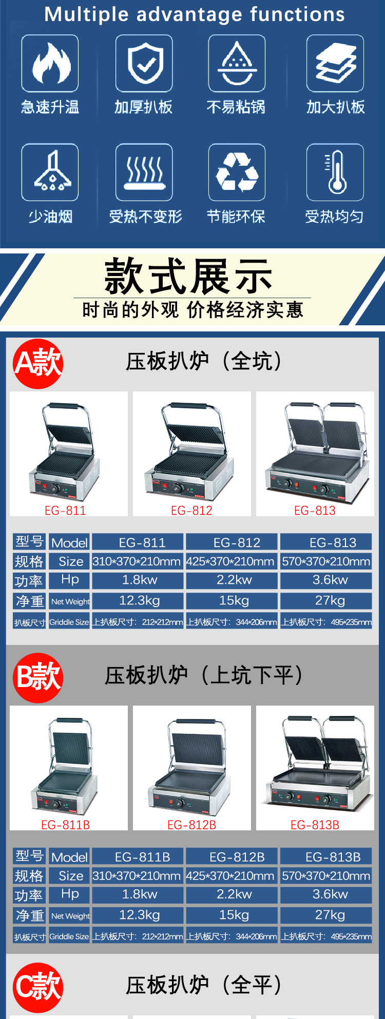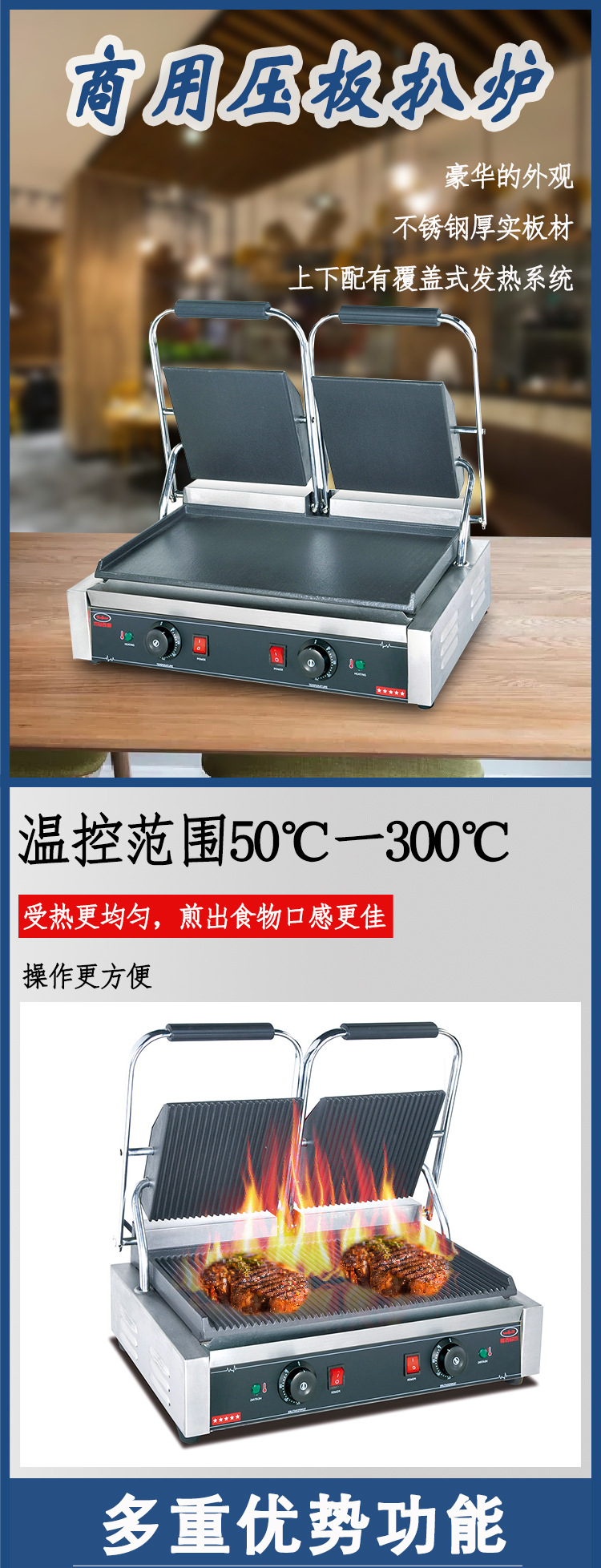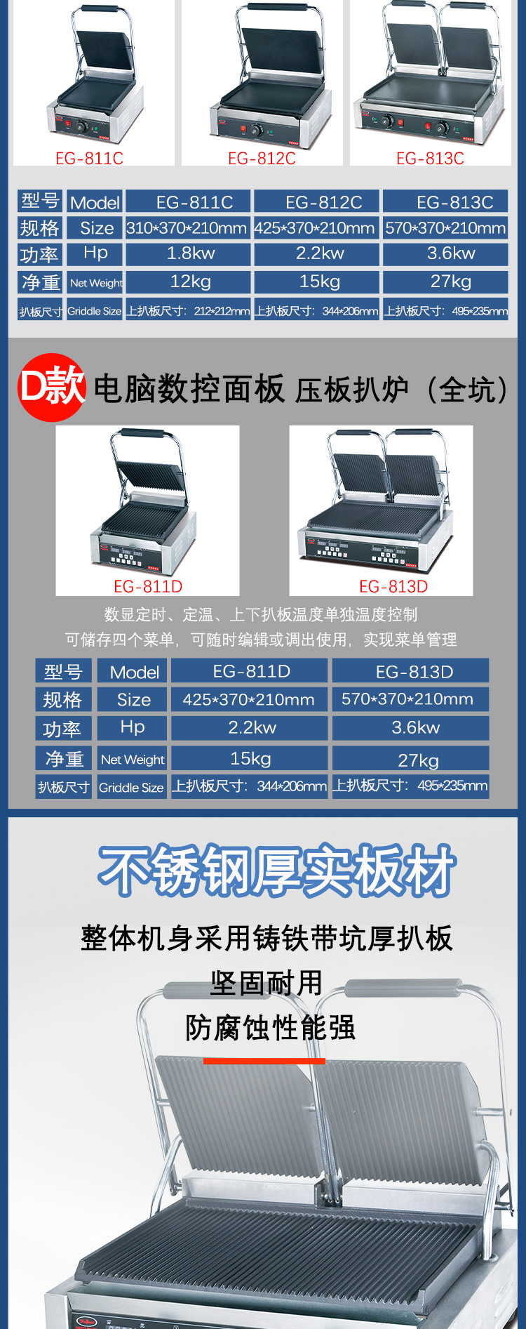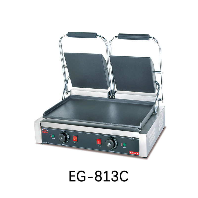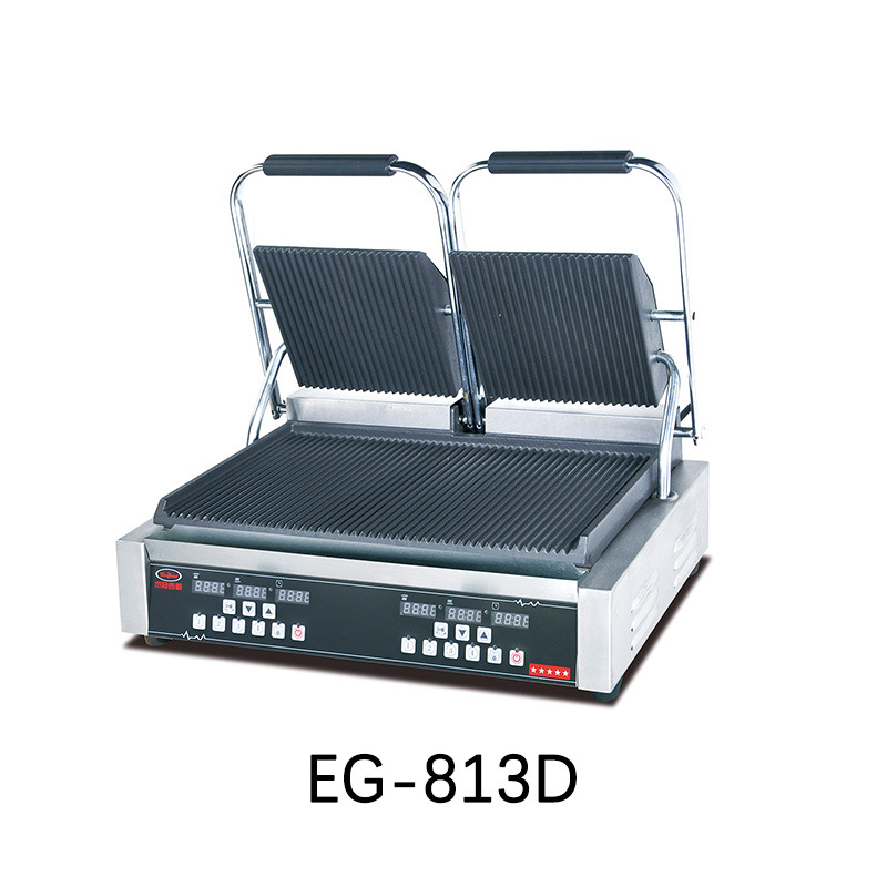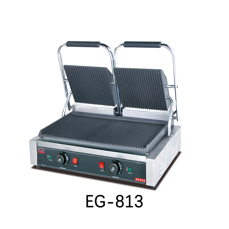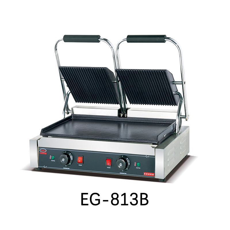 杰冠EG-813商用双头压板扒炉帕尼尼机全坑三文治烤肉烤面包牛排机