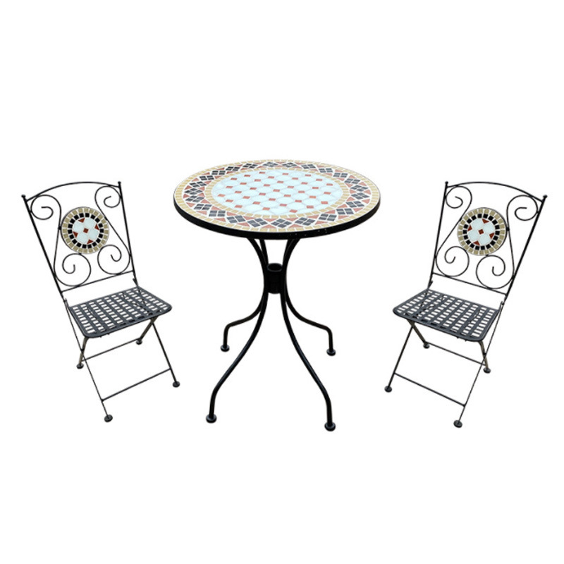 Chaoyitu 유럽식 새로운 엔트리 럭셔리 테이블과 의자 3 피스 세트 안뜰 철 레스토랑 홈 레트로 캐주얼 식탁과 의자스토어 가기